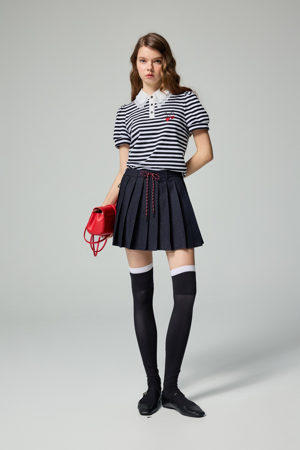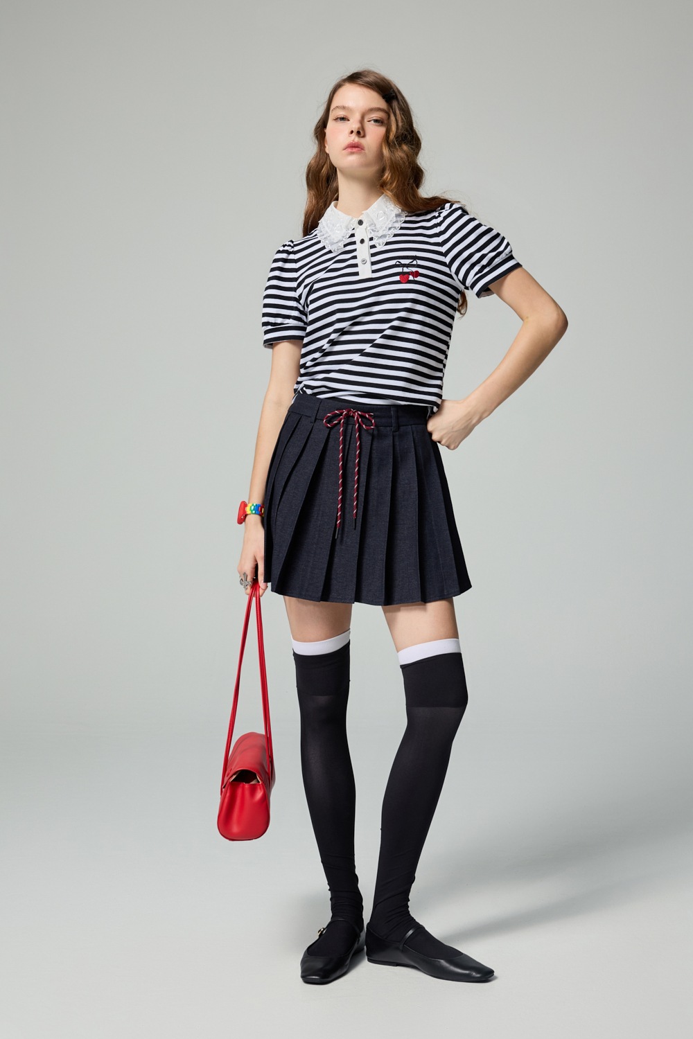 城市藍調抽繩百褶短裙 - 深邃藏藍, 36