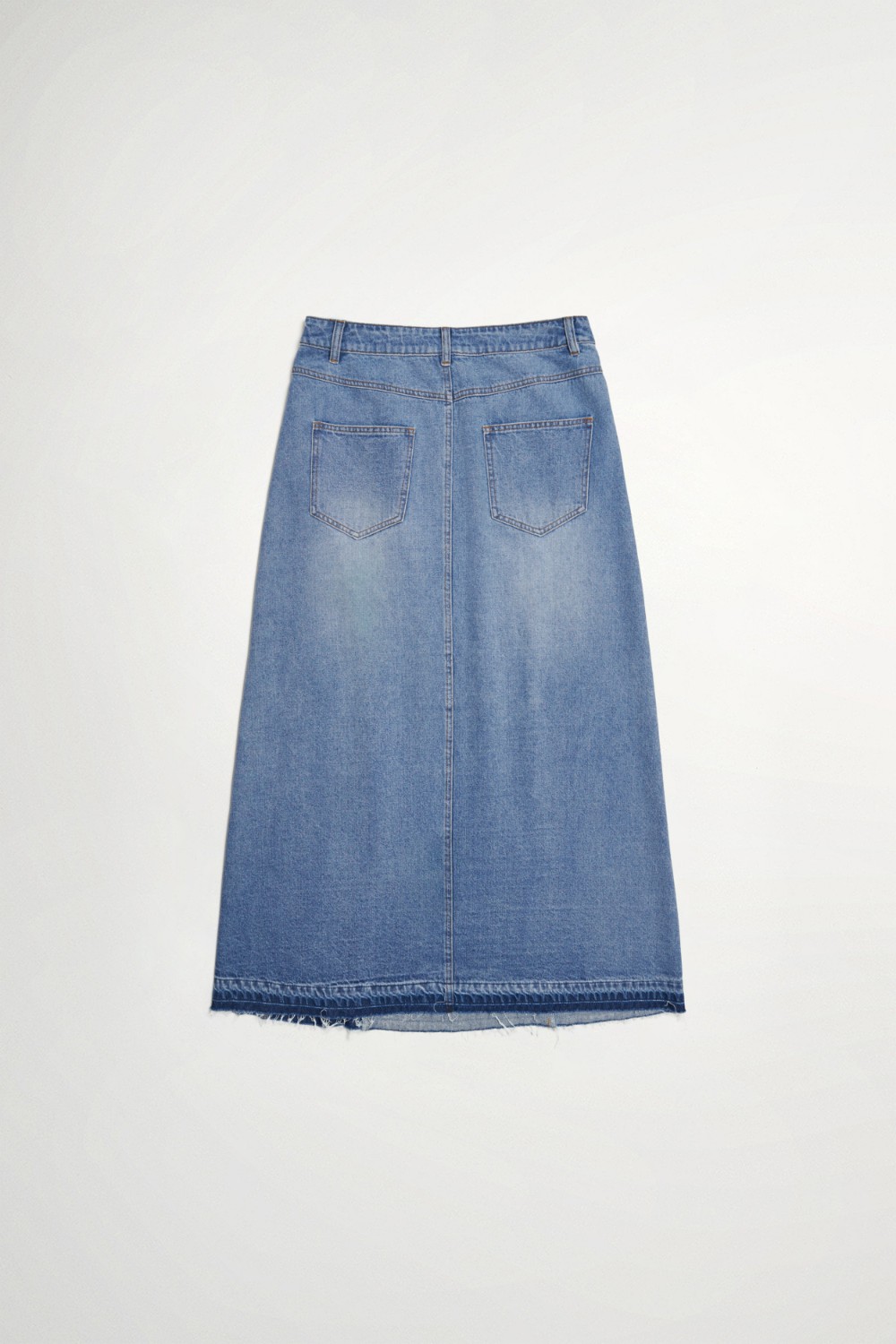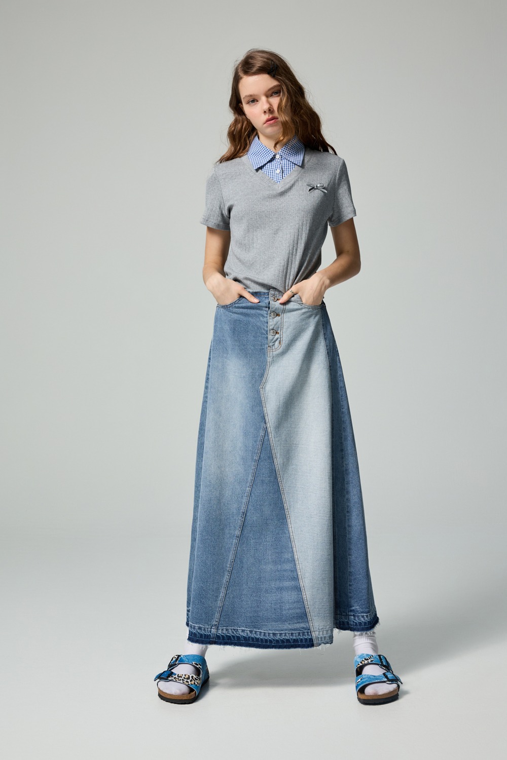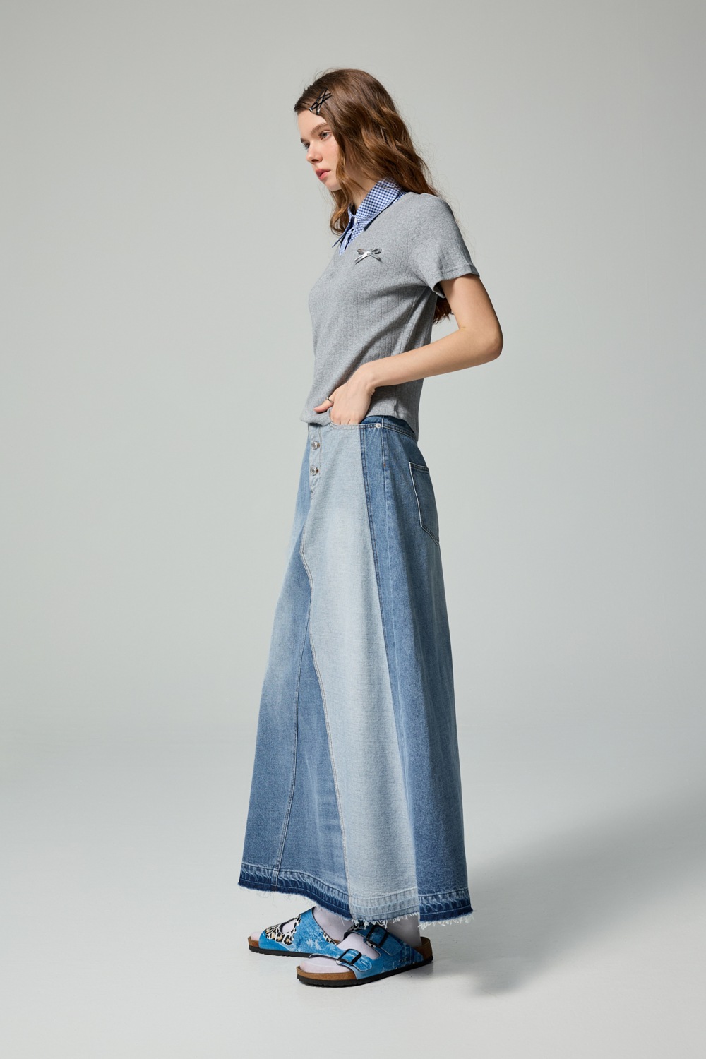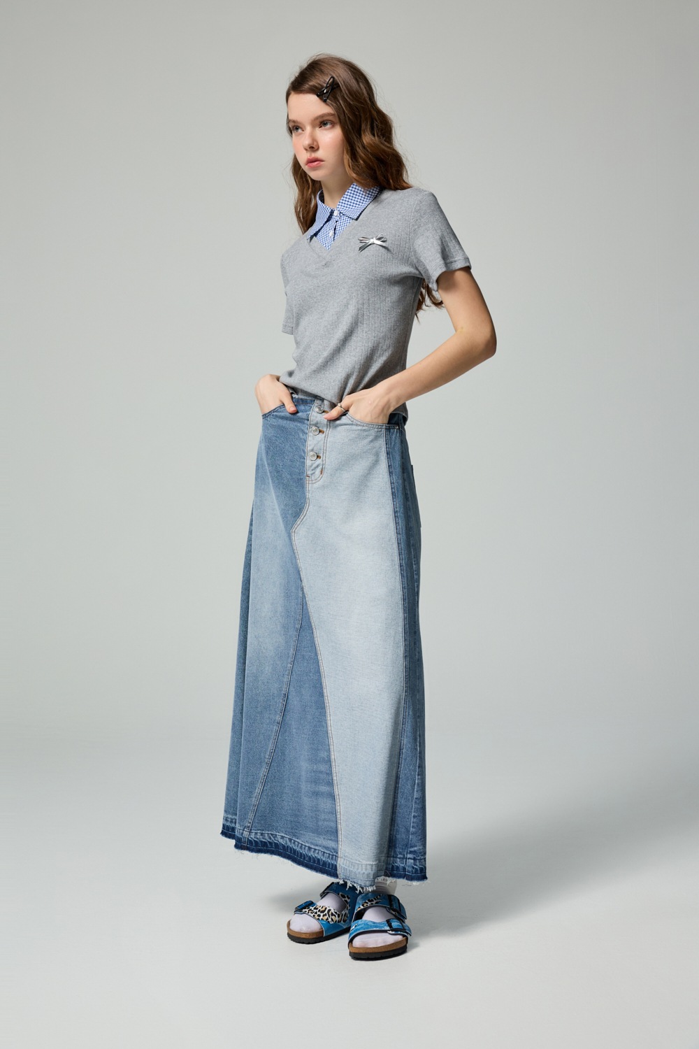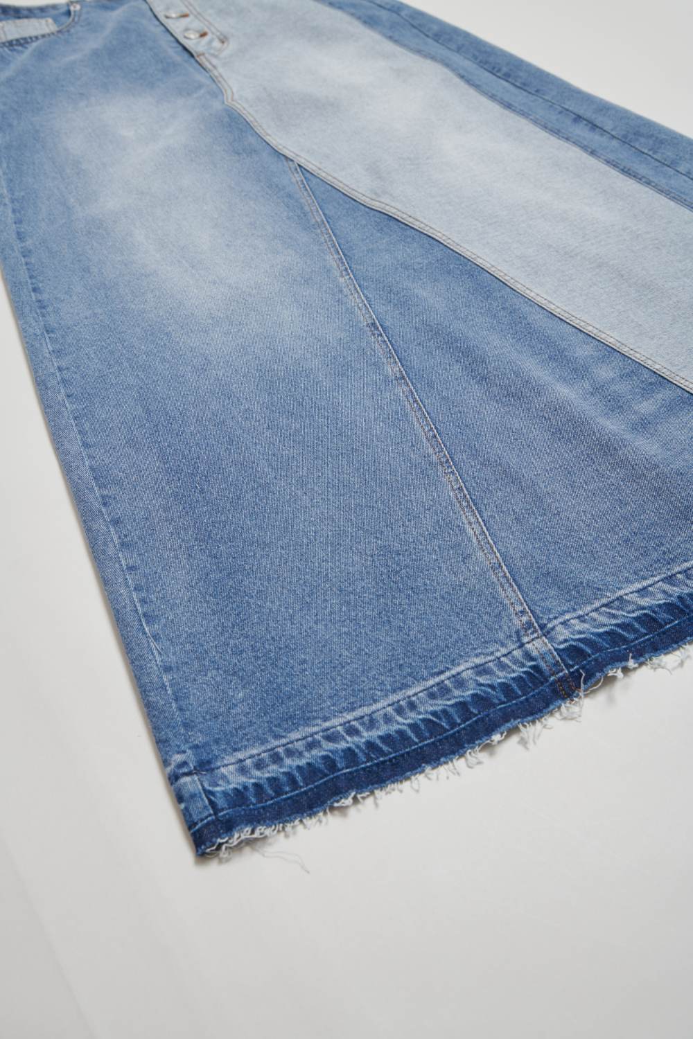 冰藍帶霧拼接水洗牛仔裙 - 寧靜黛藍, 36