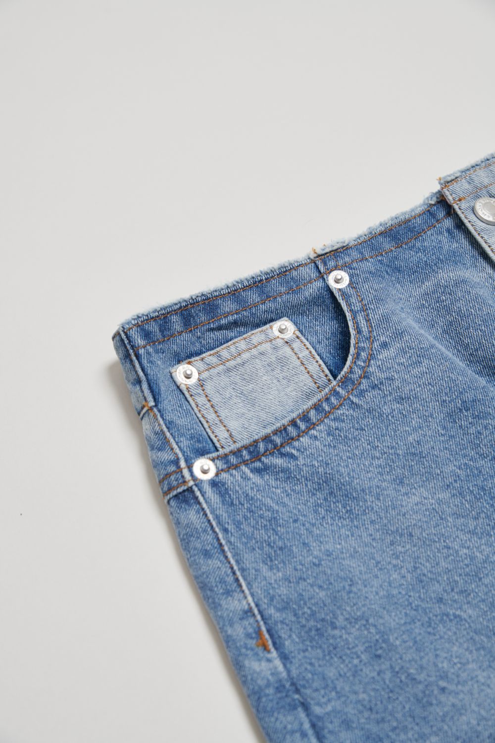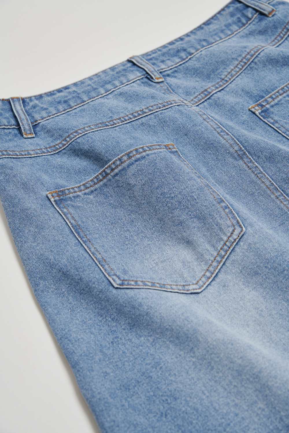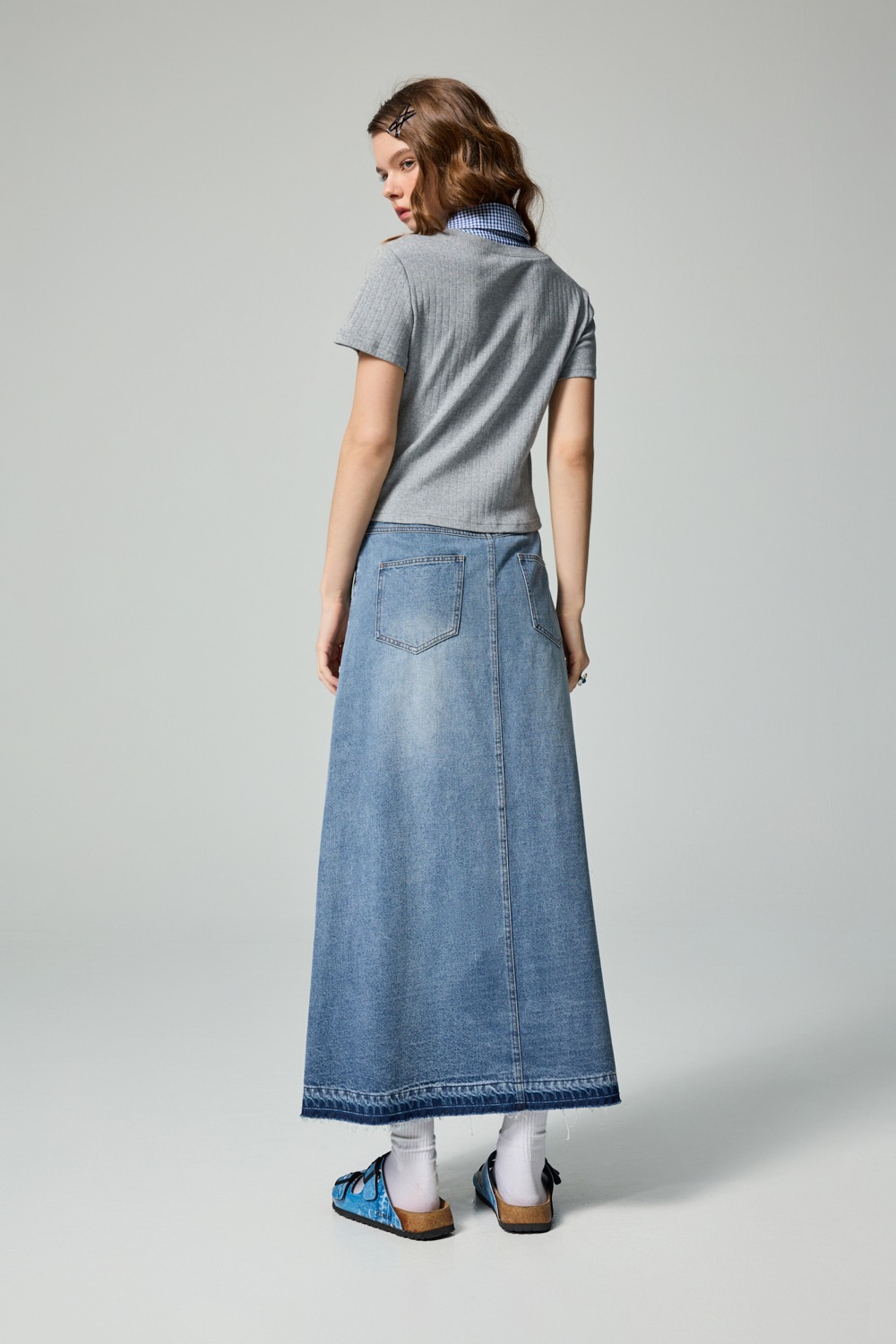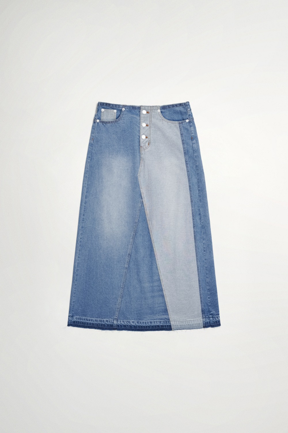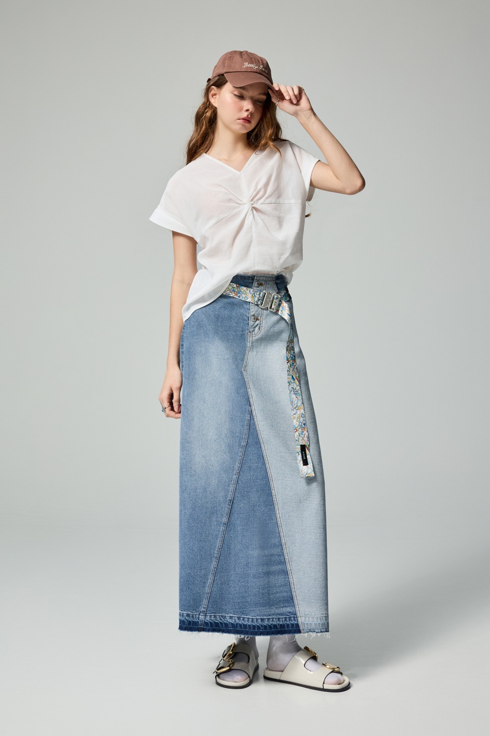 冰藍帶霧拼接水洗牛仔裙 - 寧靜黛藍, 36