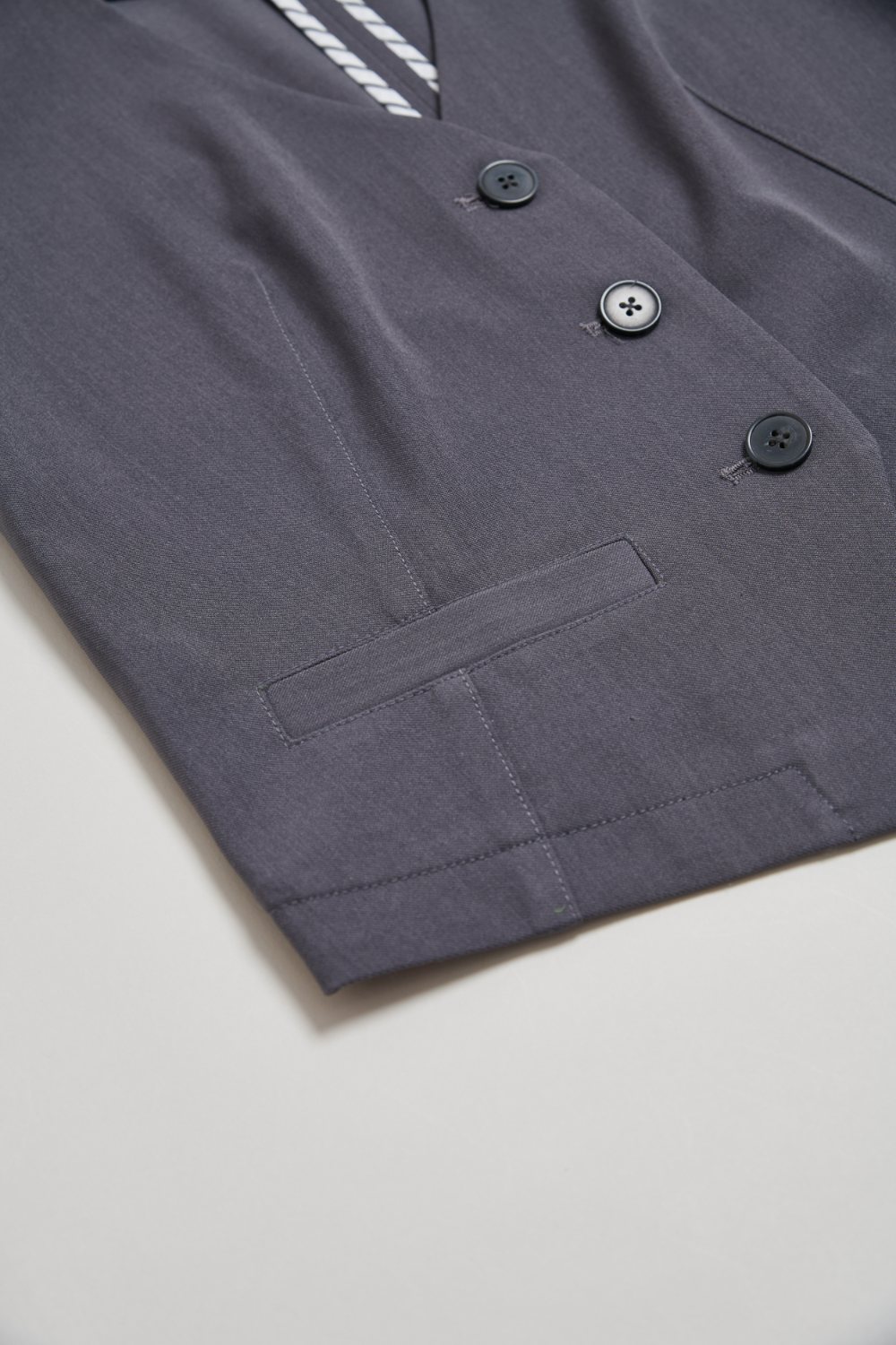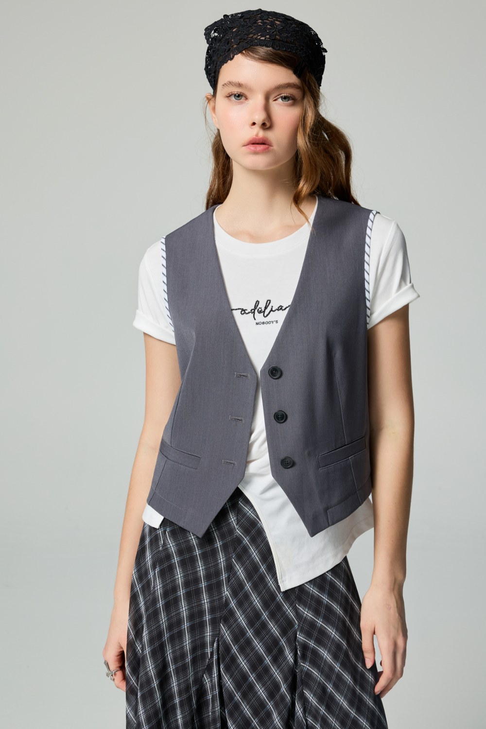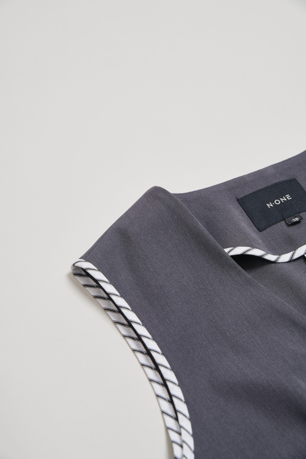 穿搭主場滾邊配色背心外套 - 沉穩霧灰, 36