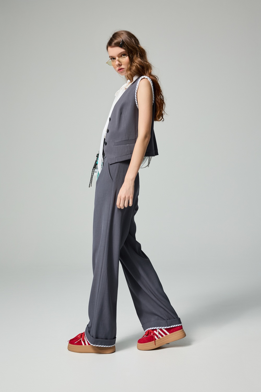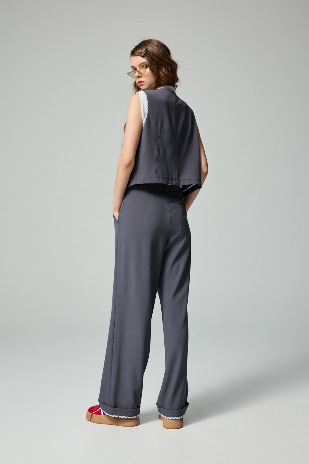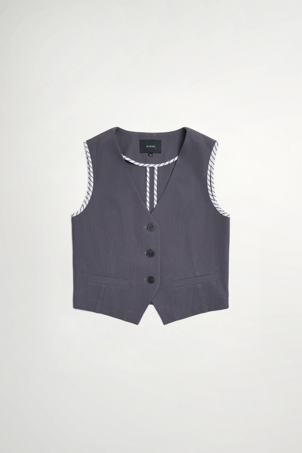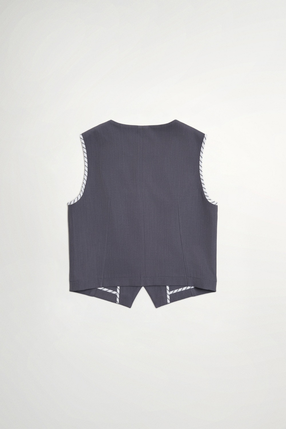 穿搭主場滾邊配色背心外套 - 沉穩霧灰, 36