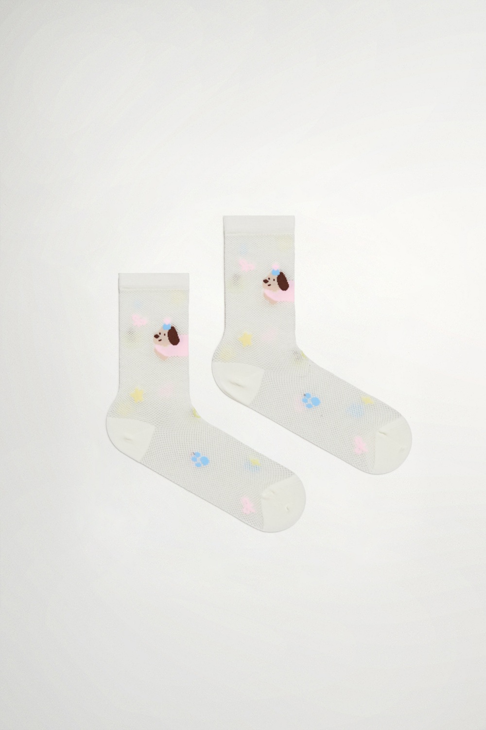 粉嫩小狗中筒襪 - 無瑕純白, F