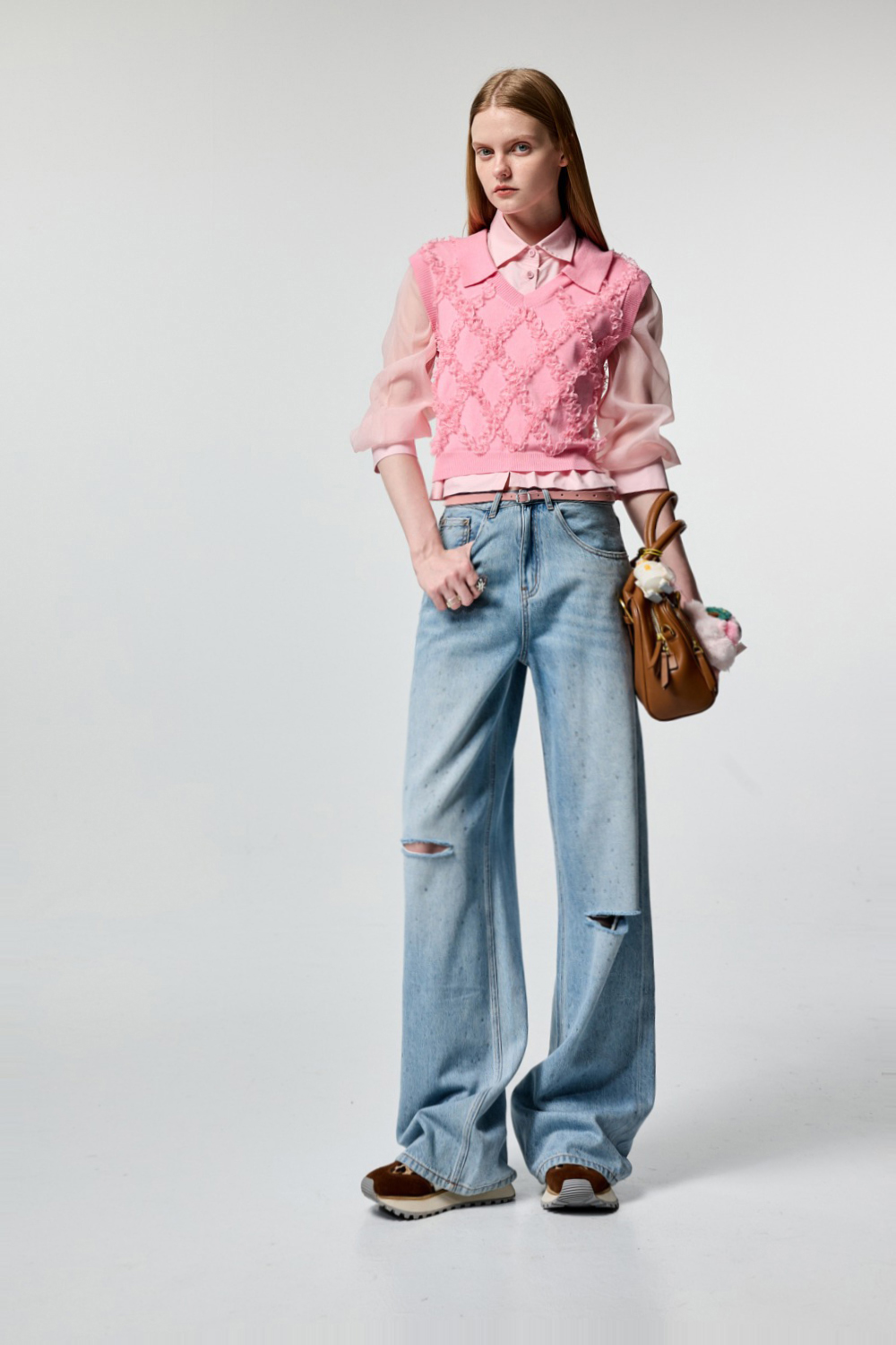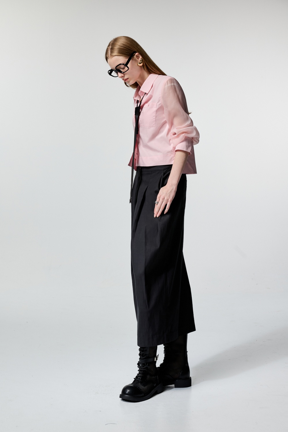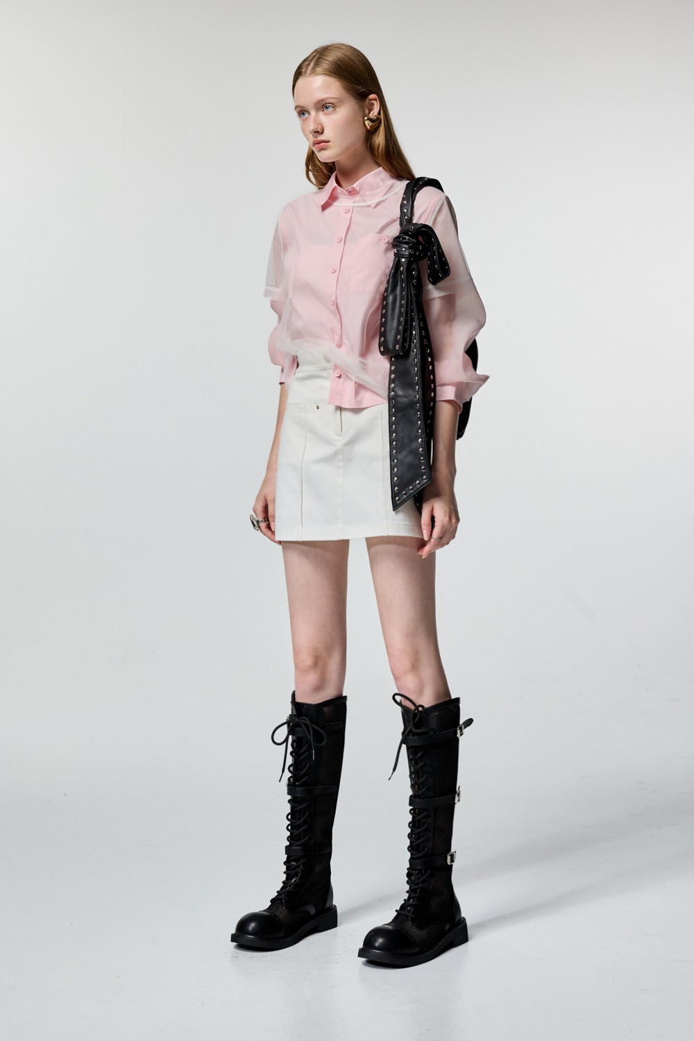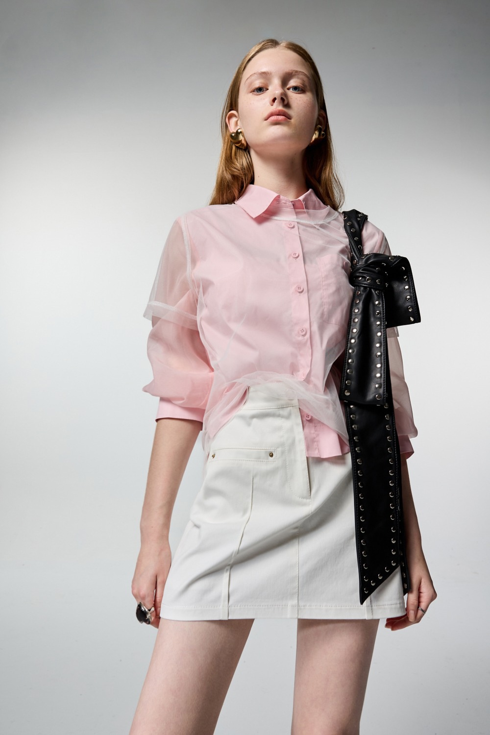 個性甜心微透袖片剪接襯衫 - 古典藕粉, 36
