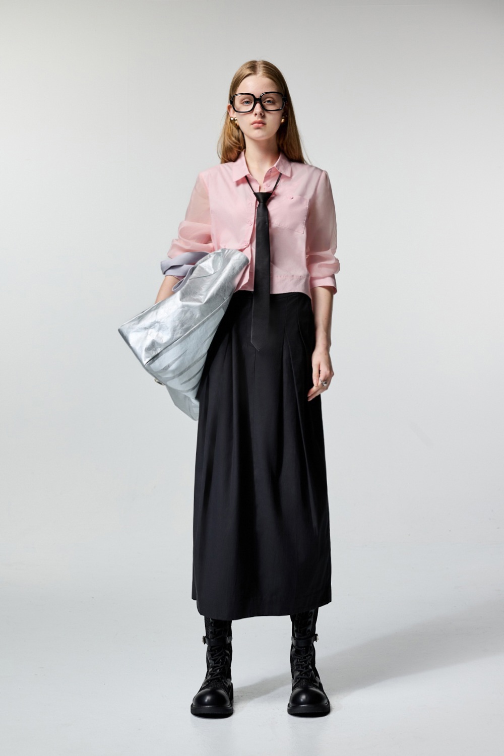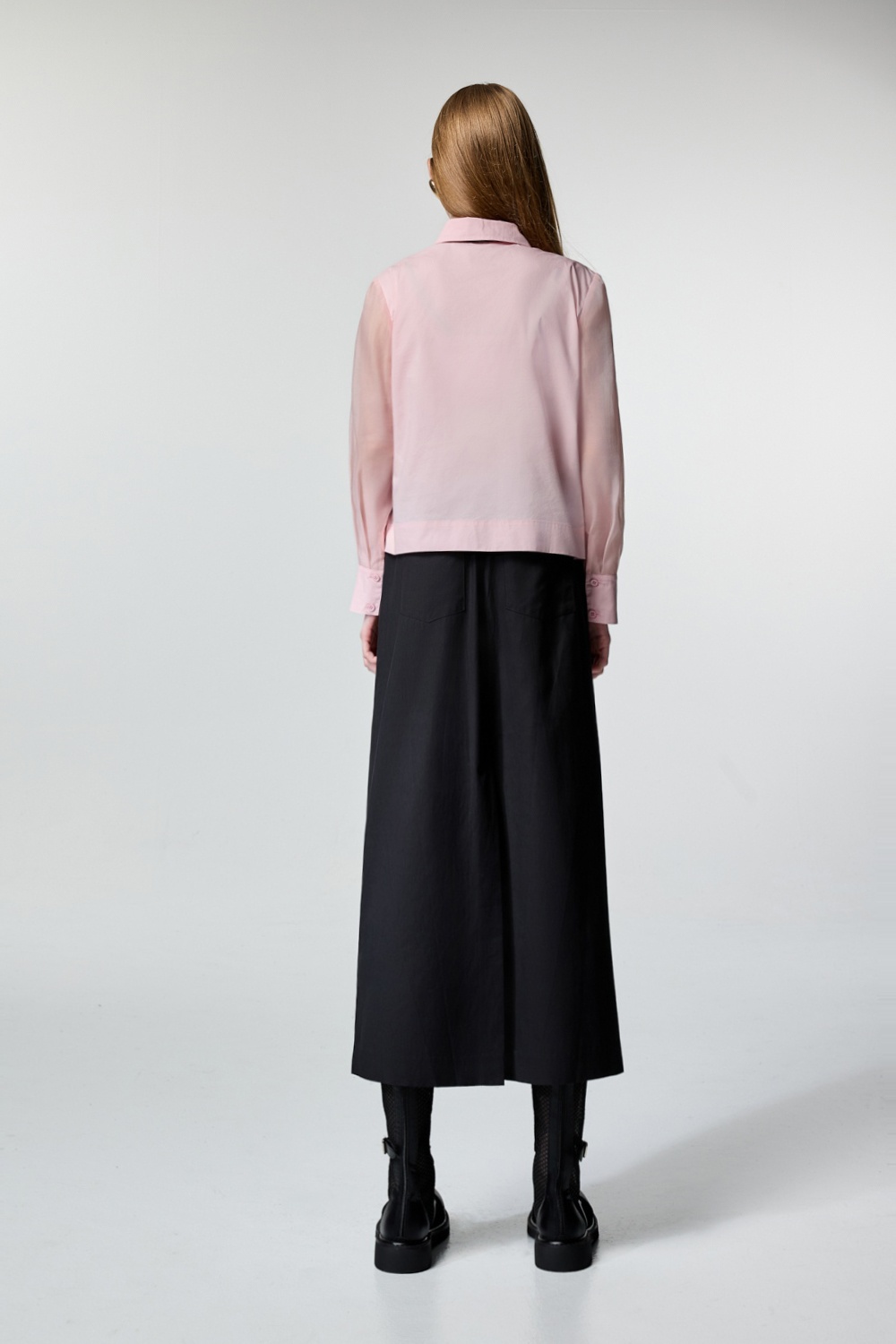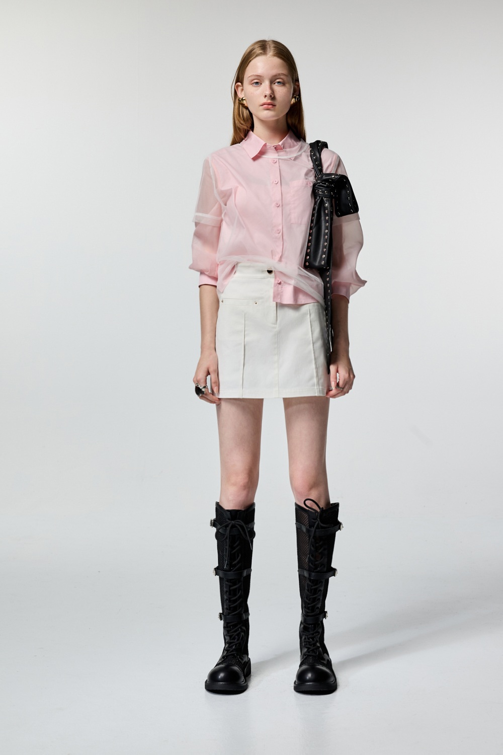 個性甜心微透袖片剪接襯衫 - 古典藕粉, 40