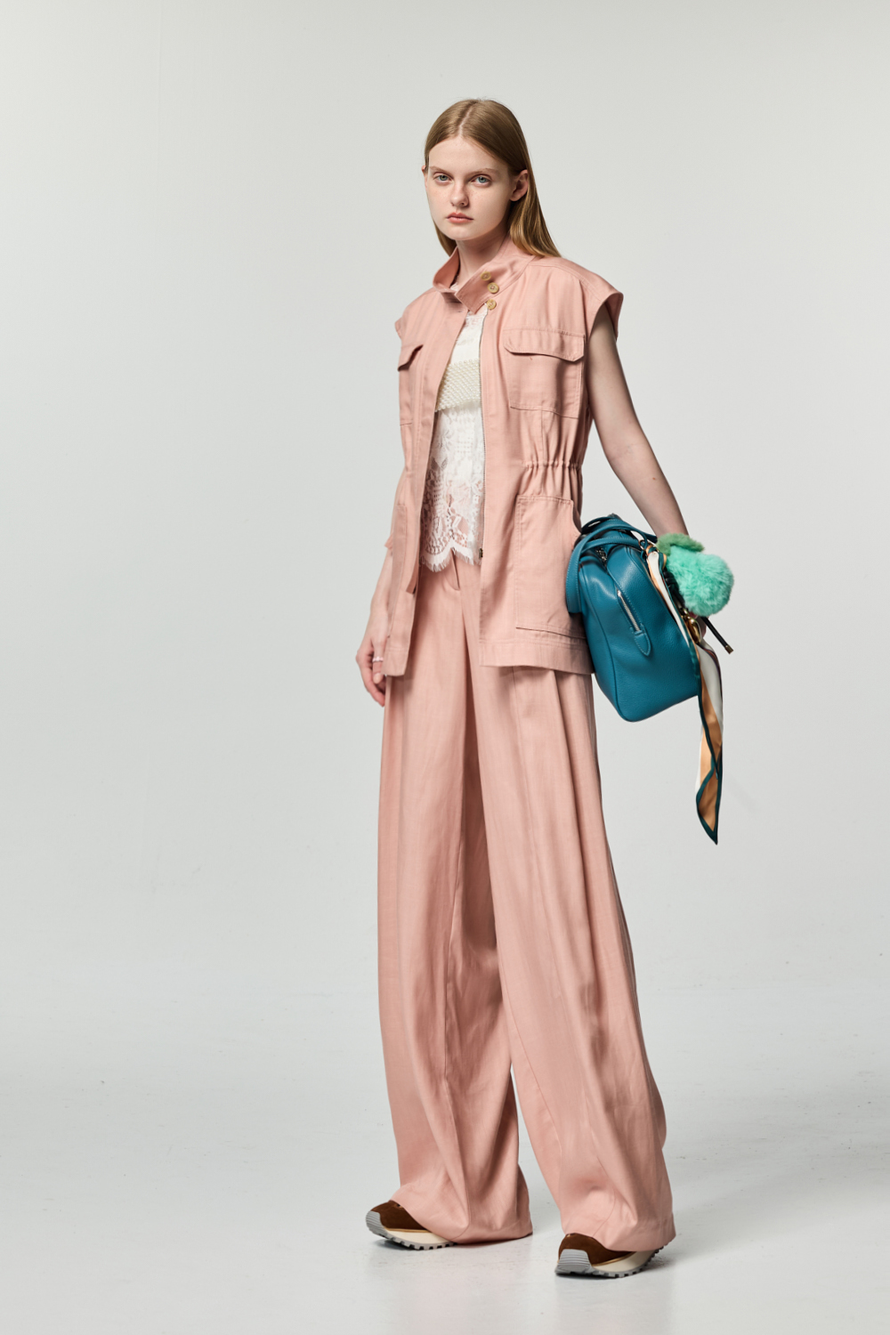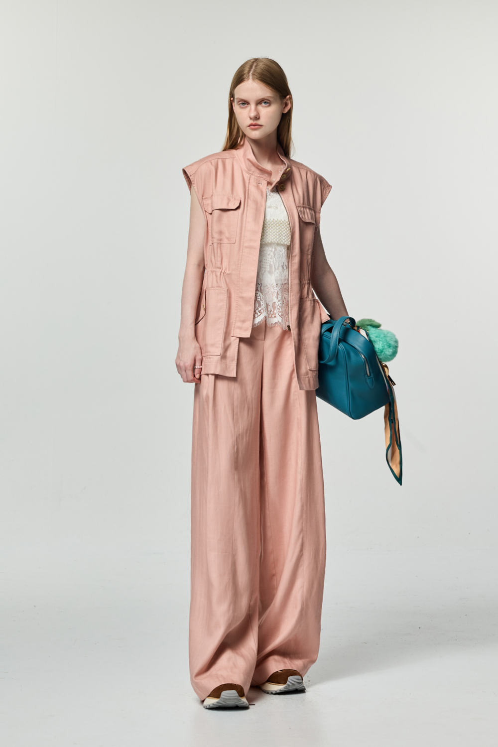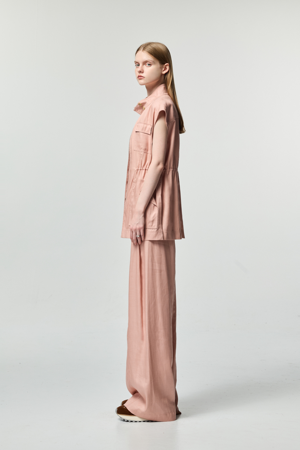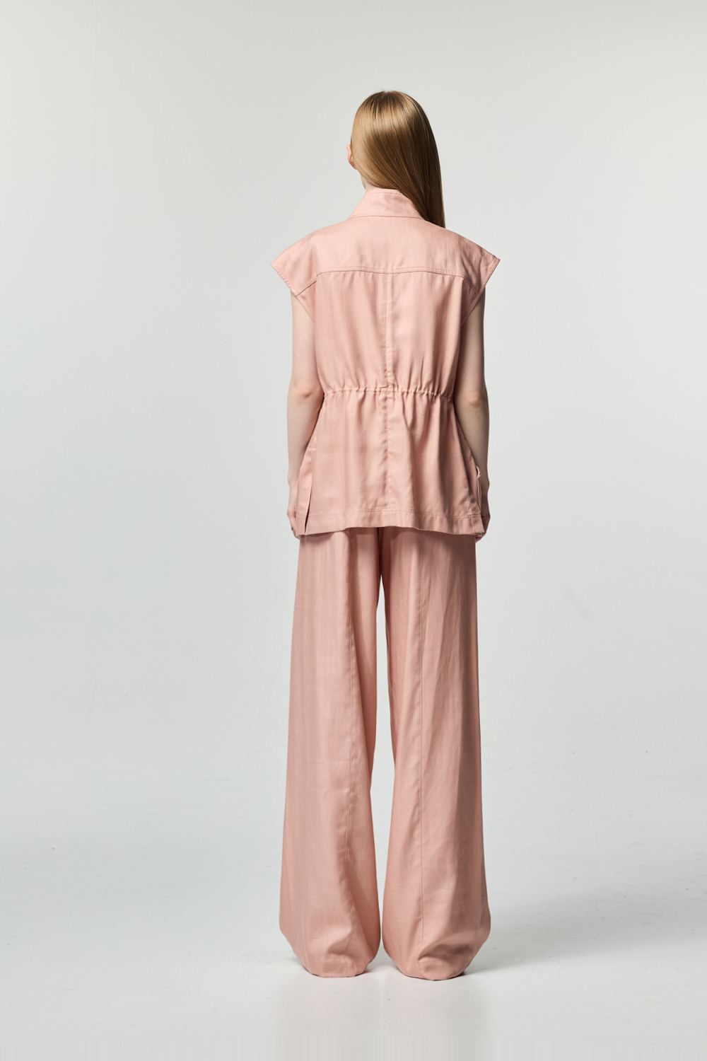 粉霧腰部抽繩背心式外套