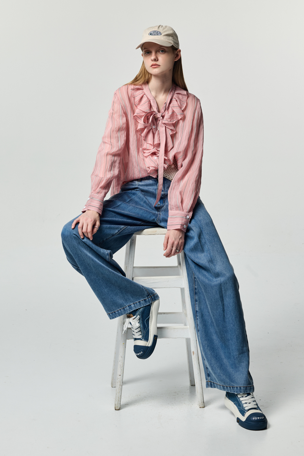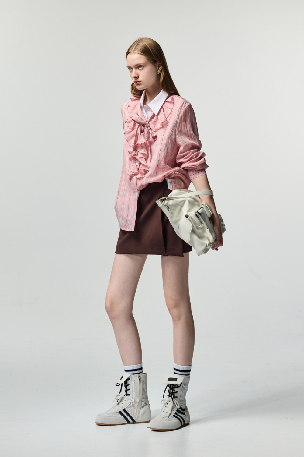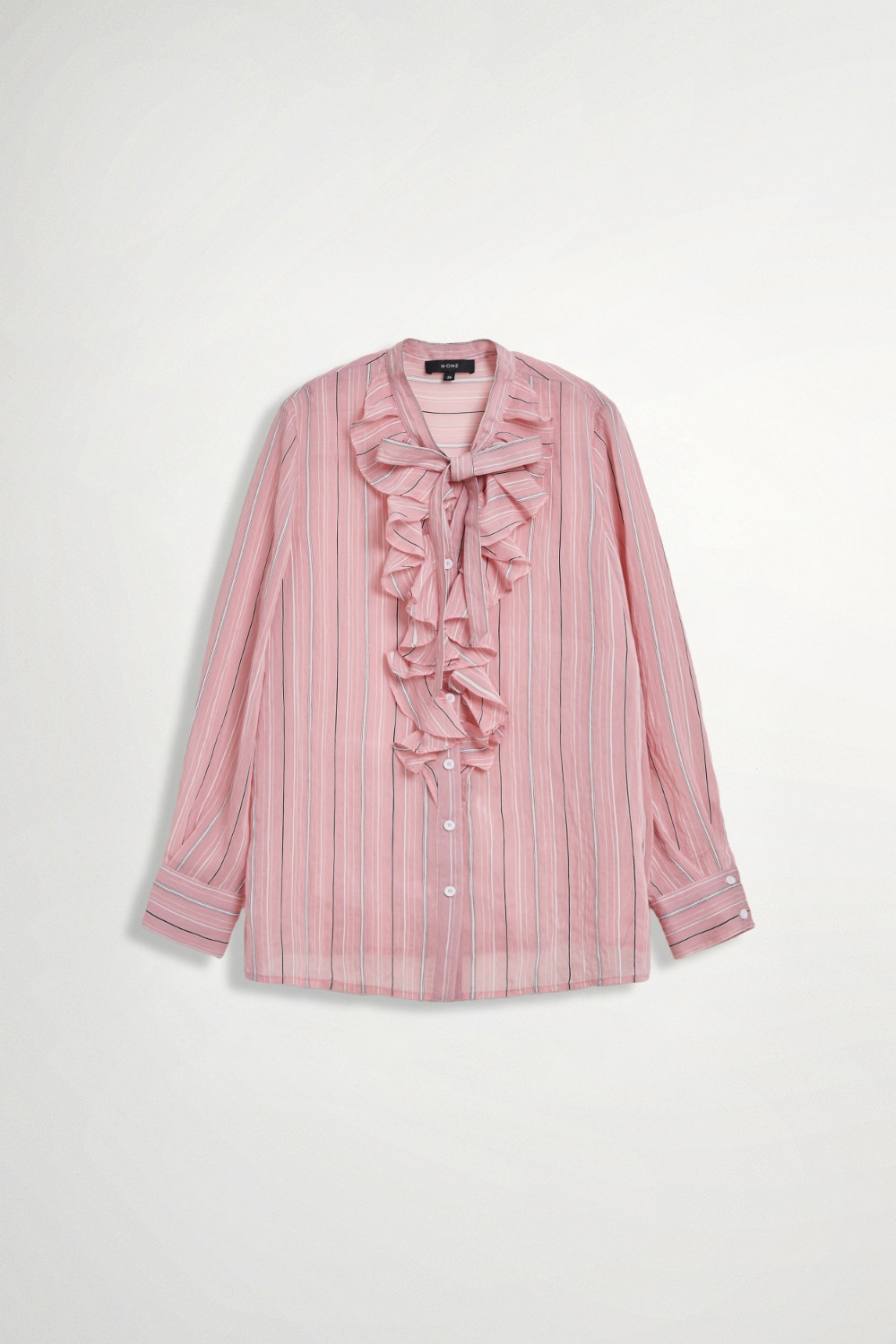 粉霧輕語荷葉領綁帶襯衫 - 古典藕粉, 36