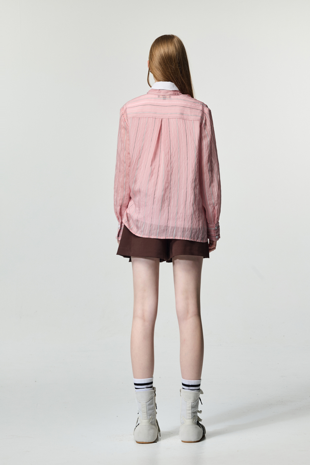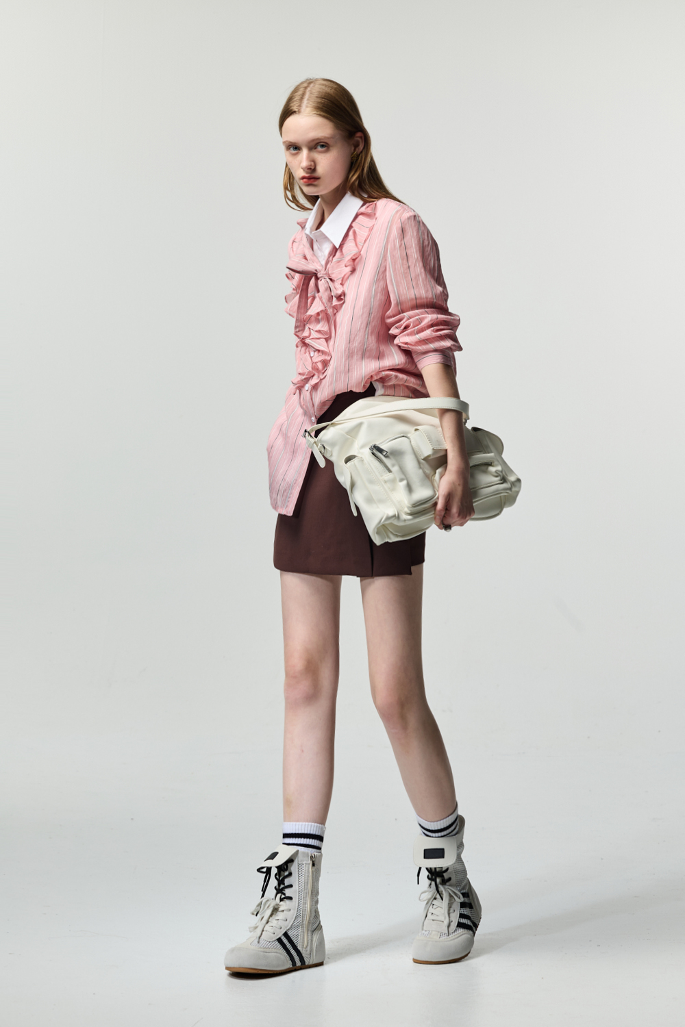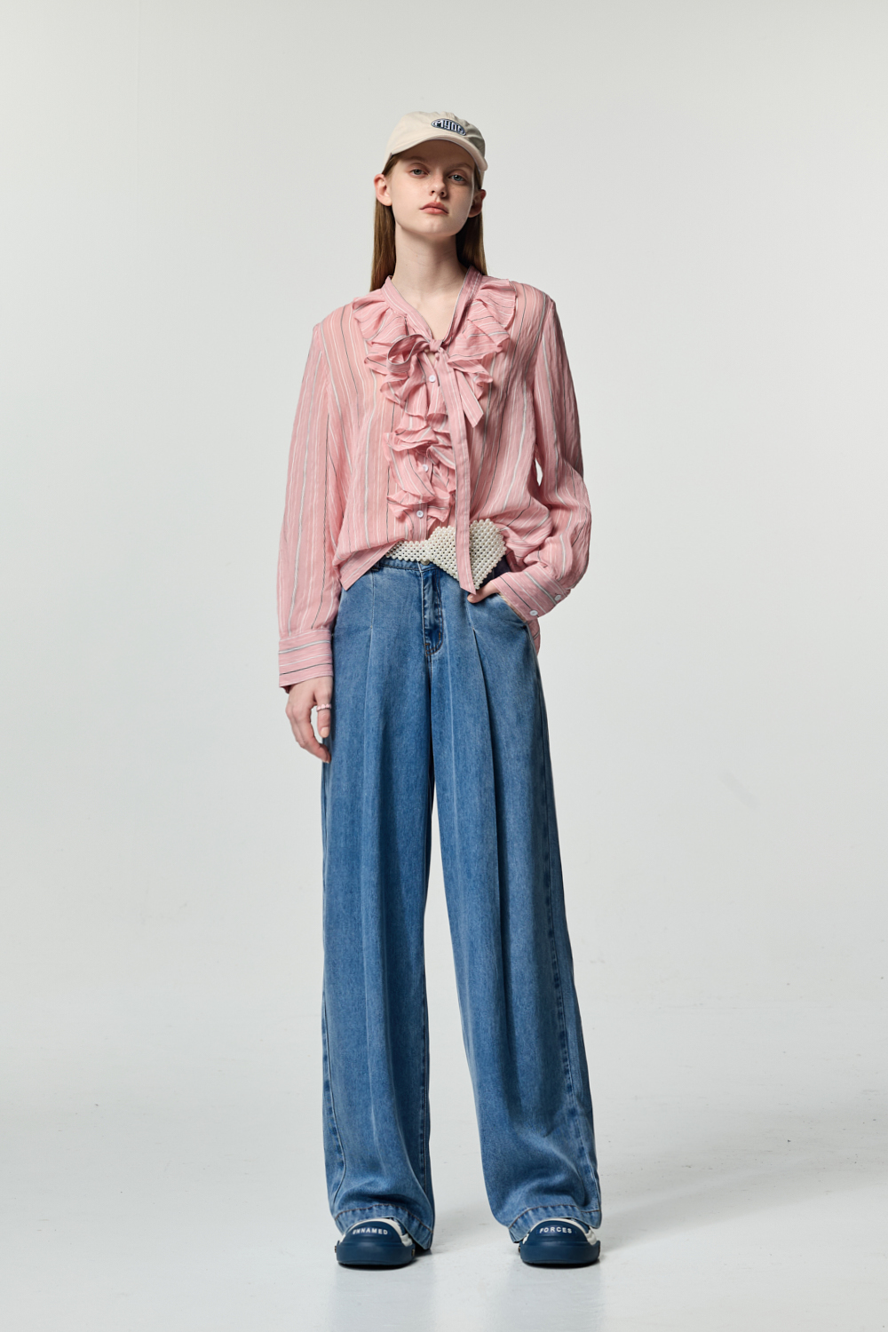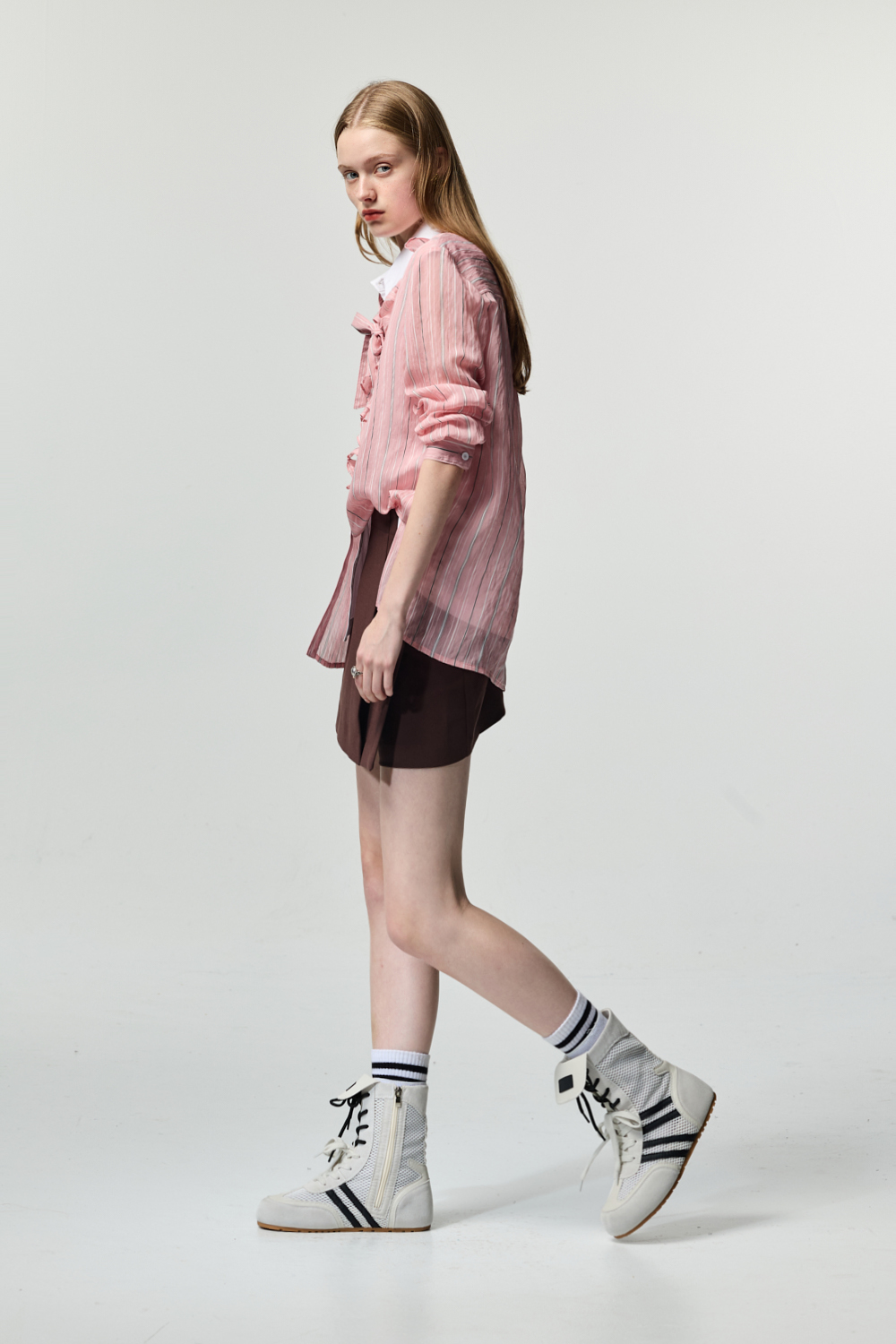 粉霧輕語荷葉領綁帶襯衫 - 古典藕粉, 36