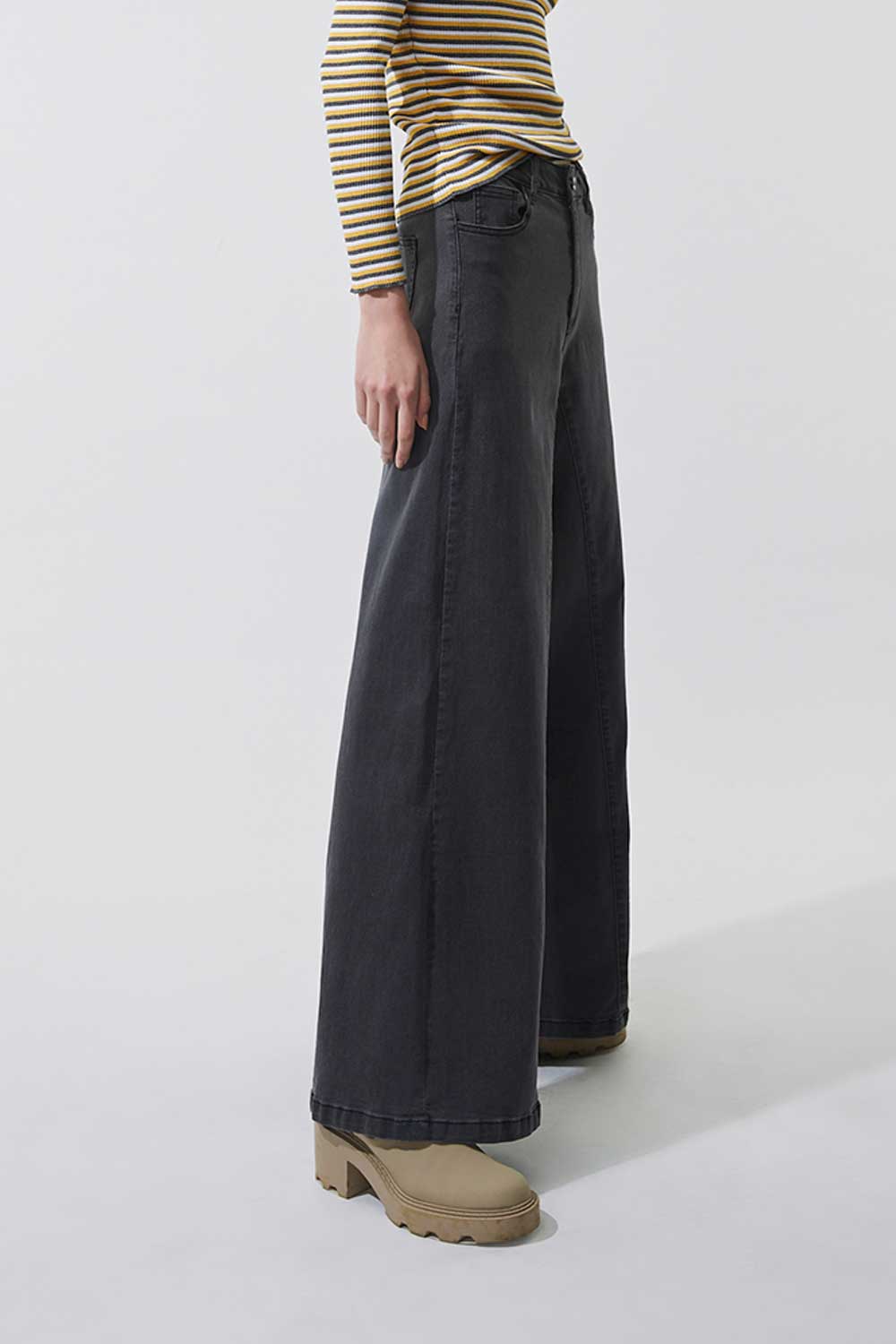 霧感晨灰落地牛仔寬褲 - 沉穩霧灰, L