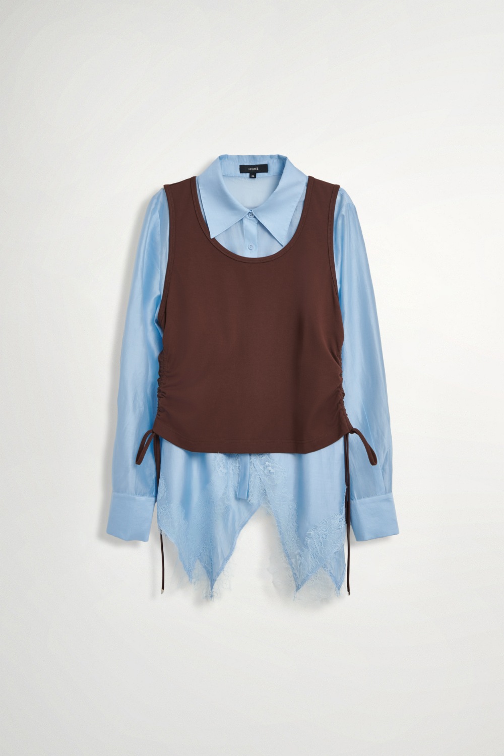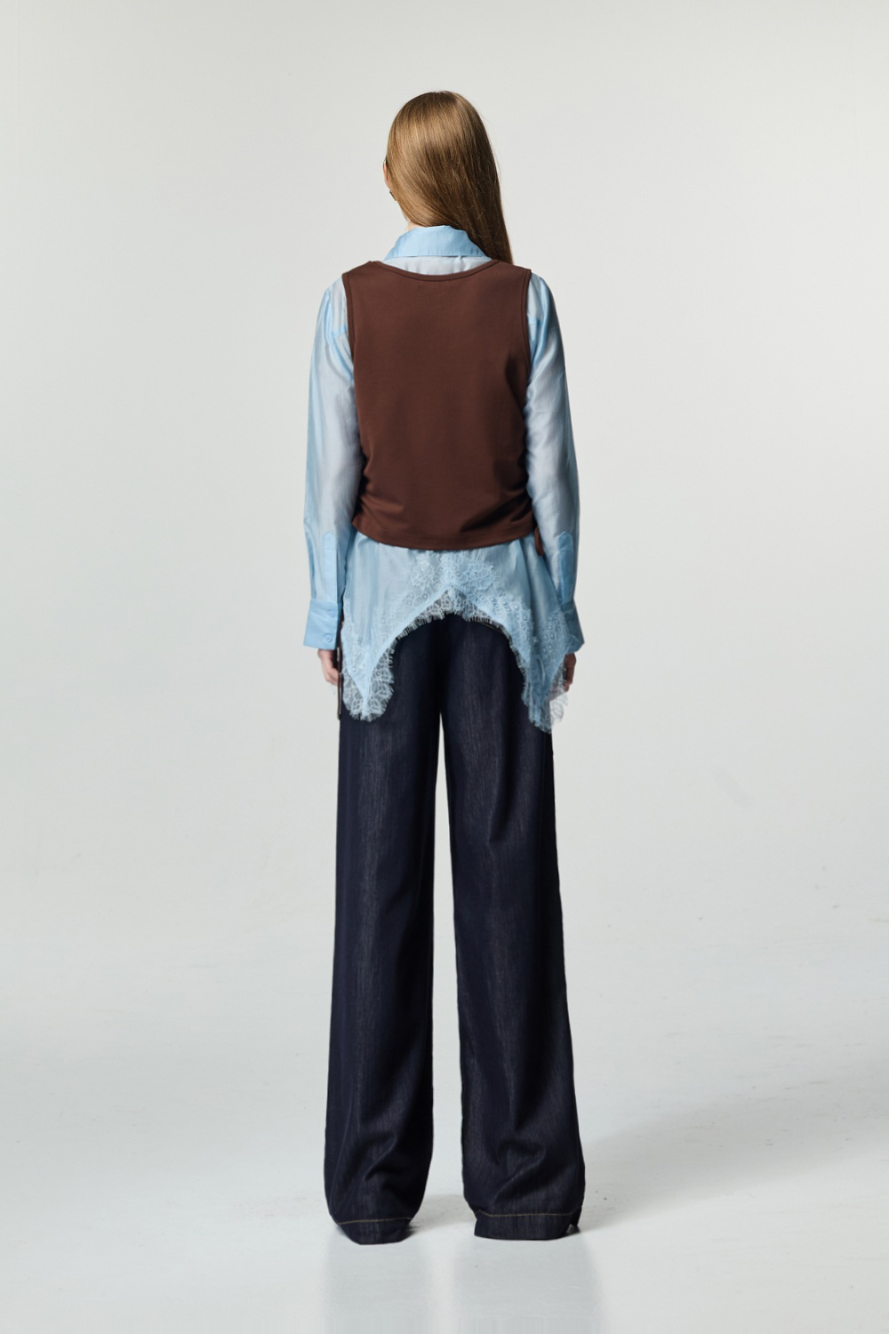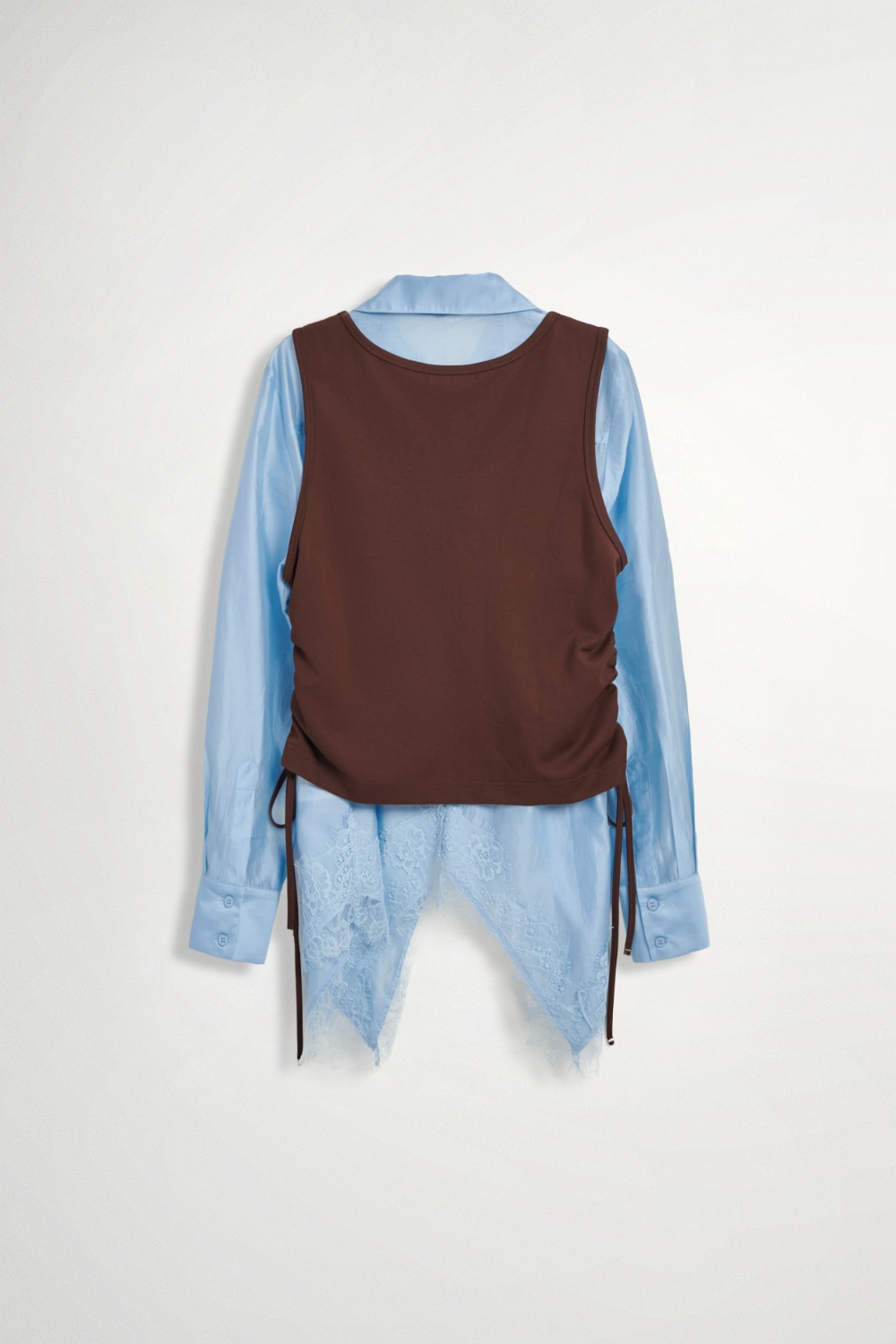 慵懶兩件式蕾絲襯衫背心 - 清新蔚藍, 36