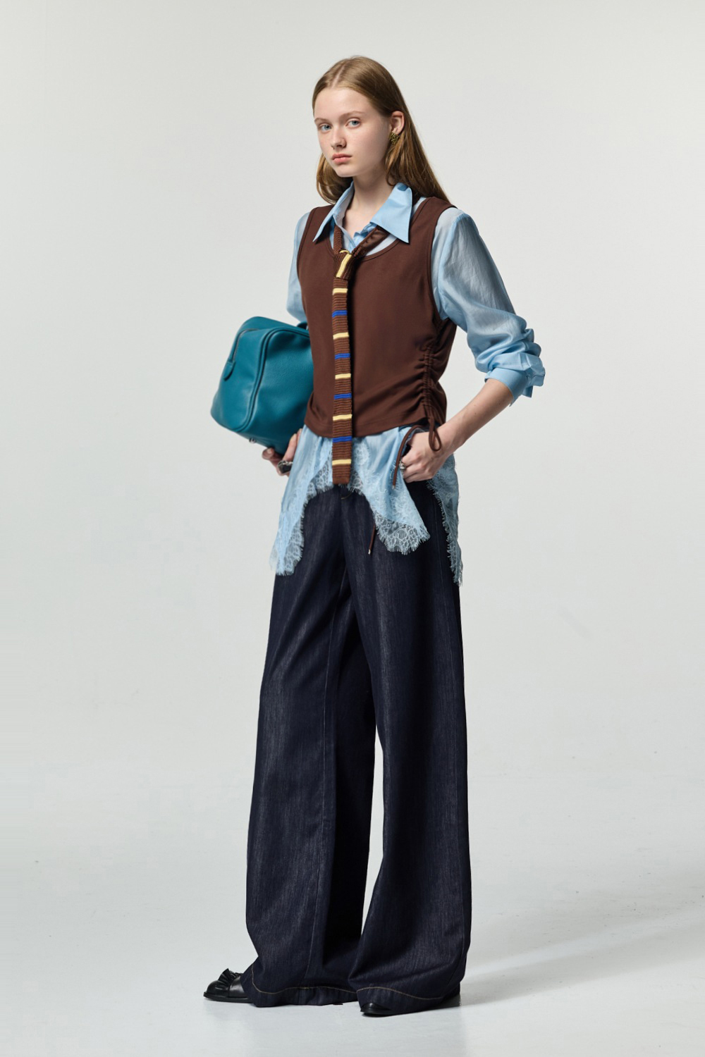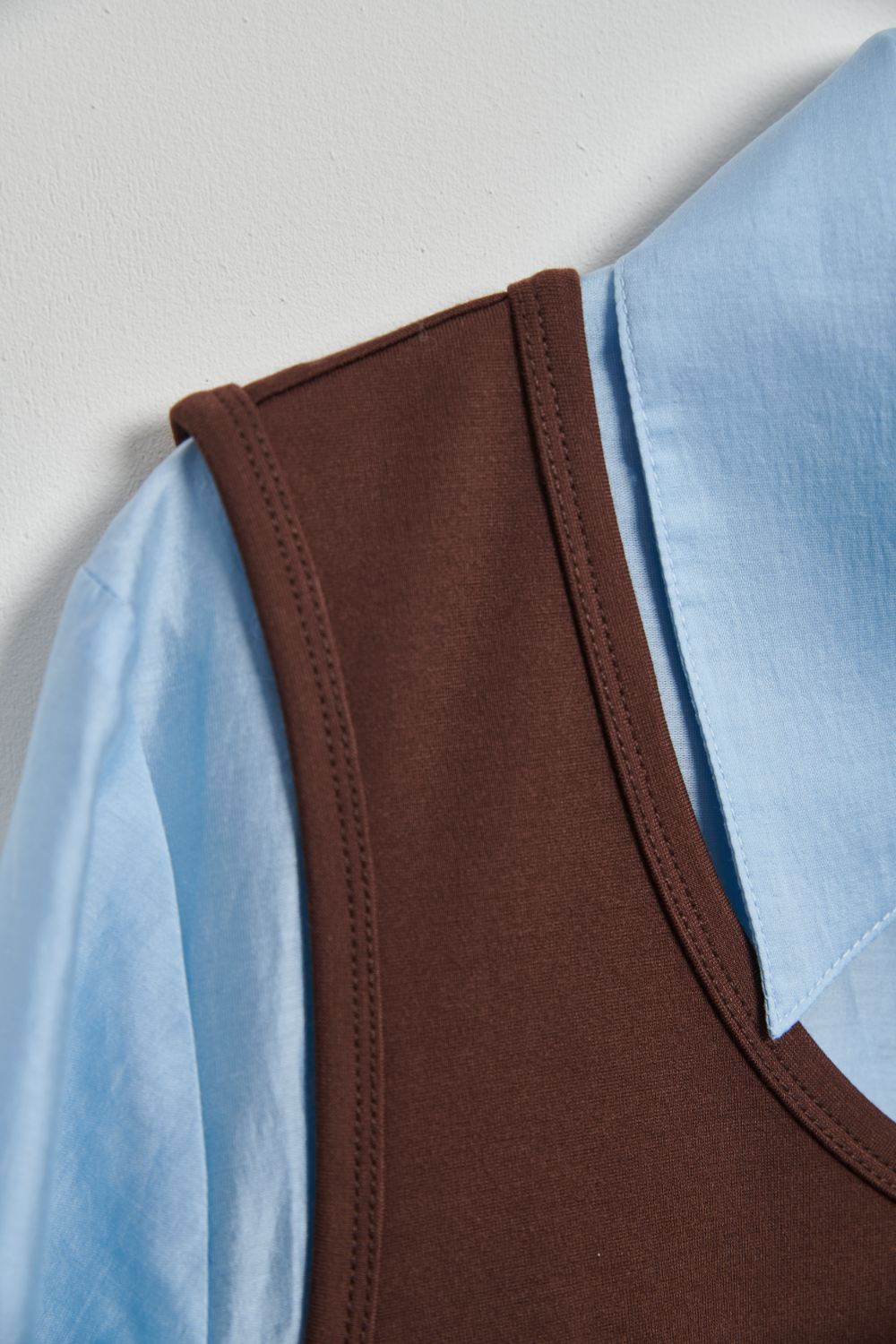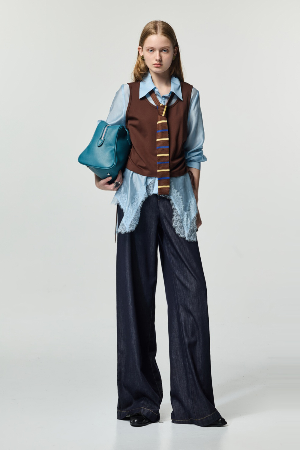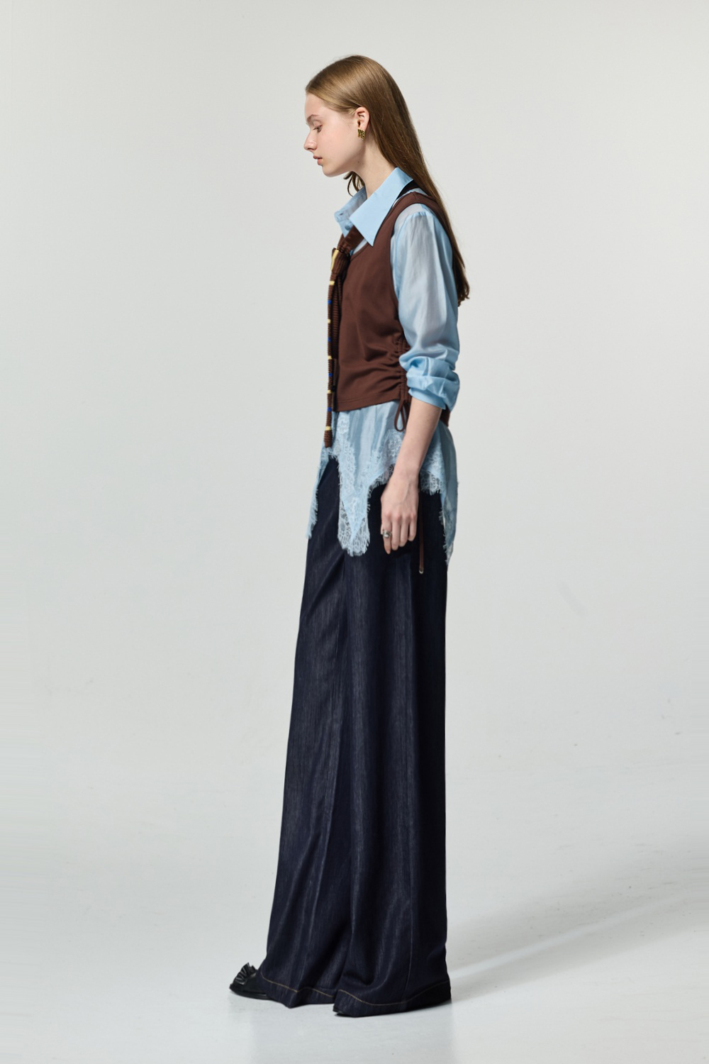 慵懶兩件式蕾絲襯衫背心 - 清新蔚藍, 36