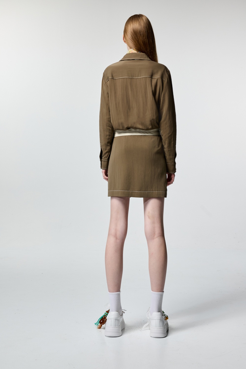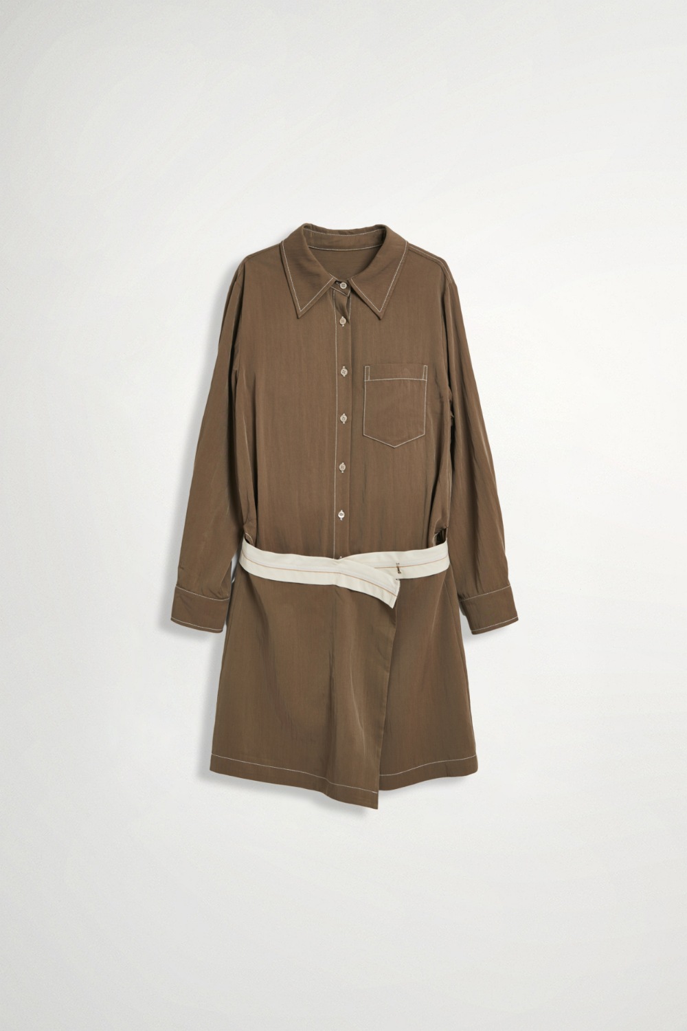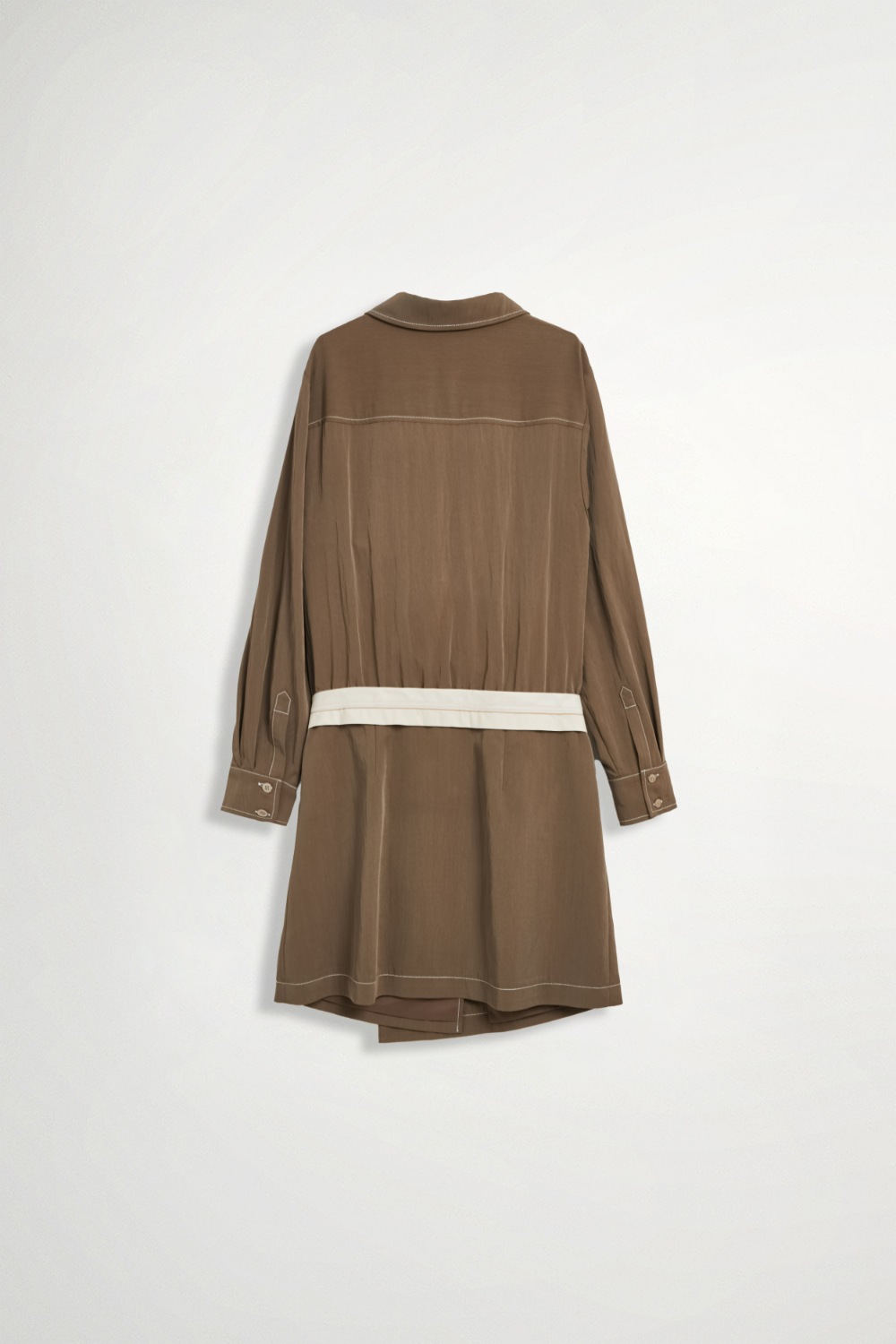 率性可可棕配色腰頭連身裙 - 古樸咖啡, 36