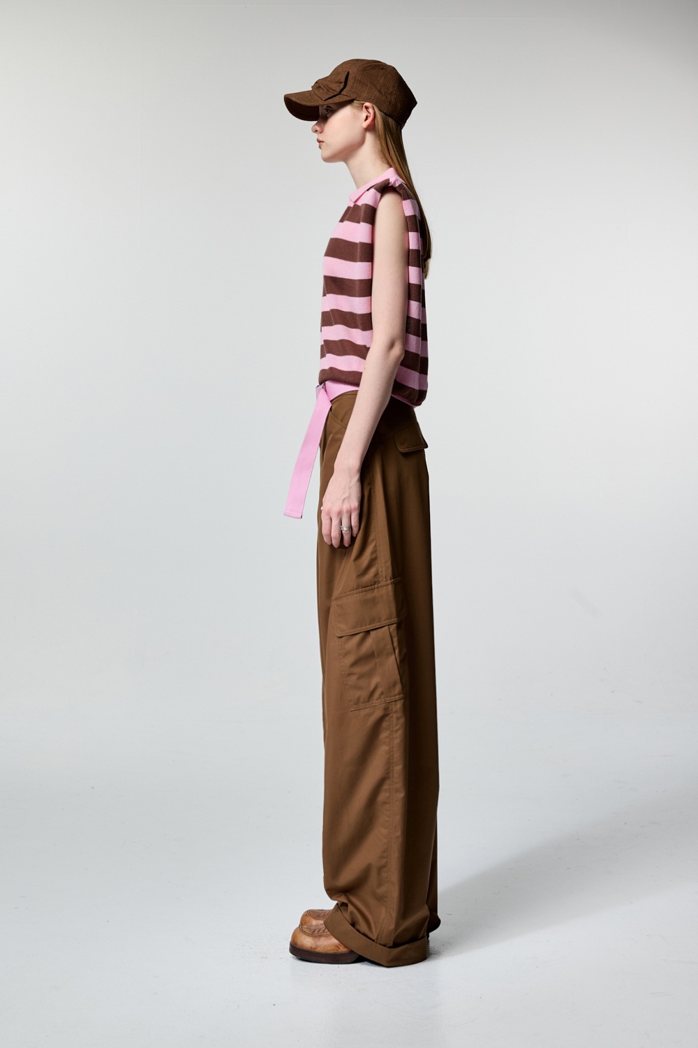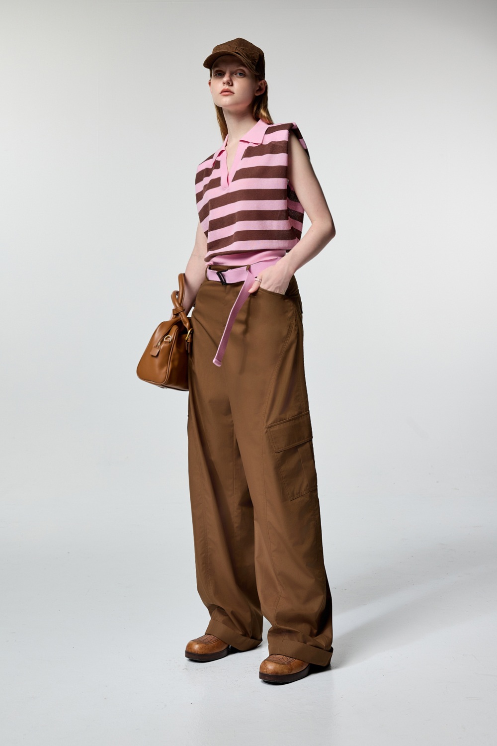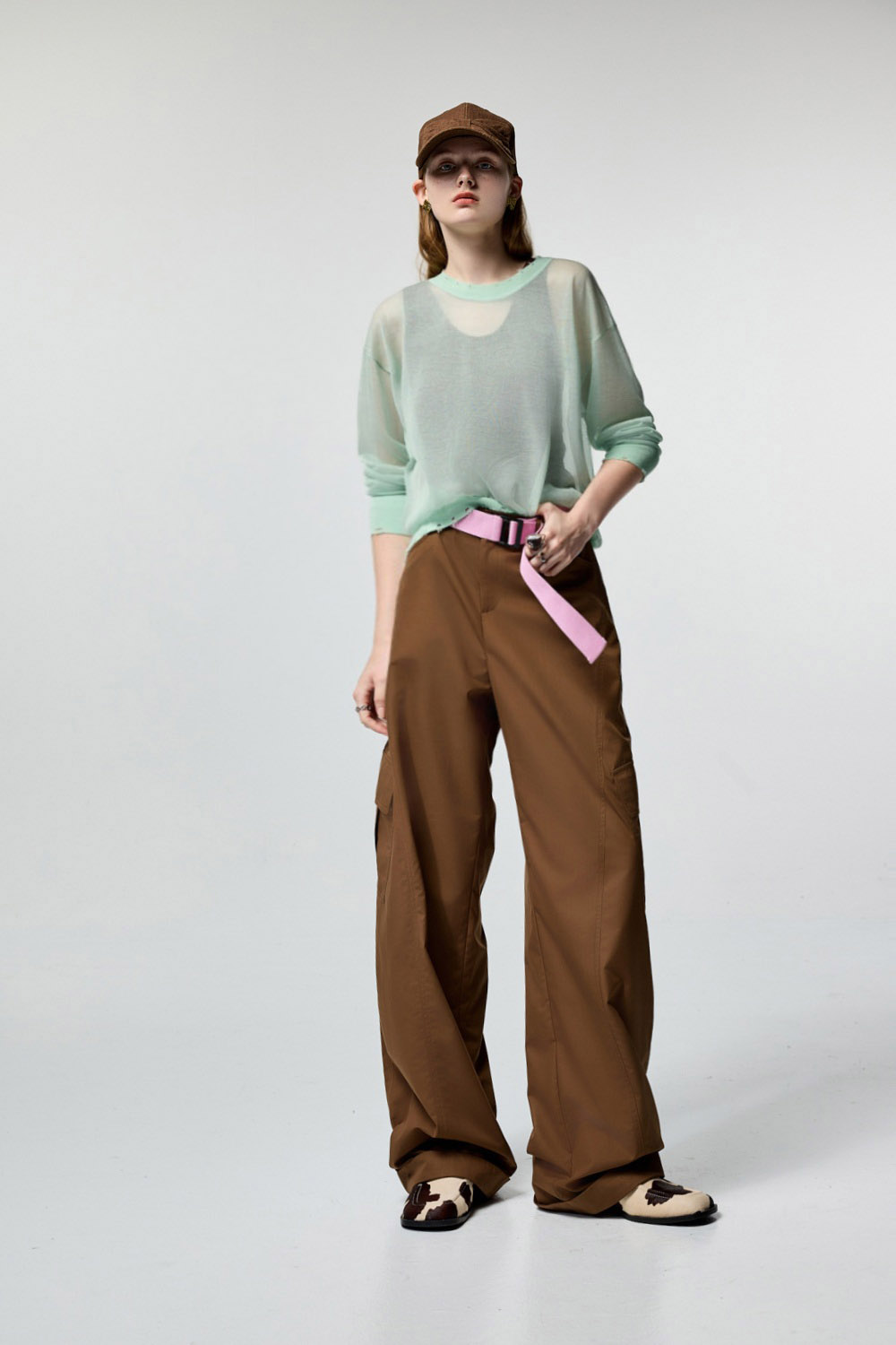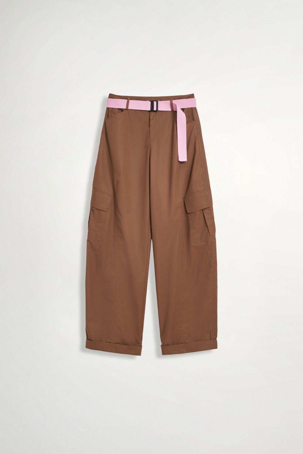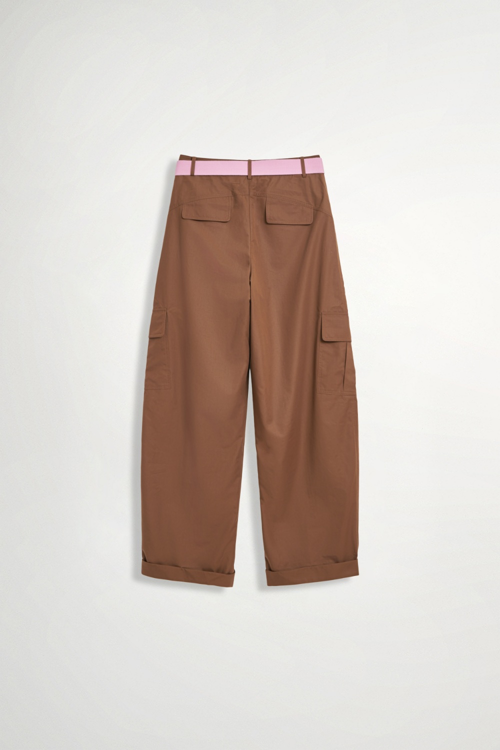 硬挺深棕設計感剪接工裝褲(含粉色腰帶) - 古樸咖啡, 36