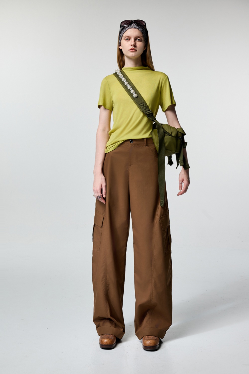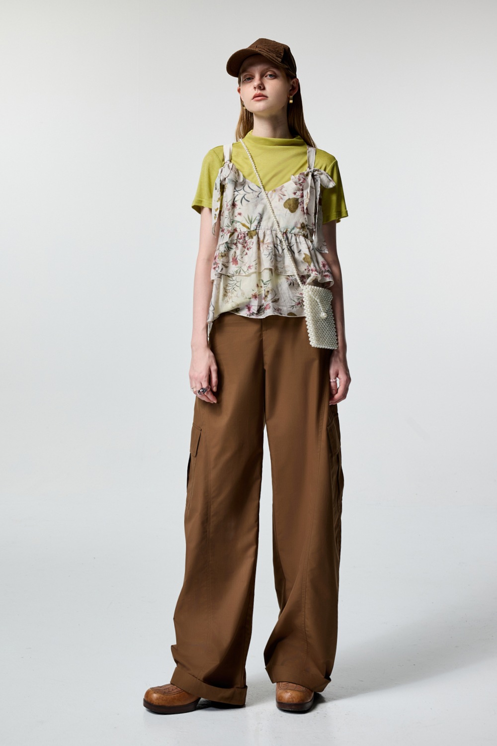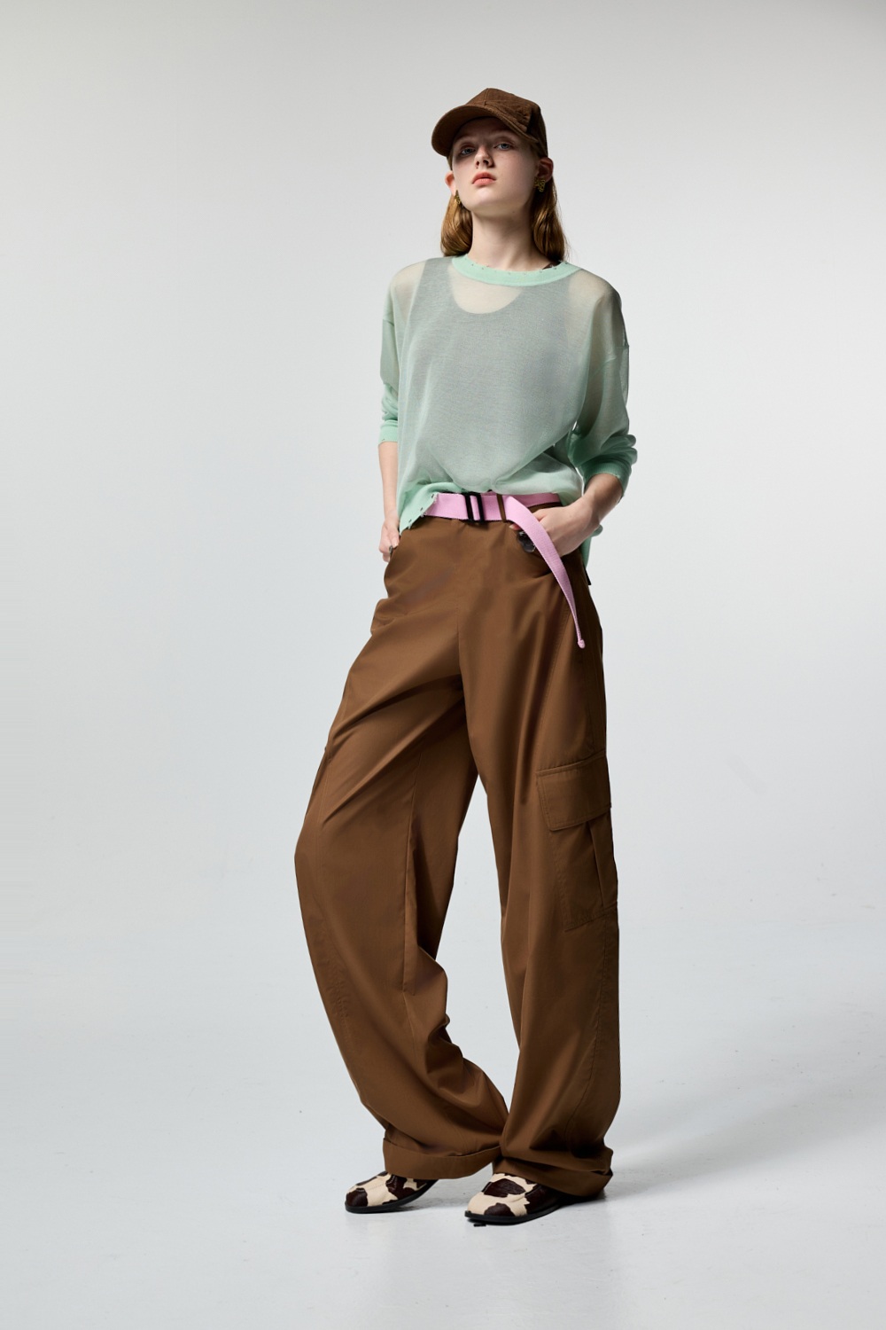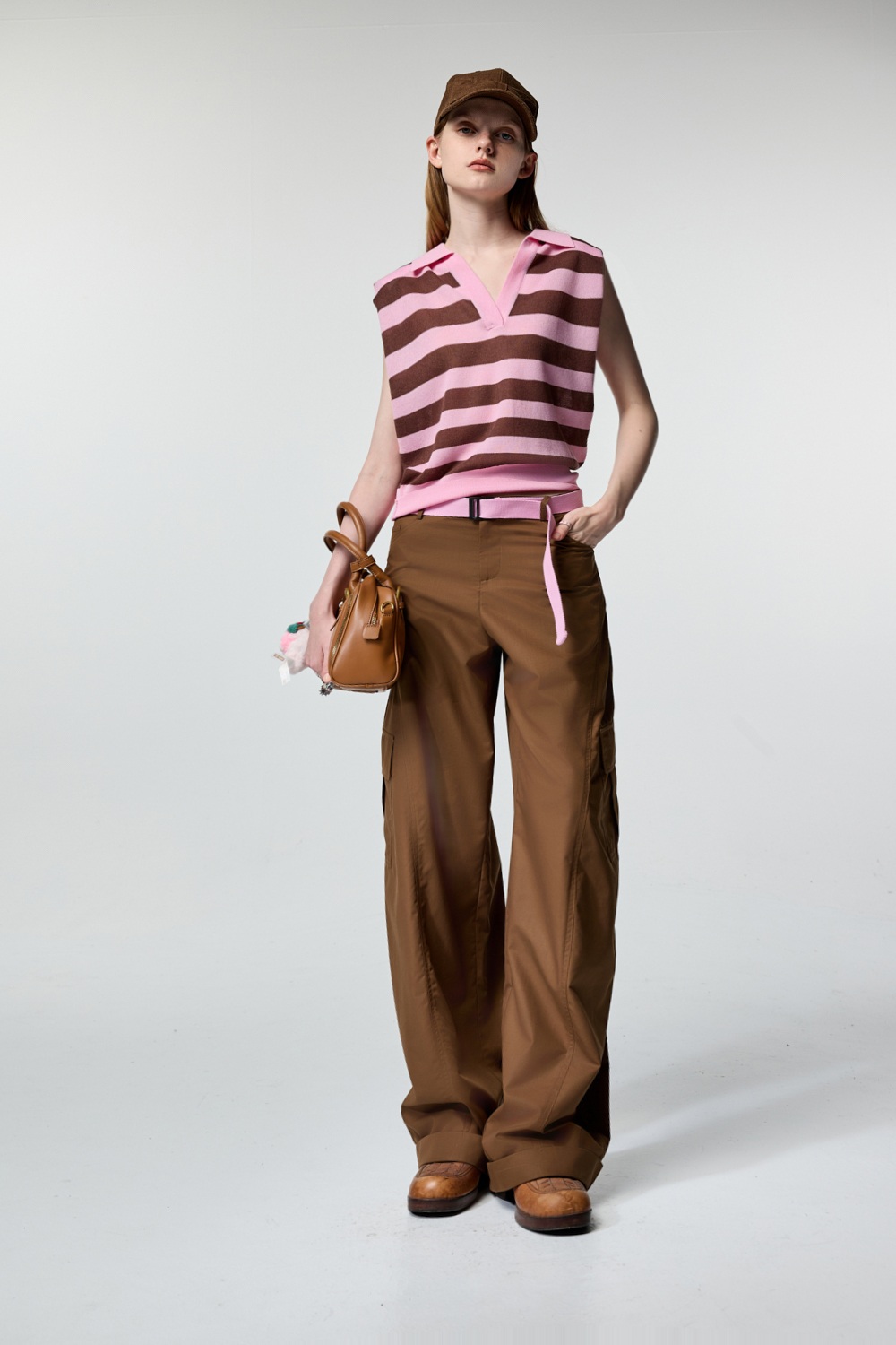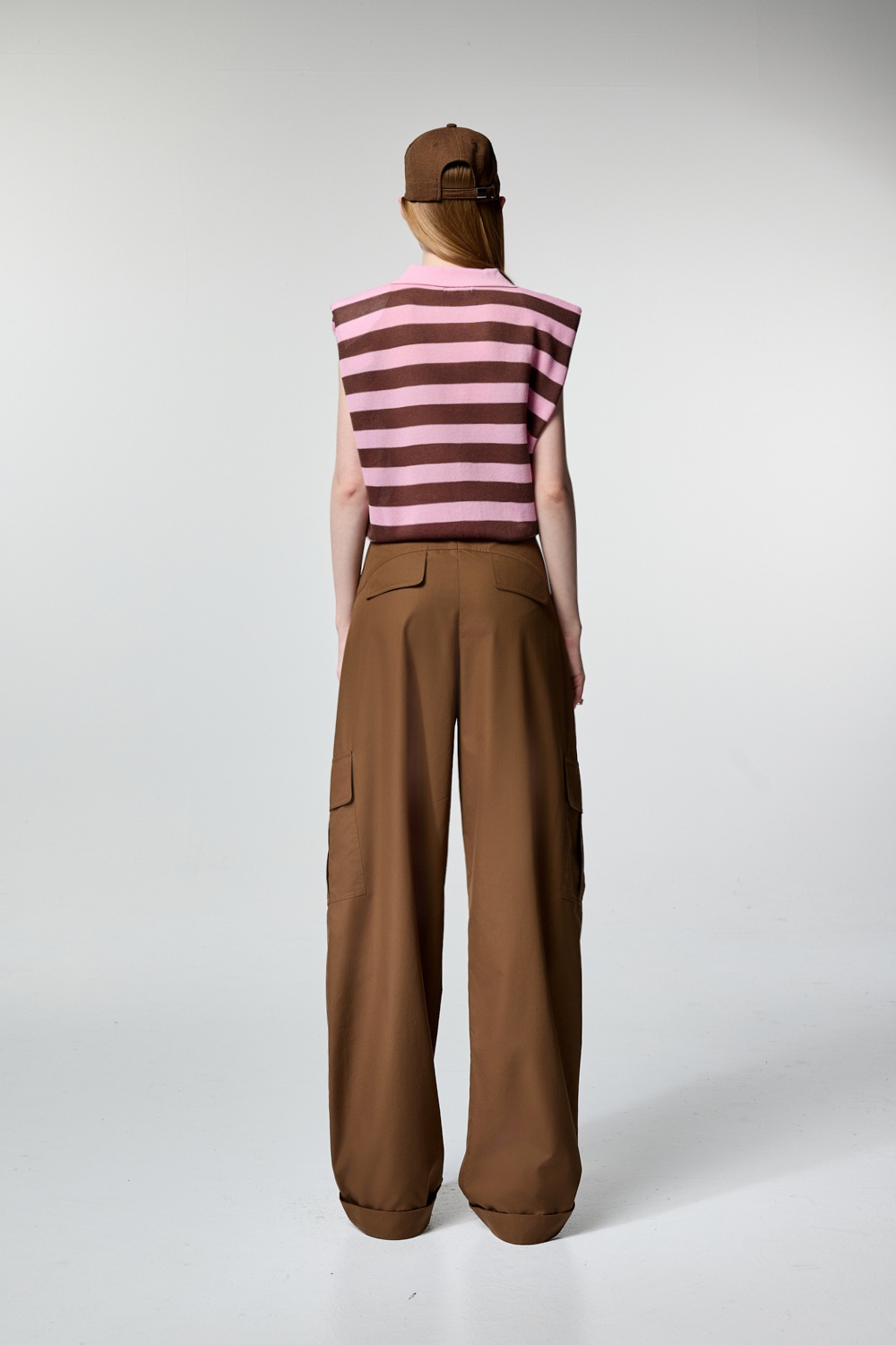 硬挺深棕設計感剪接工裝褲(含粉色腰帶) - 古樸咖啡, 36