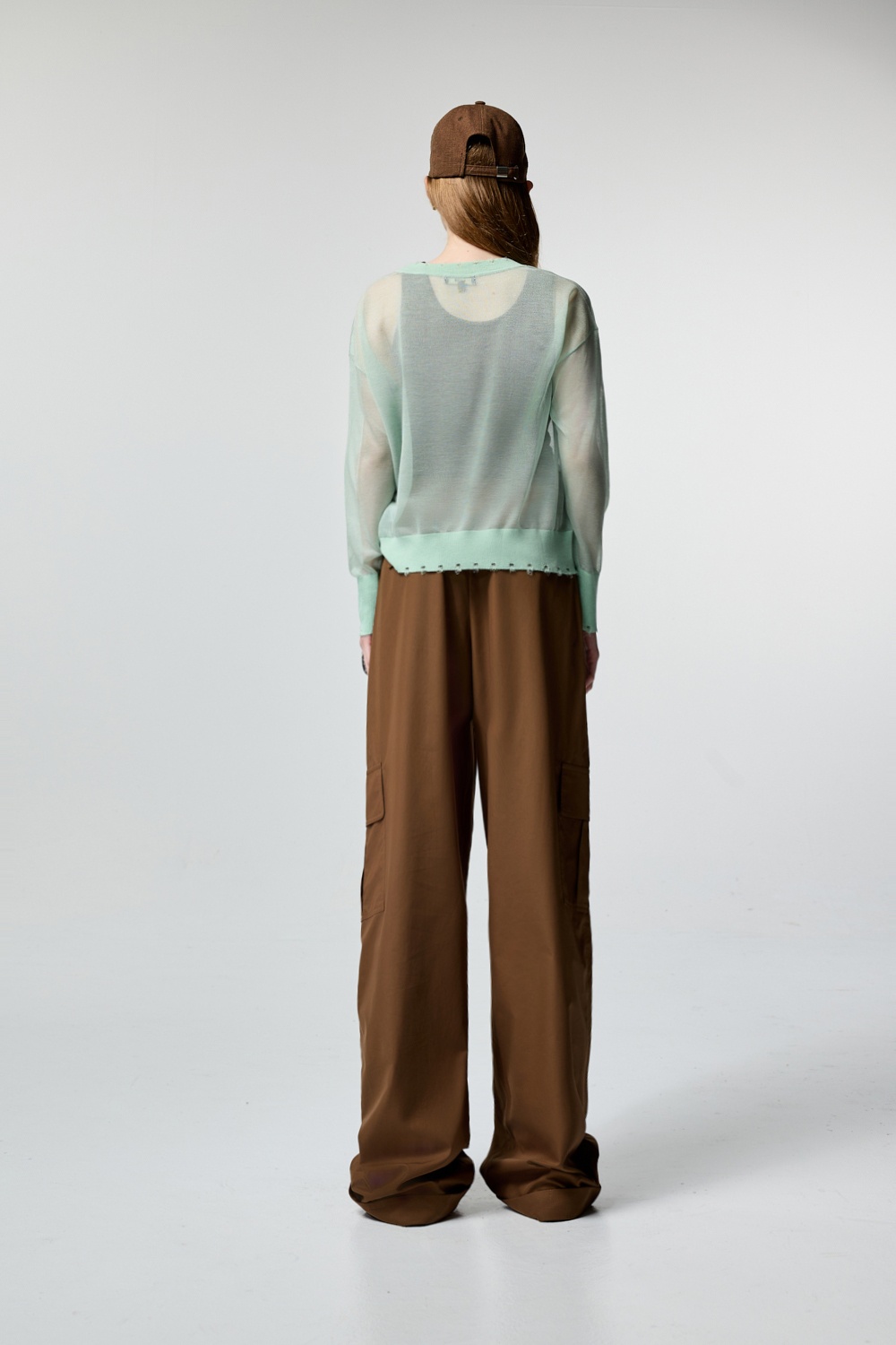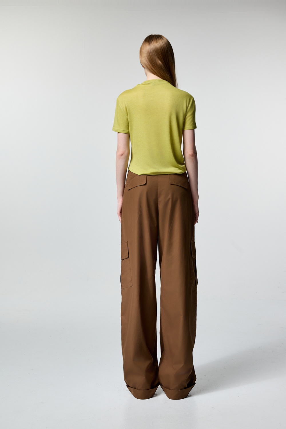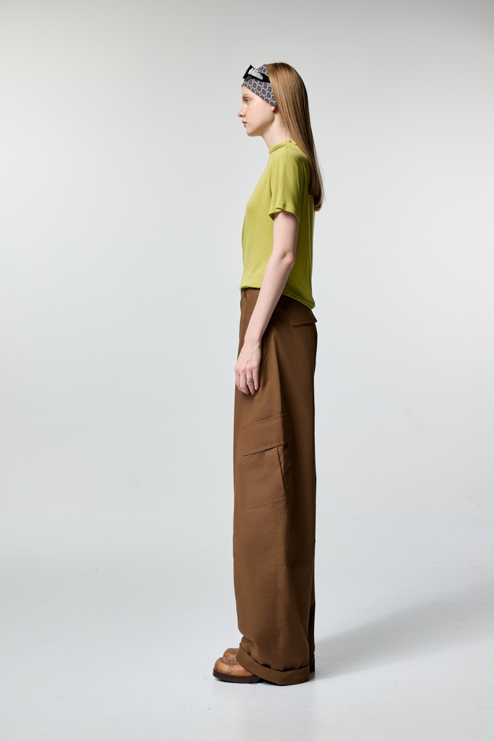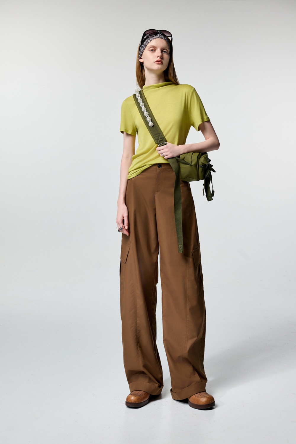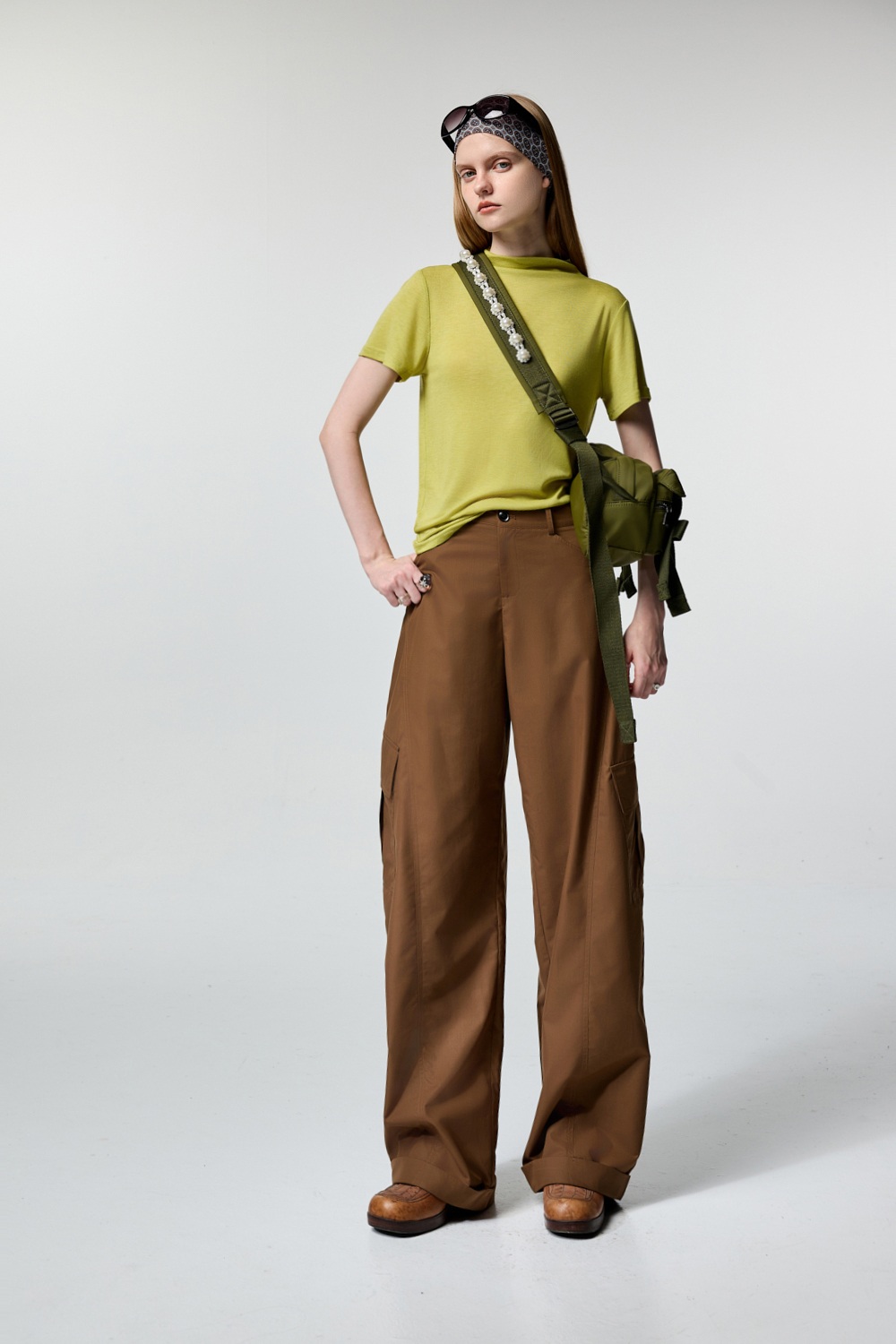 硬挺深棕設計感剪接工裝褲(含粉色腰帶) - 古樸咖啡, 36