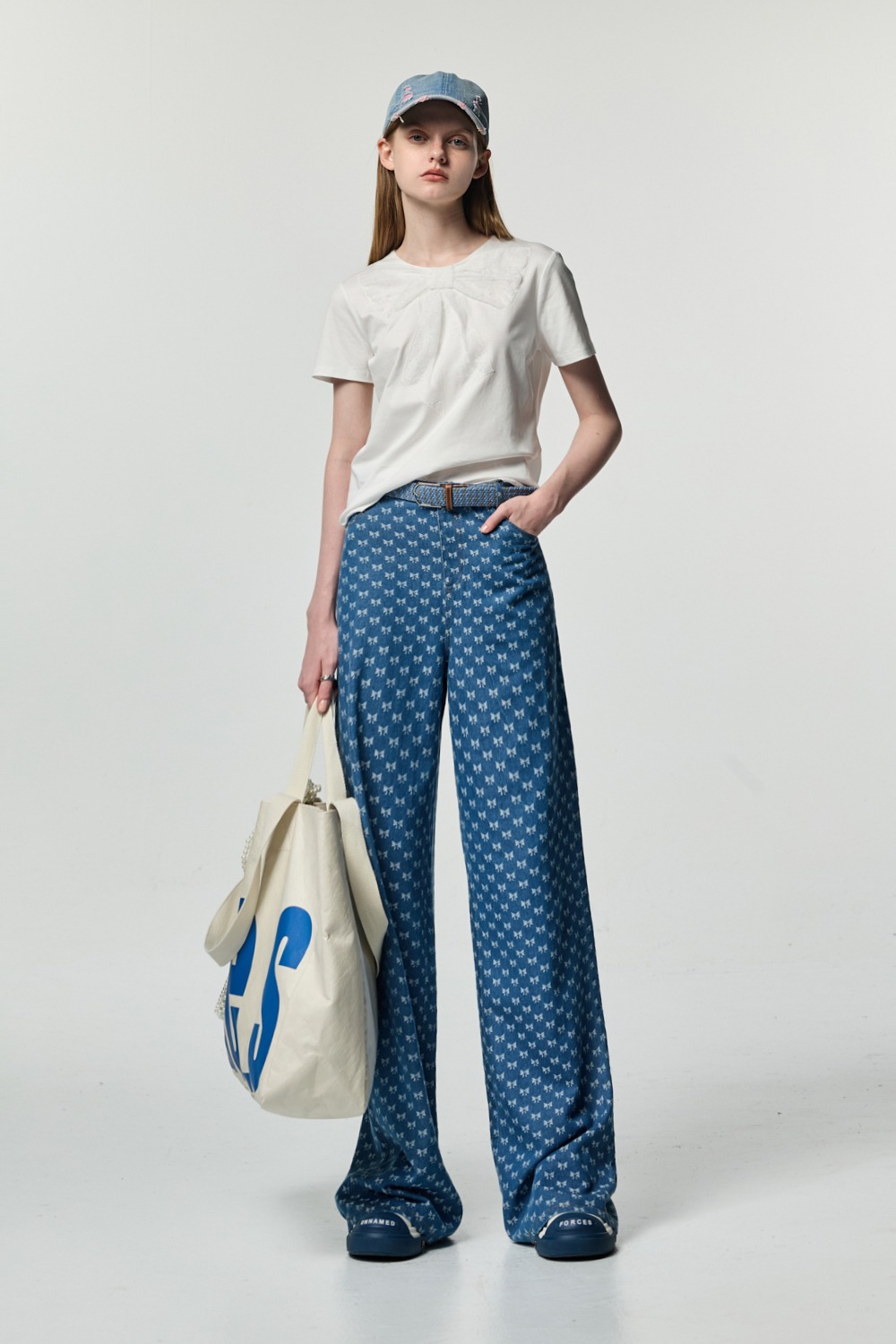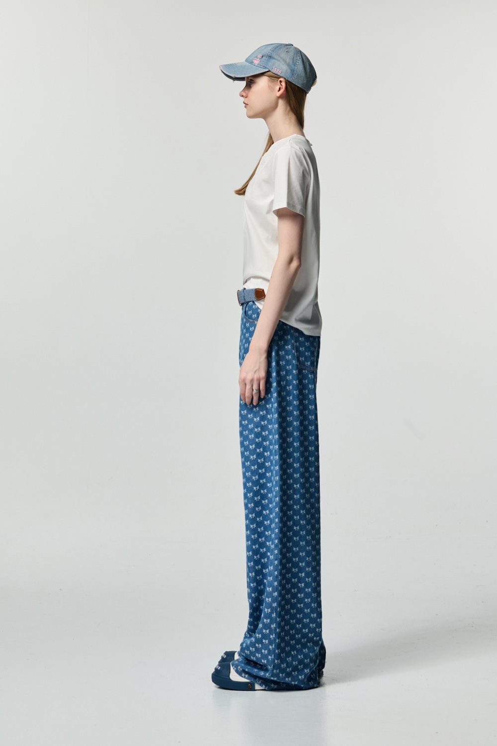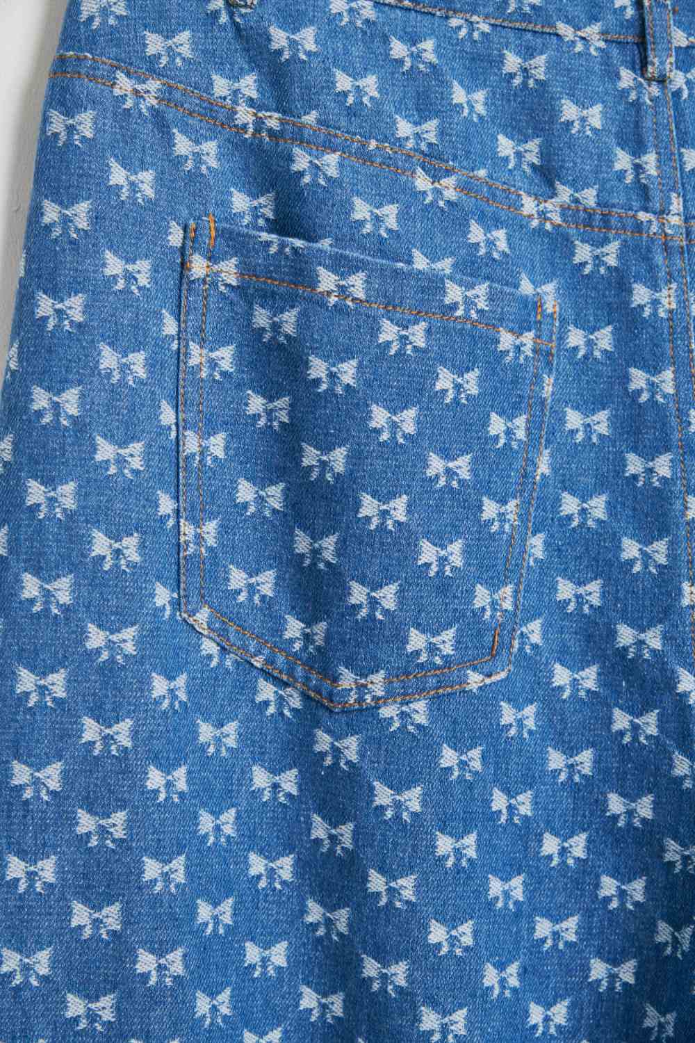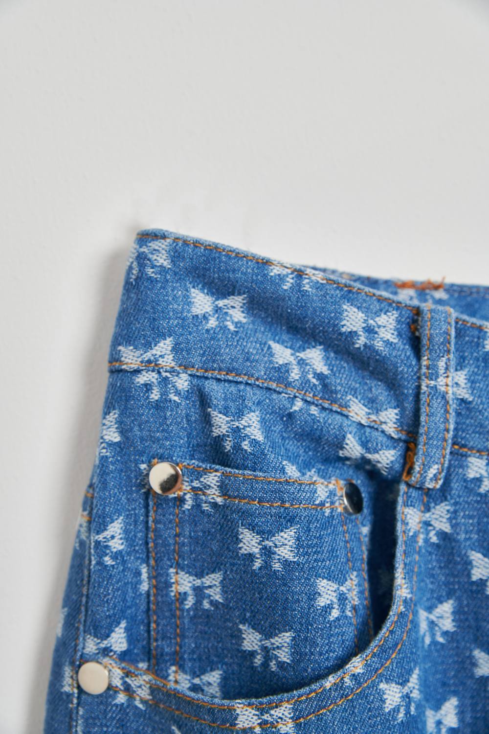 丹寧俏麗滿版蝴蝶結牛仔長褲