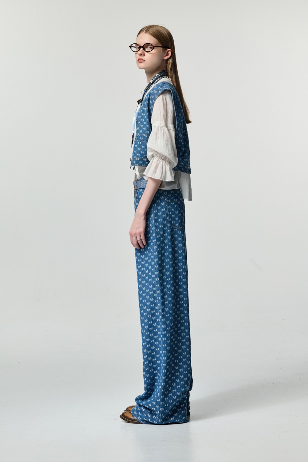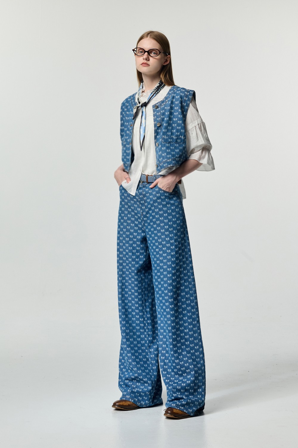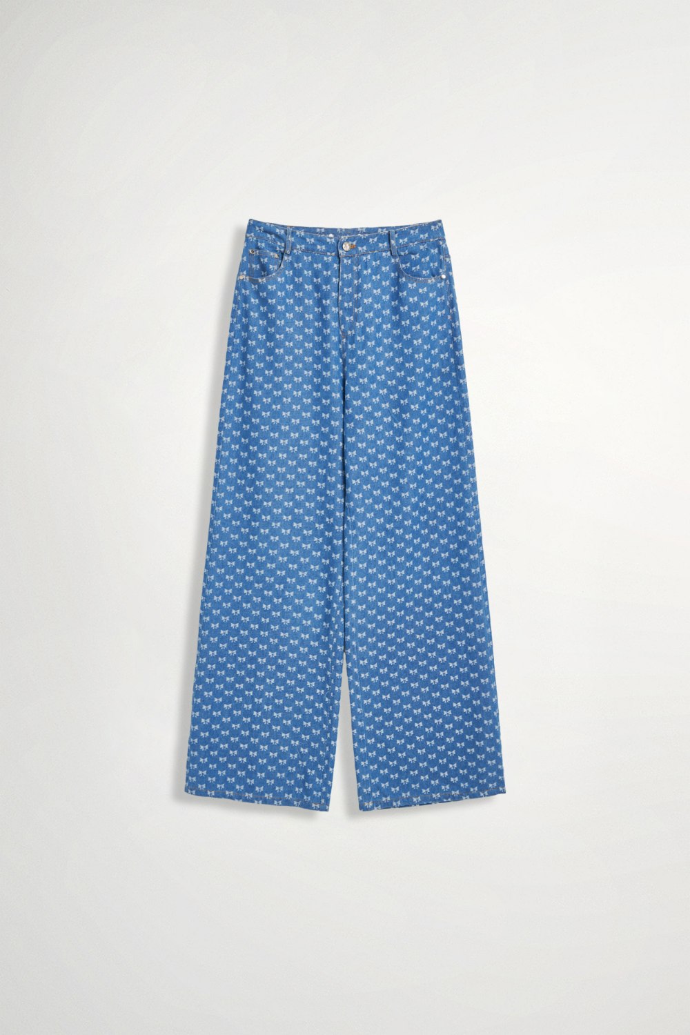 丹寧俏麗滿版蝴蝶結牛仔長褲