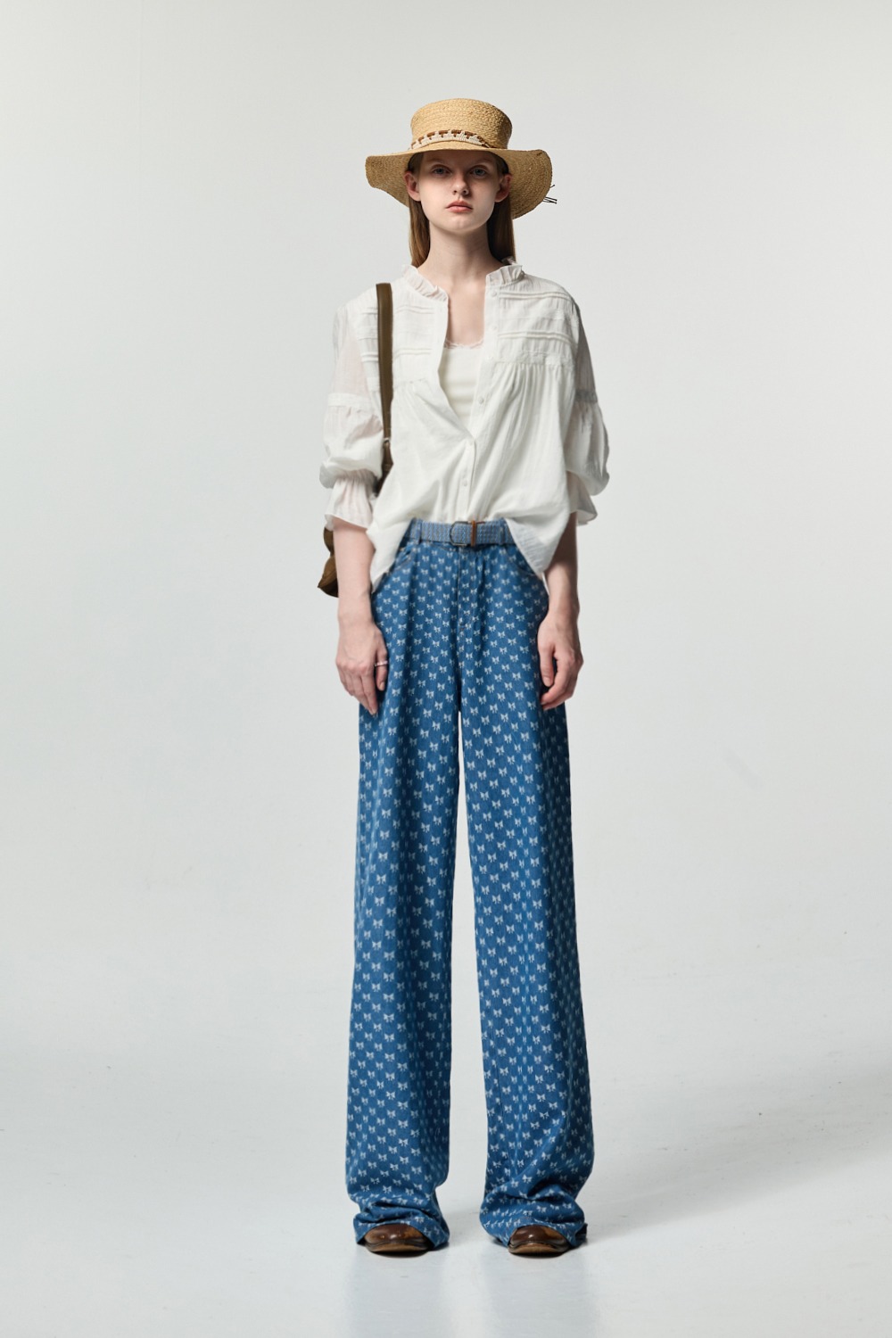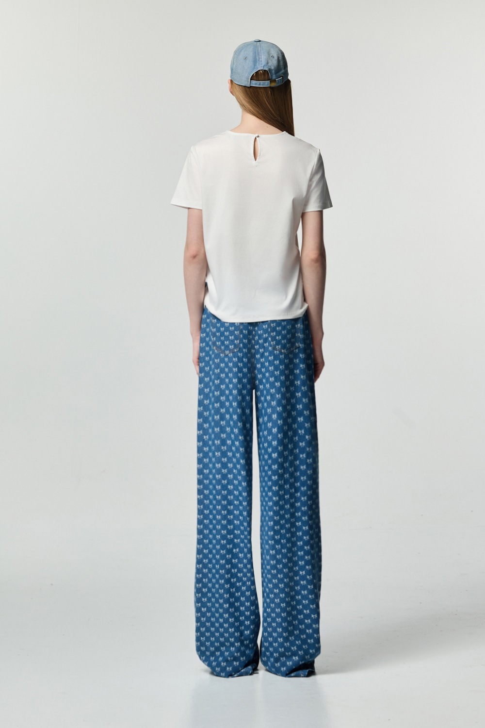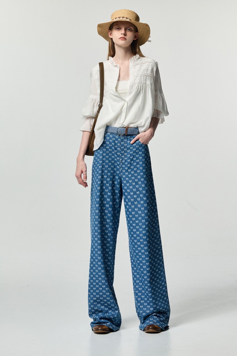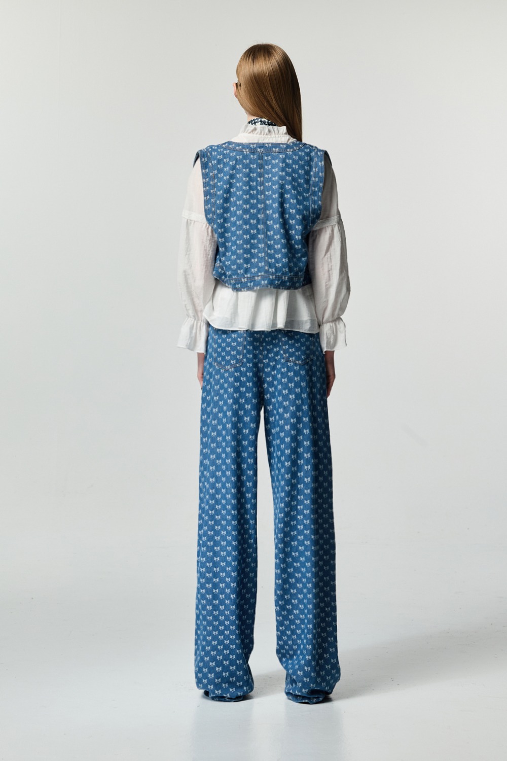丹寧俏麗滿版蝴蝶結牛仔長褲