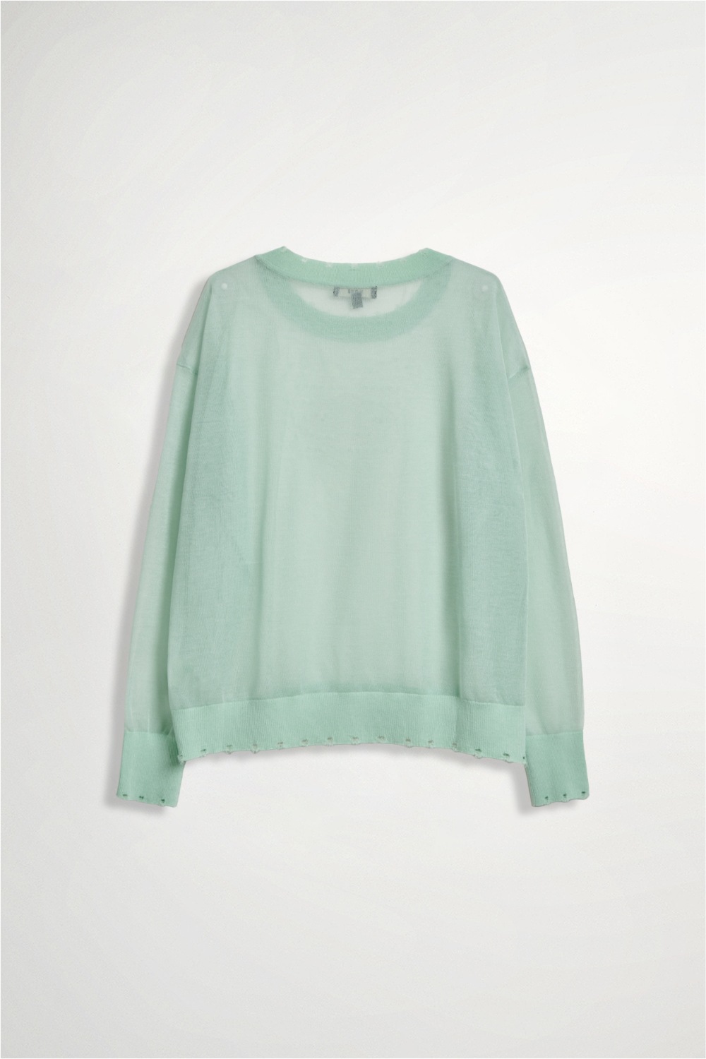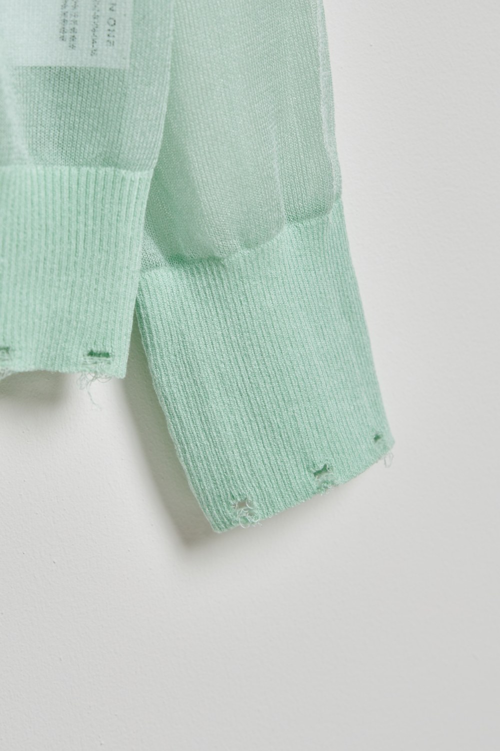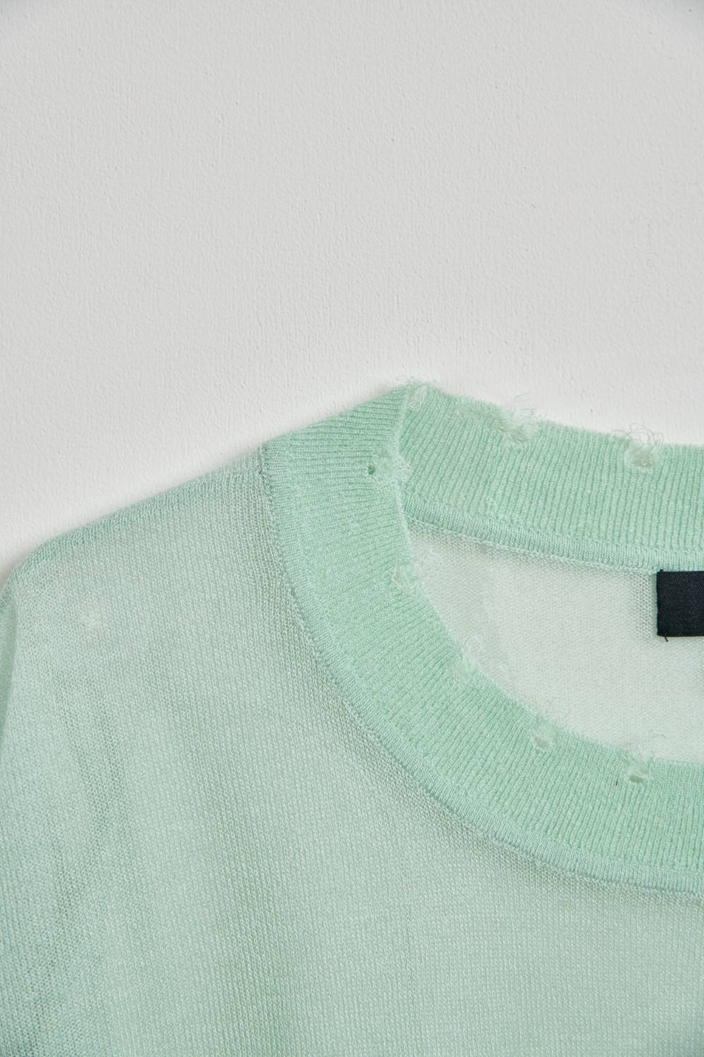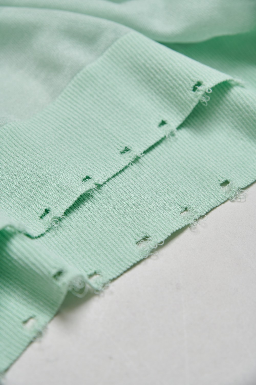 柔和薄荷綠刷破邊透膚針織上衣 - 酪梨綠色, 36