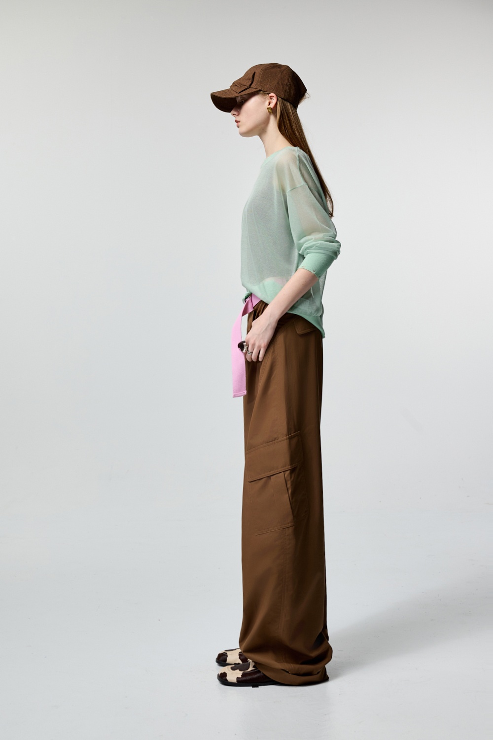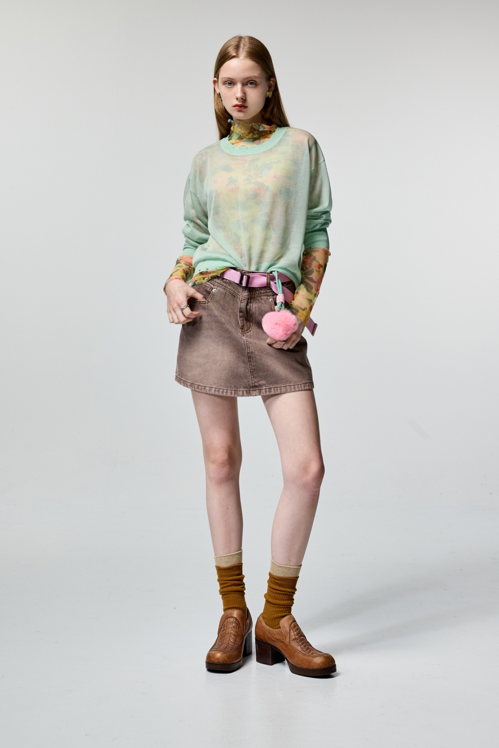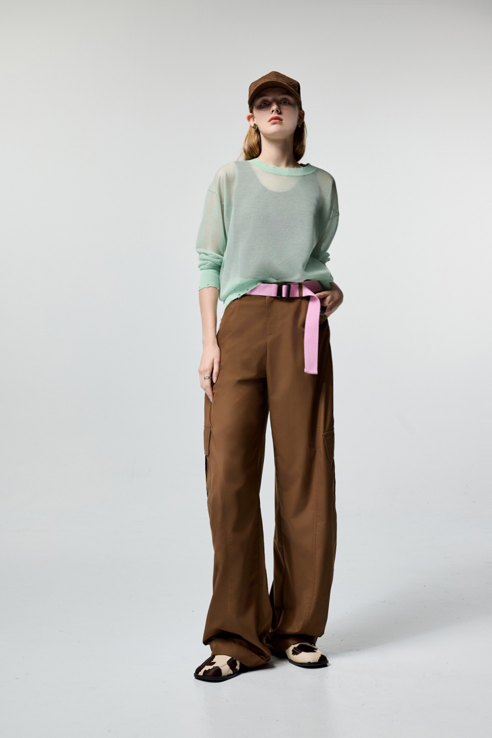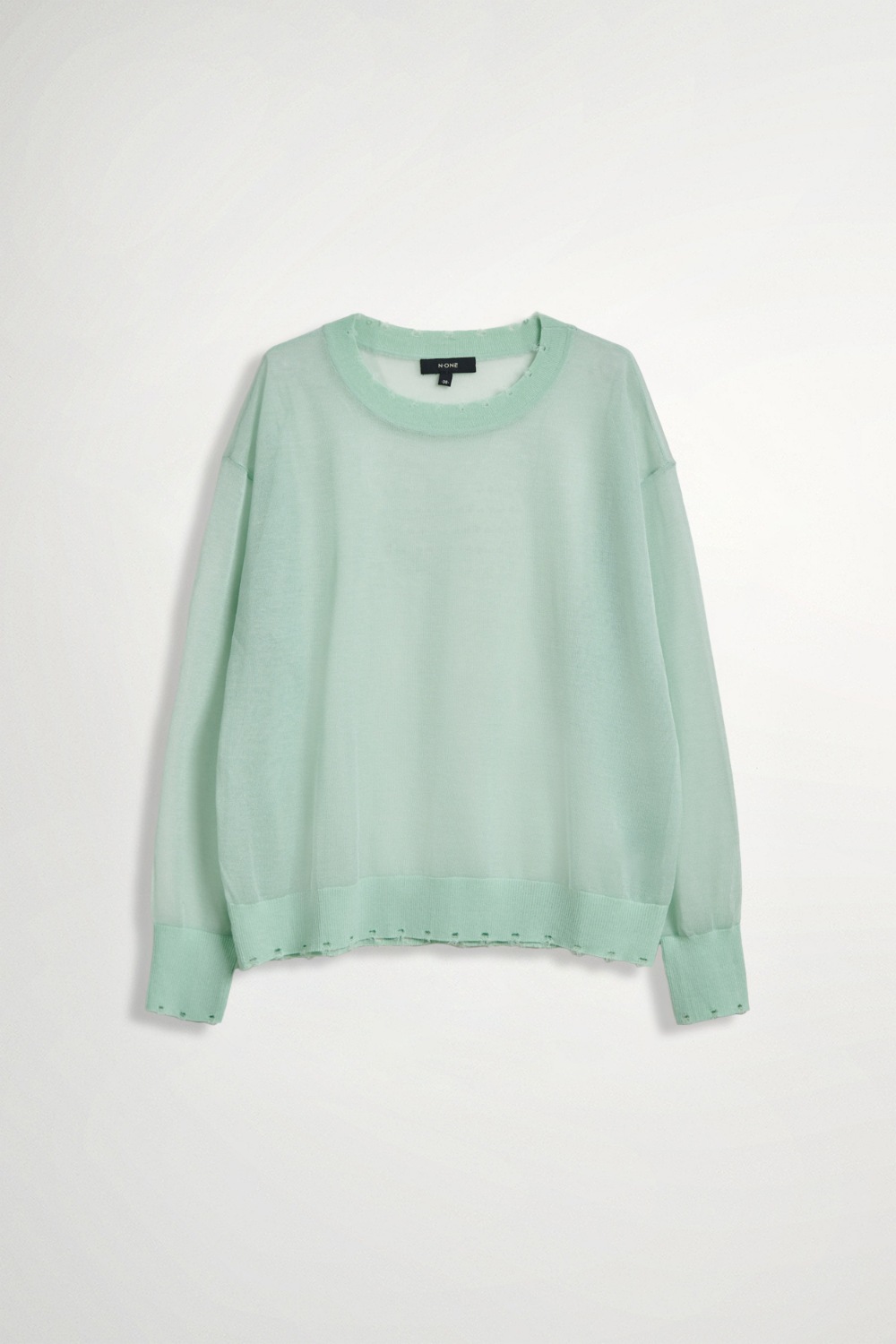 柔和薄荷綠刷破邊透膚針織上衣 - 酪梨綠色, 36