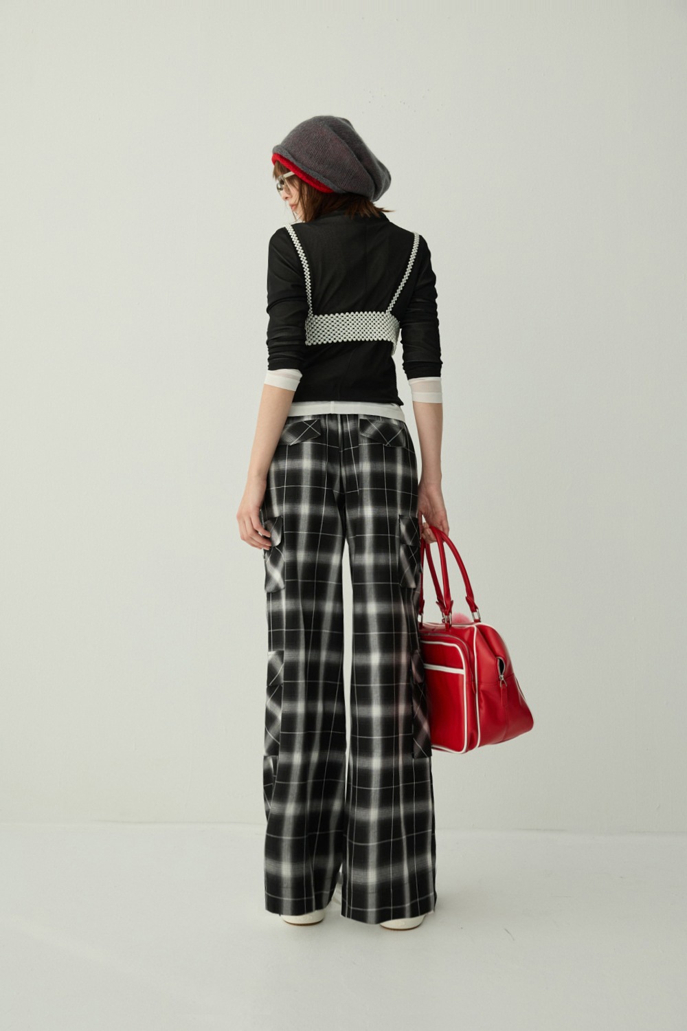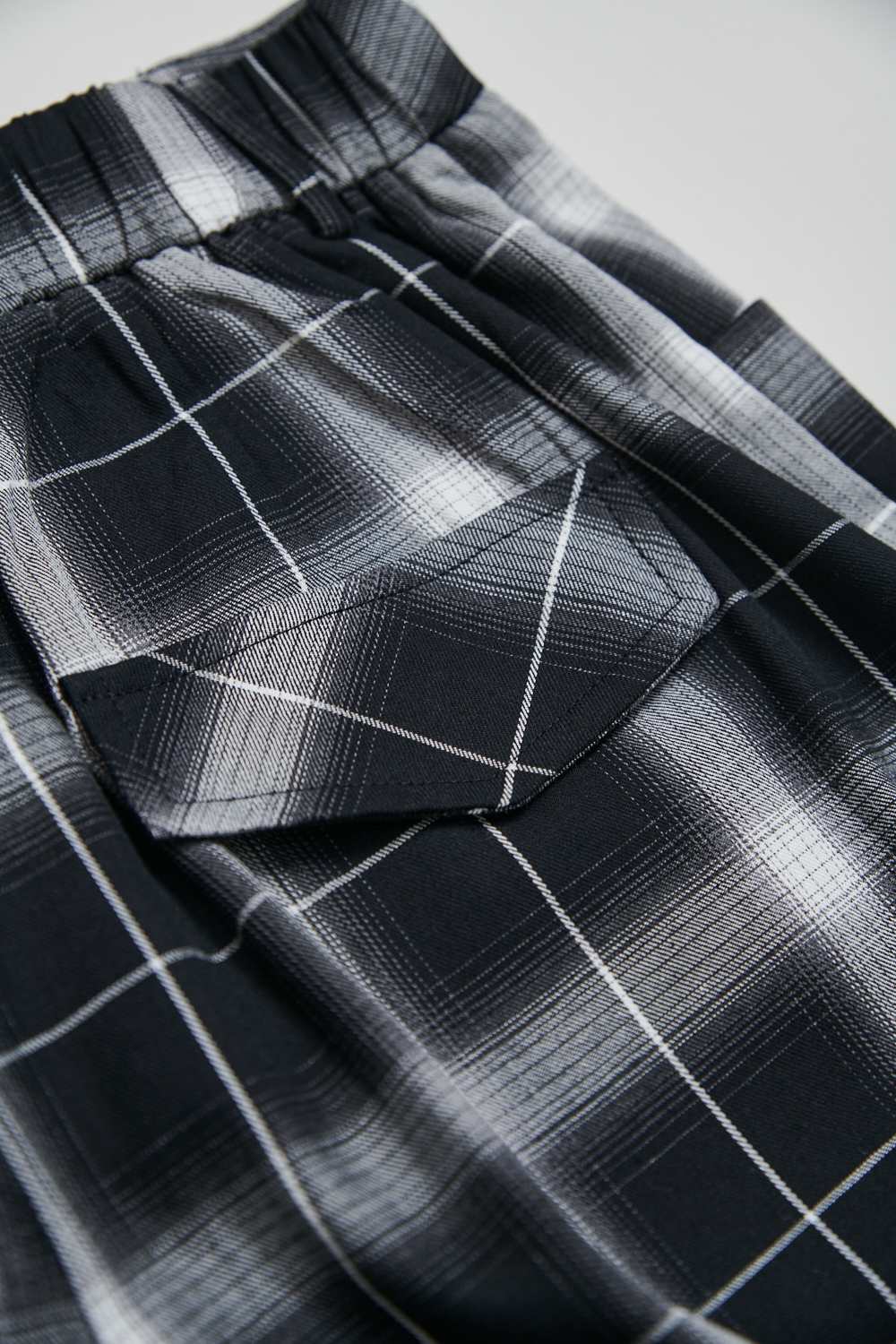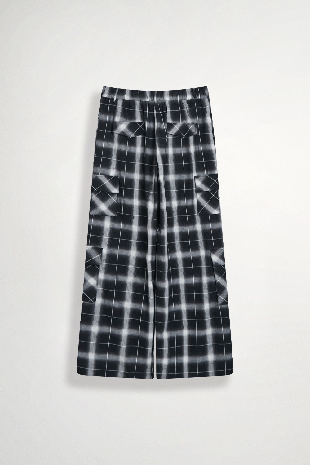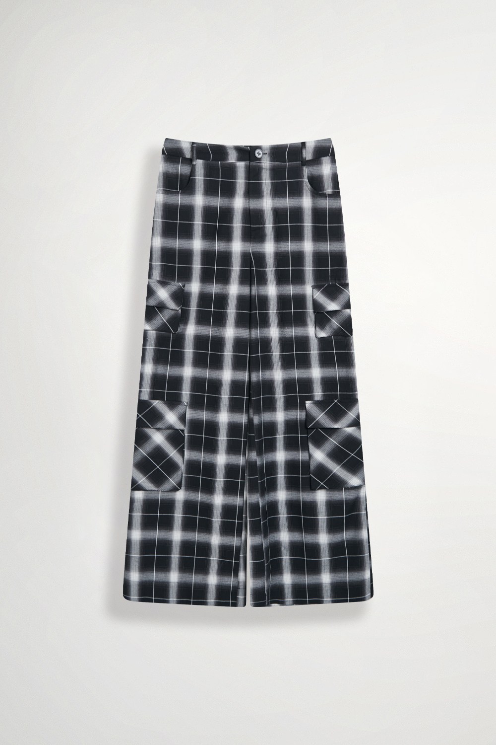 格紋元素多口袋格紋工裝寬褲 - 黑白格子, 38