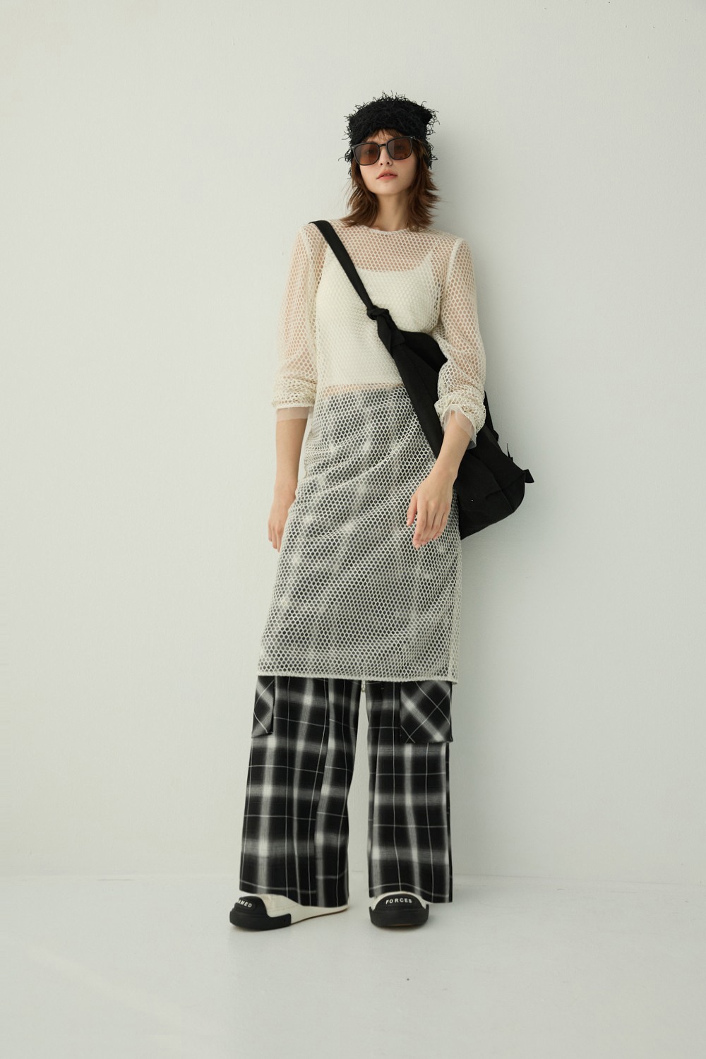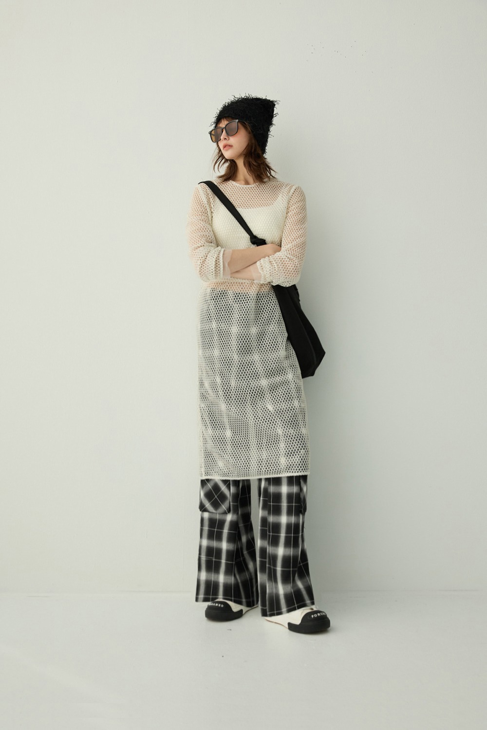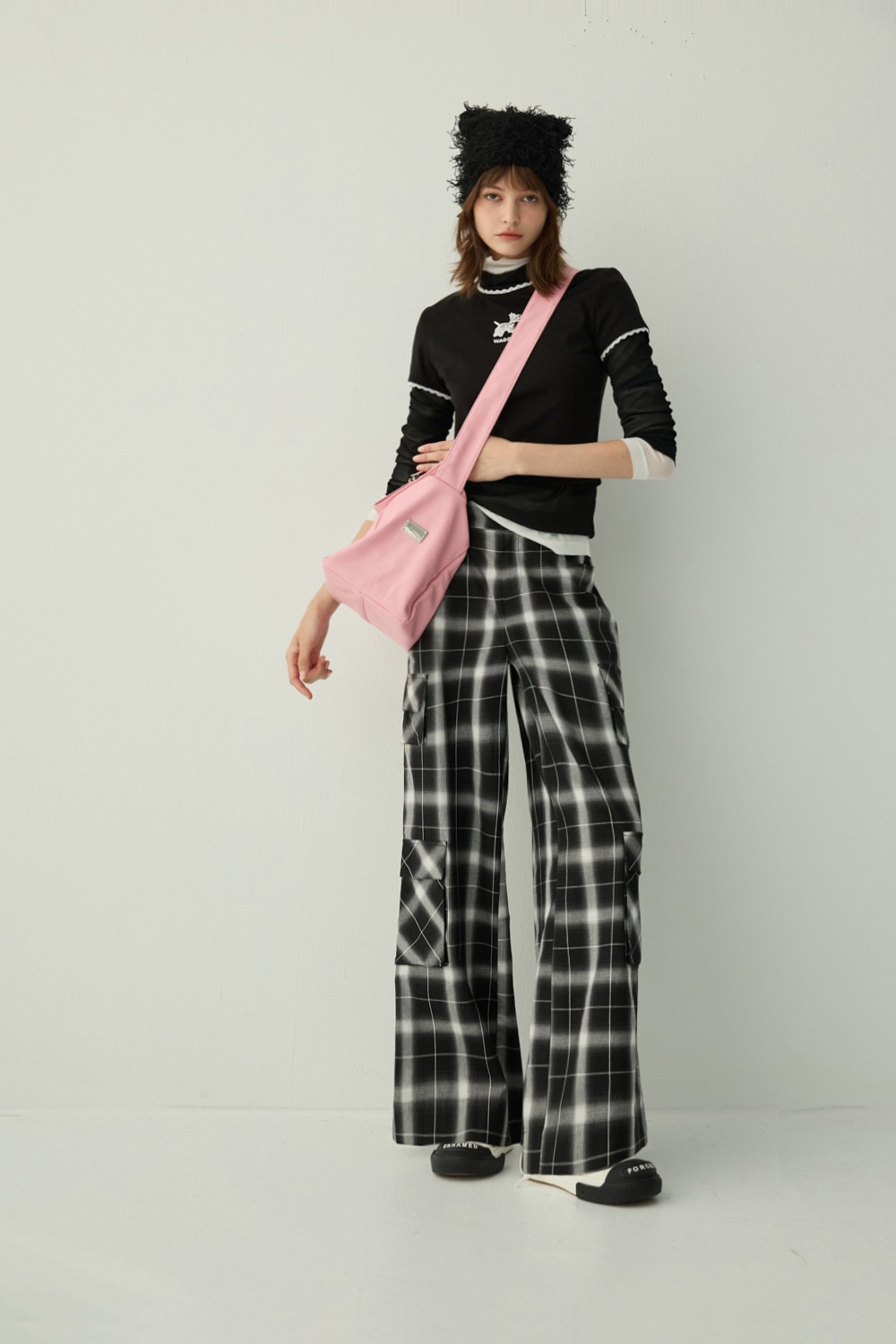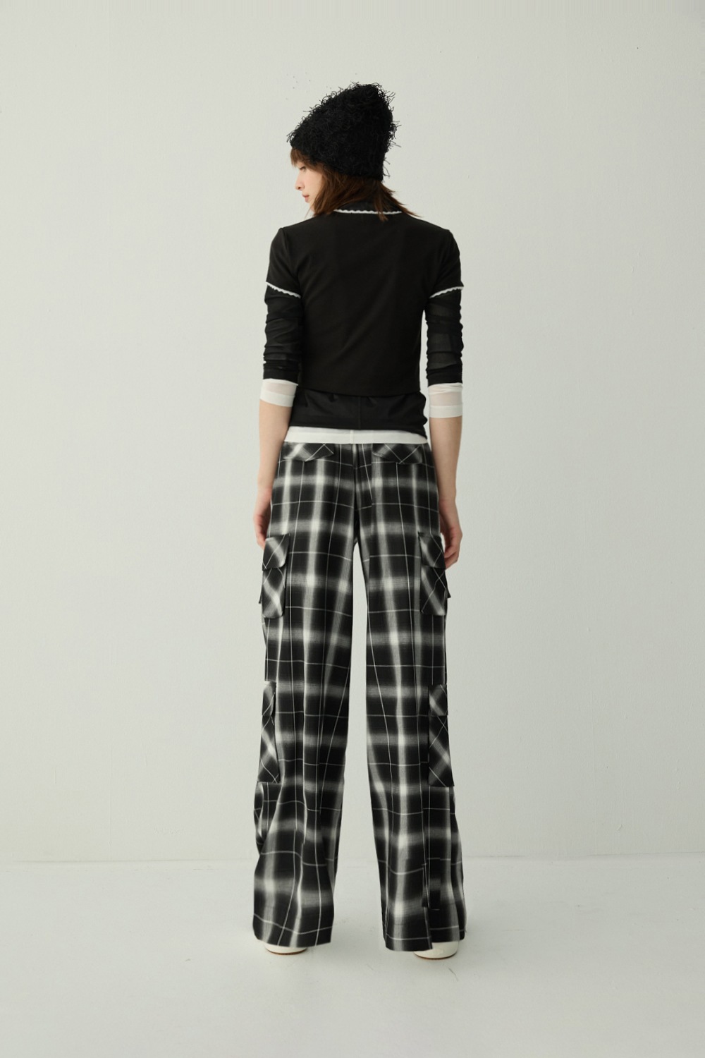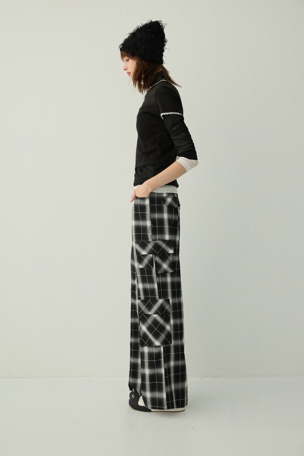 格紋元素多口袋格紋工裝寬褲 - 黑白格子, 38
