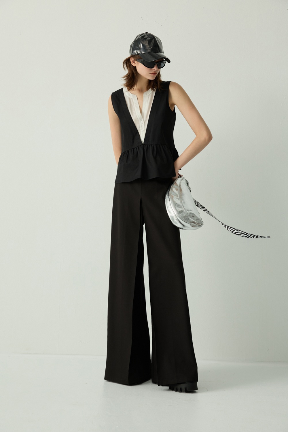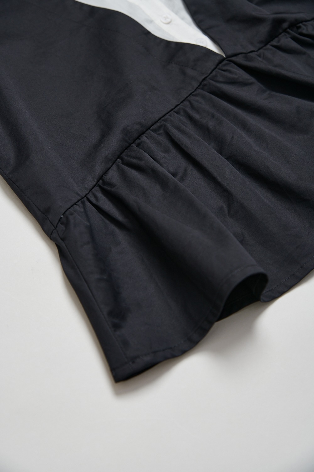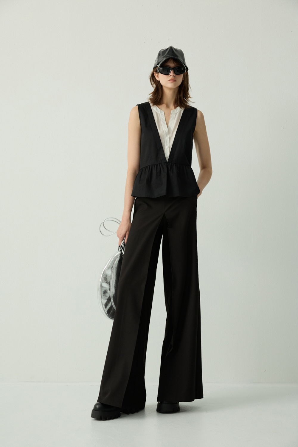 摩登都會感配色V領簡約上衣 - 神祕純黑, 38