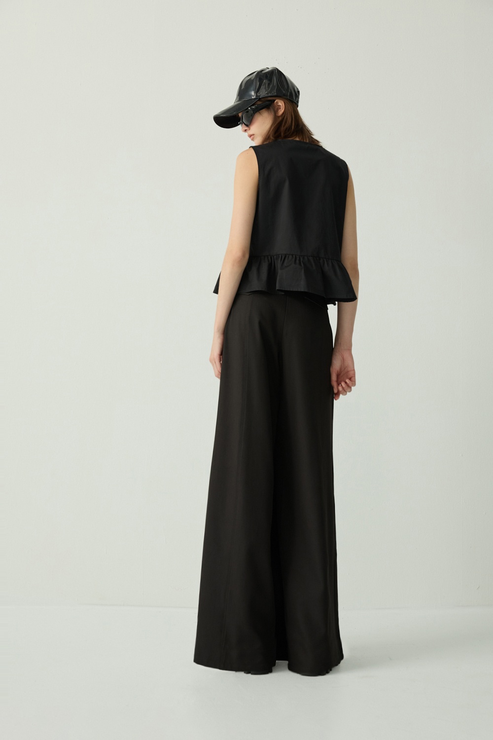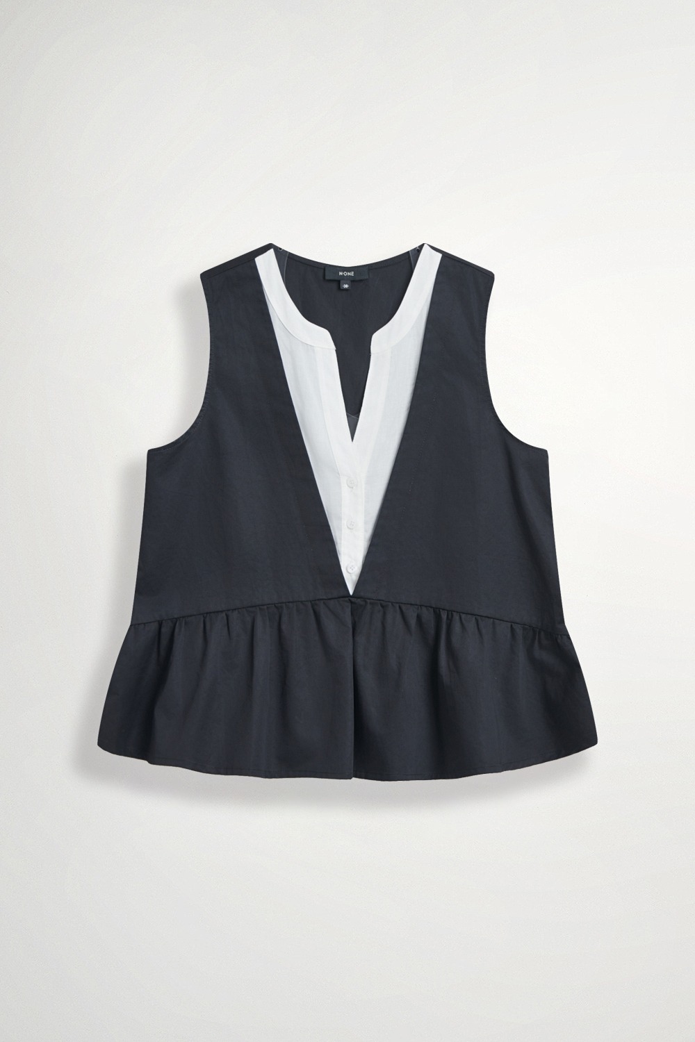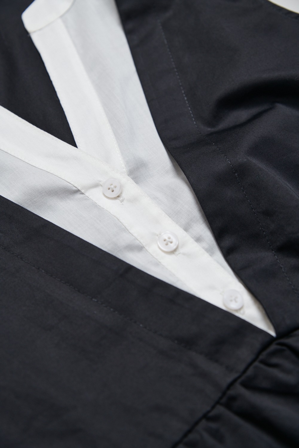 摩登都會感配色V領簡約上衣 - 神祕純黑, 38