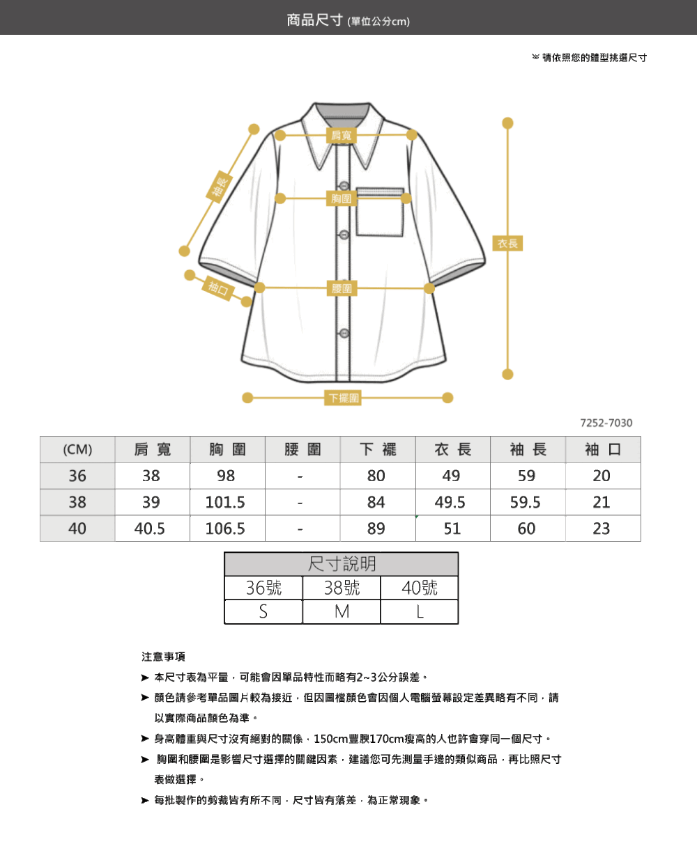 ✔主布:50%棉質 43%聚酯纖維 7%彈性纖維
