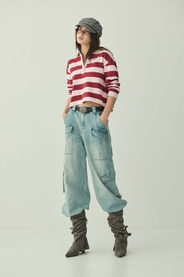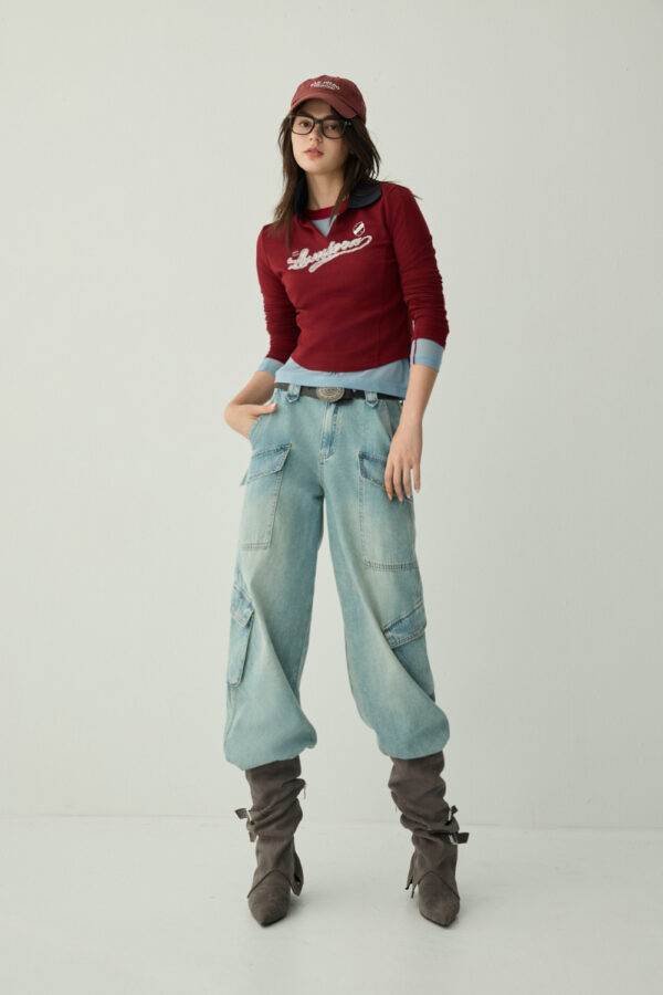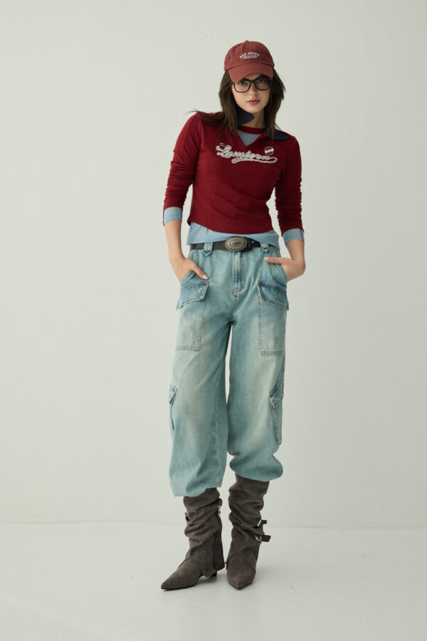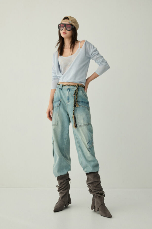 帥氣牛仔工裝牛仔褲 - 清新蔚藍, 36