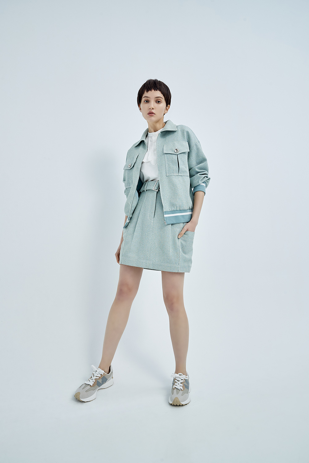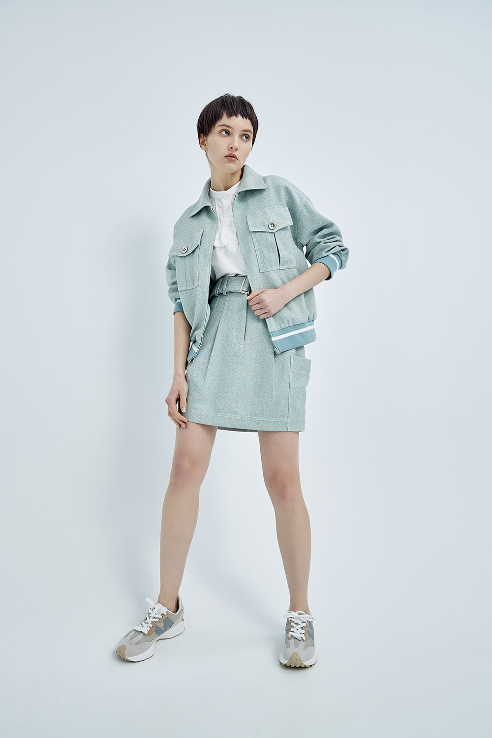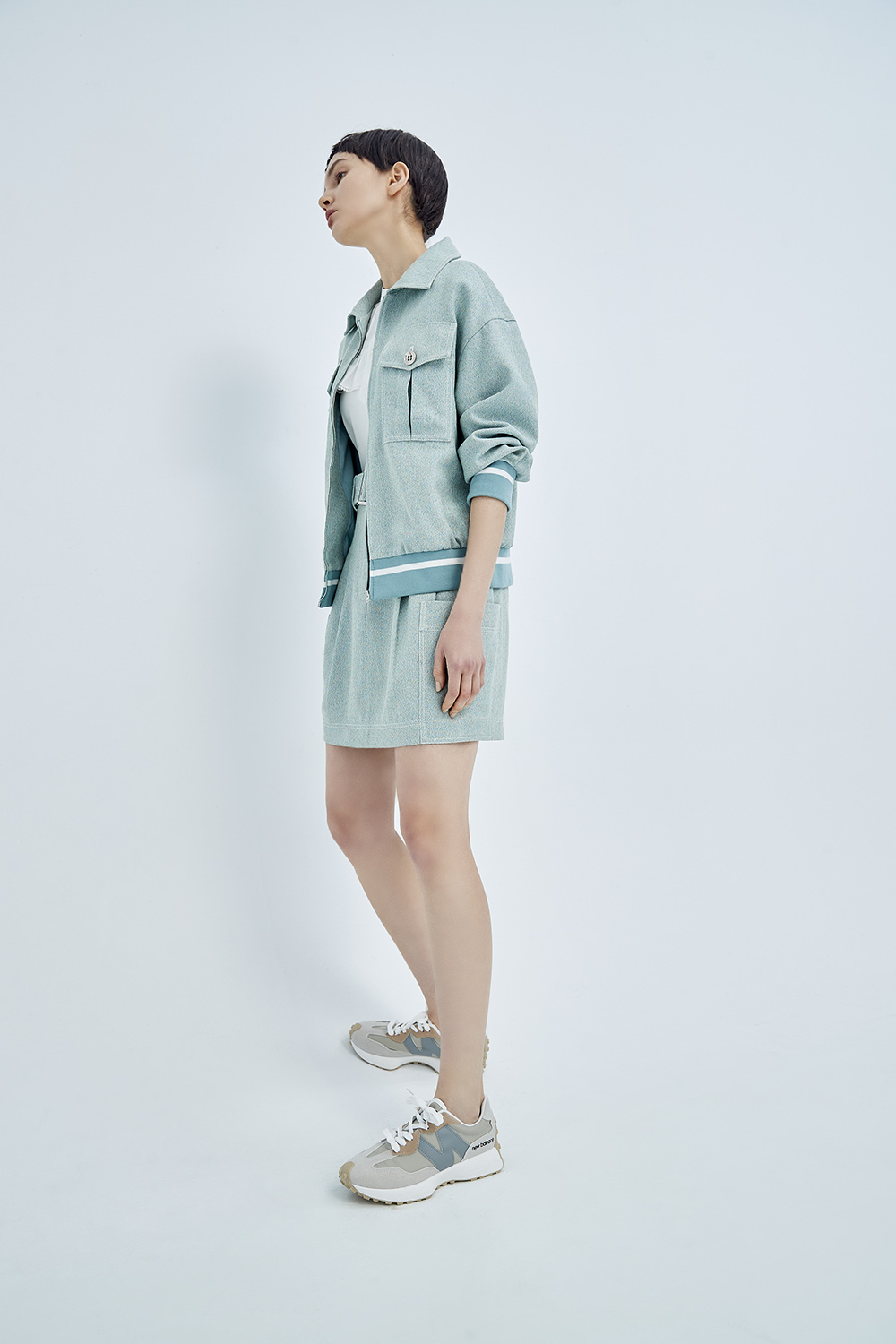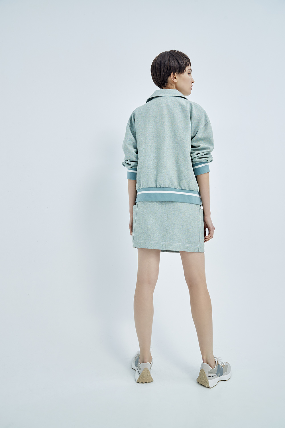 隨著裙襬揚起灰綠的輕柔 成為春日裡的一抹清新。