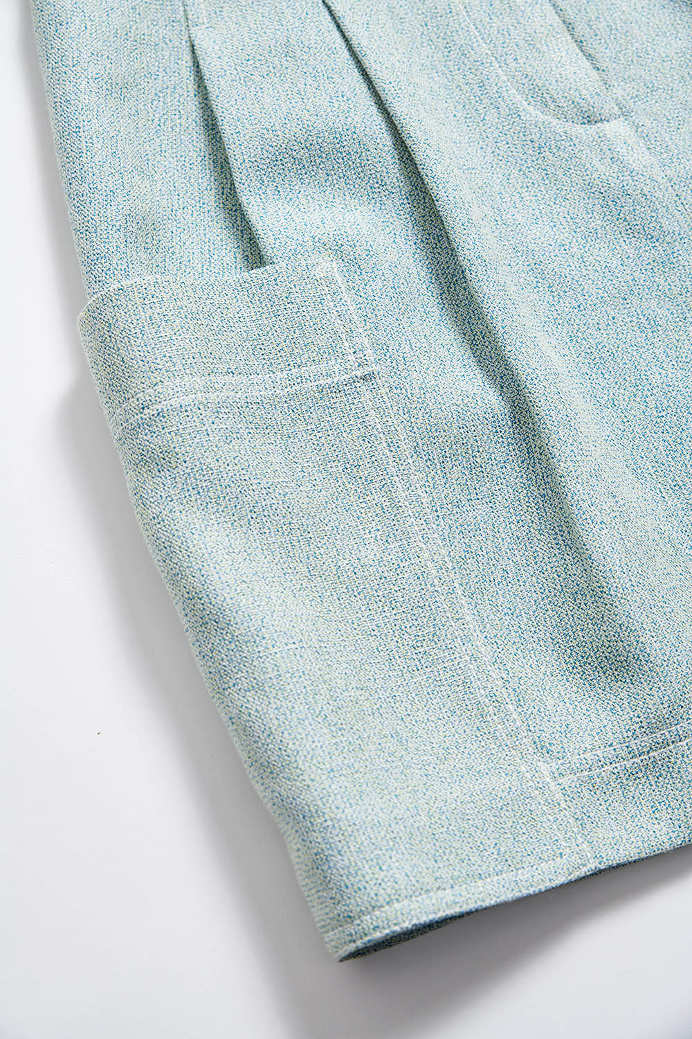 淡暖清新花呢雙口袋打褶直筒短裙 - 平靜翠綠, S