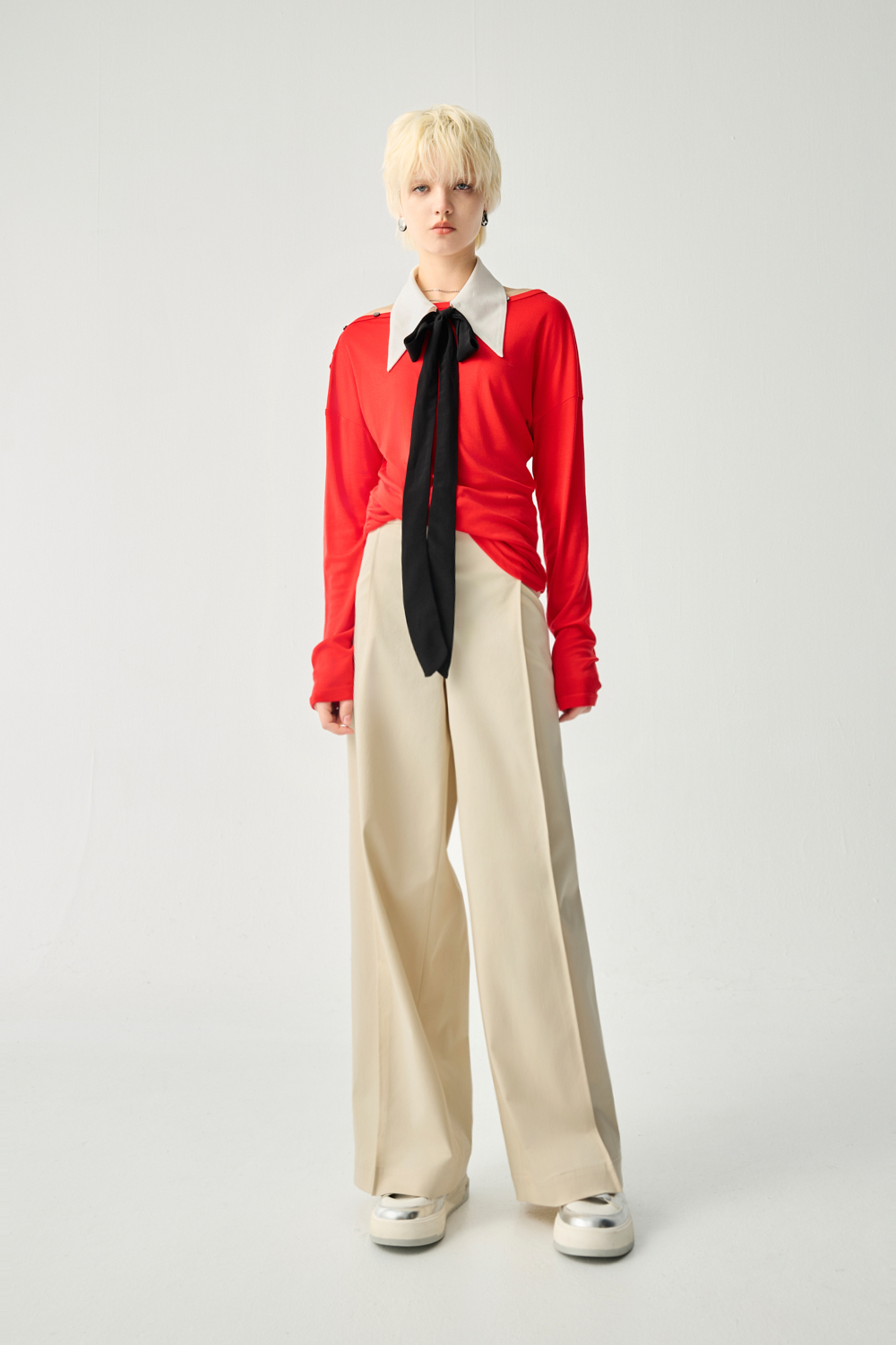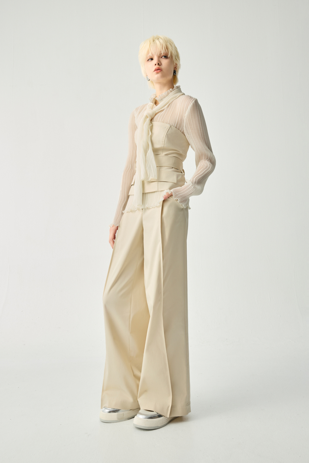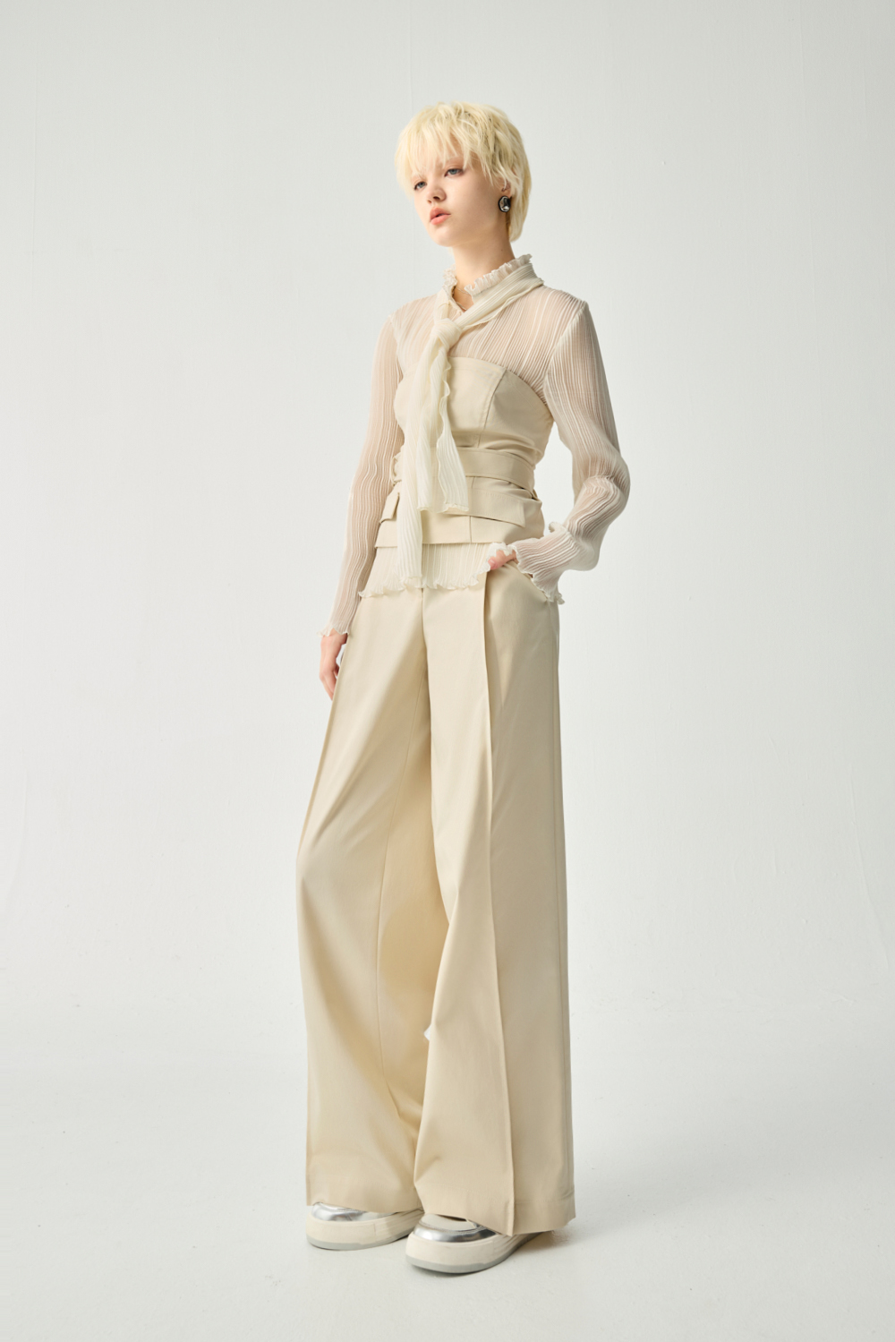 奶fufu素面打摺寬褲