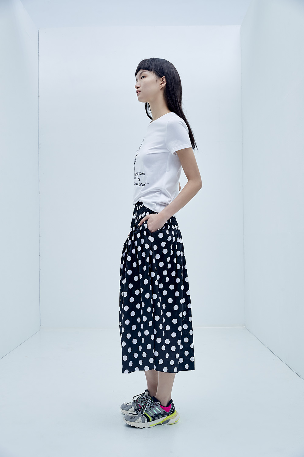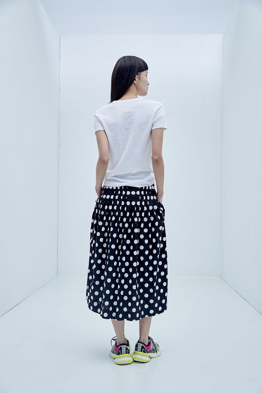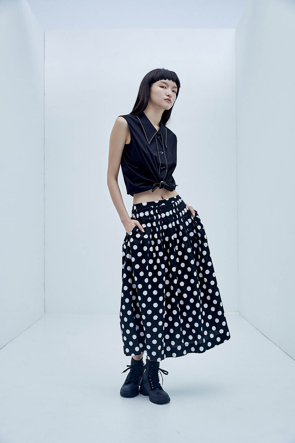 ◈一顆顆如月光般皎潔的波點落在暮黑之上,讓空氣中瀰漫著一絲復古、可愛的味道,搭上純棉織造而成的輕薄飄感隨著徐徐微風迎面吹來,美好便隨之流洩,更描繪出專屬春夏的自在想像。