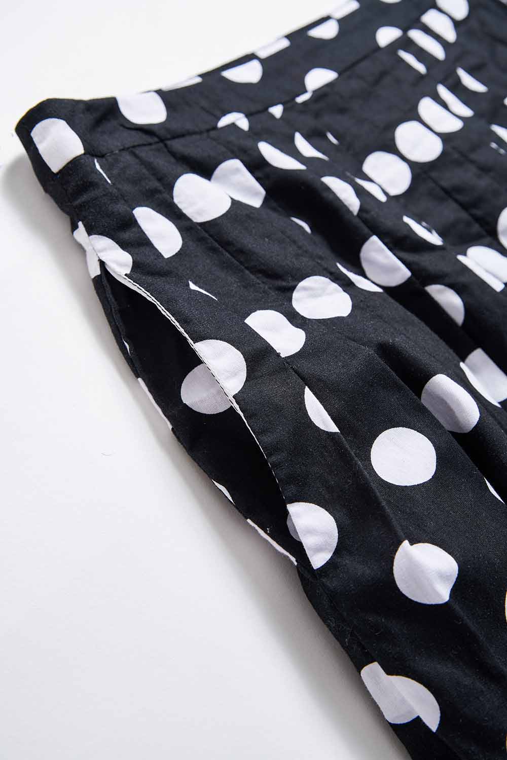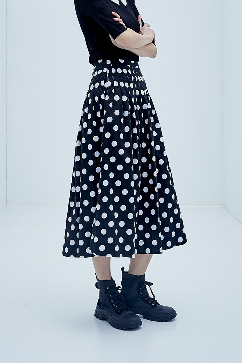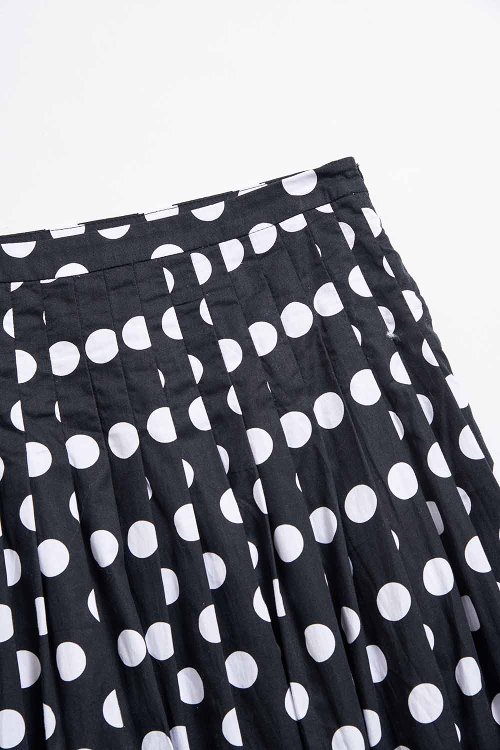 搖搖姿態波點細壓褶飄逸中長裙 - 神祕純黑, S