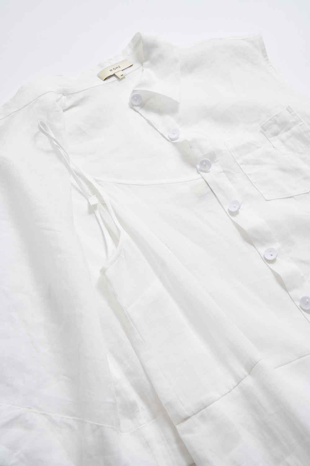 ◈棉麻的微挺輕薄覆蓋著肌膚,賦予妳一整個夏天的涼意,微透出的肌底詮釋著一種朦朧感,配上翻領設計讓頸部能輕貼著領片順延成自然線條,連接著排釦設計方便穿脫。