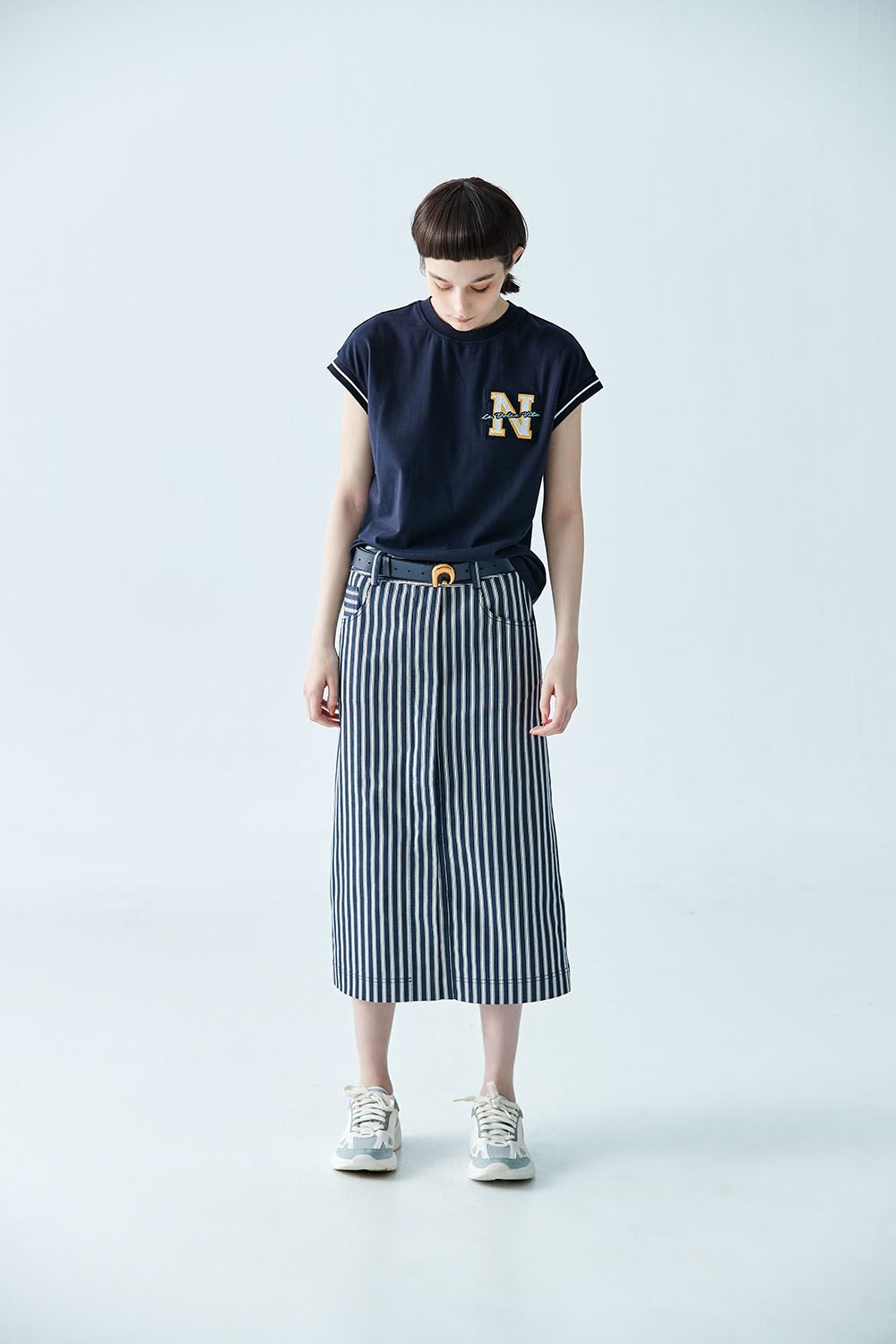 條紋跳脫簡約生活 再剪出開衩享受自由律動。