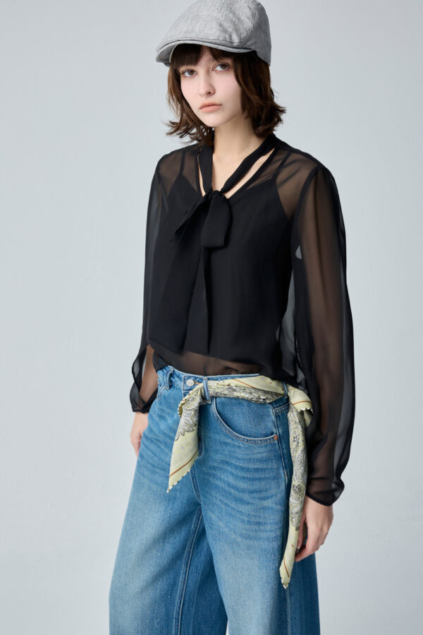黑俐落綁帶透膚長袖上衣(附活動內裡)
