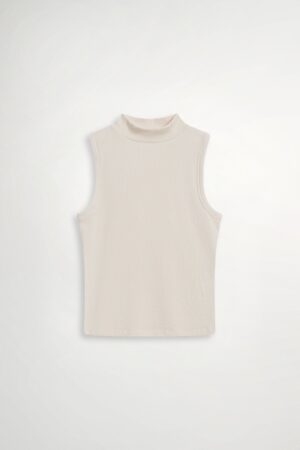 軟萌軟萌高領削肩刷毛背心 - 奶油杏色, F