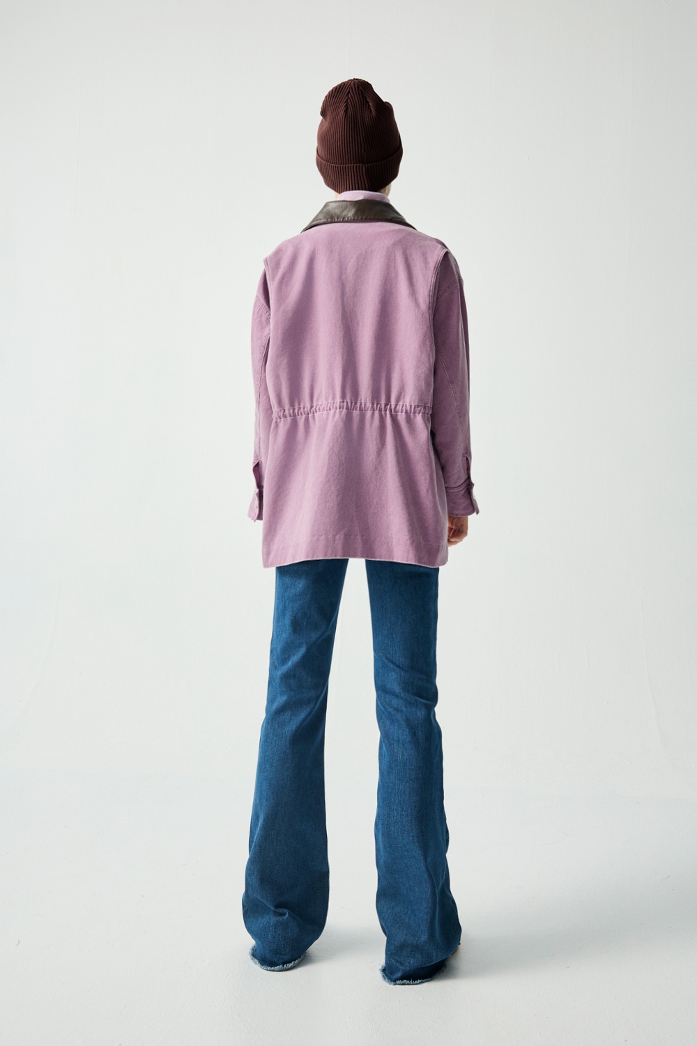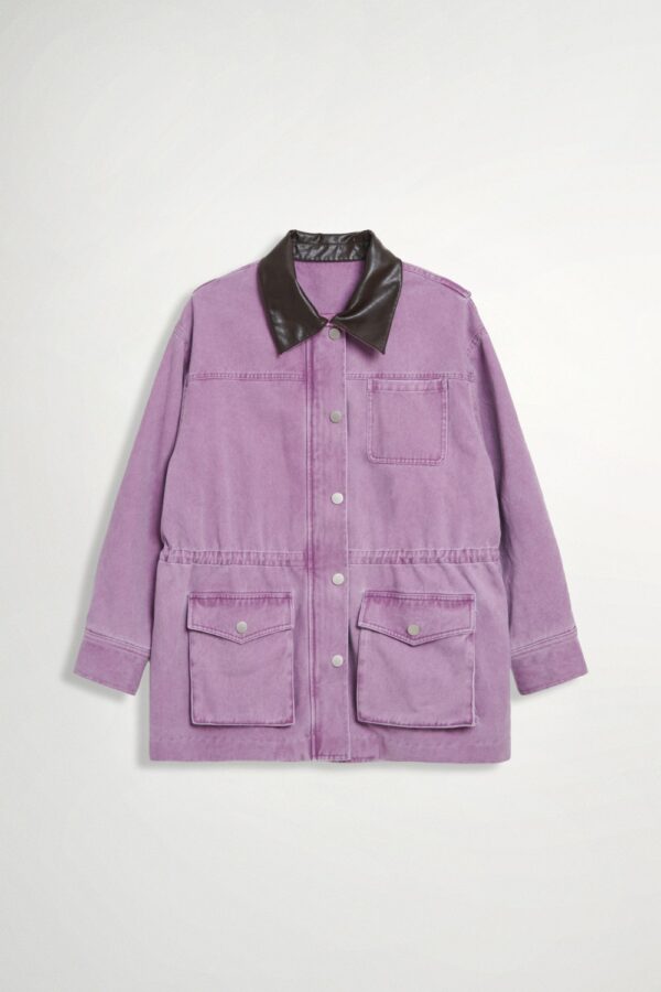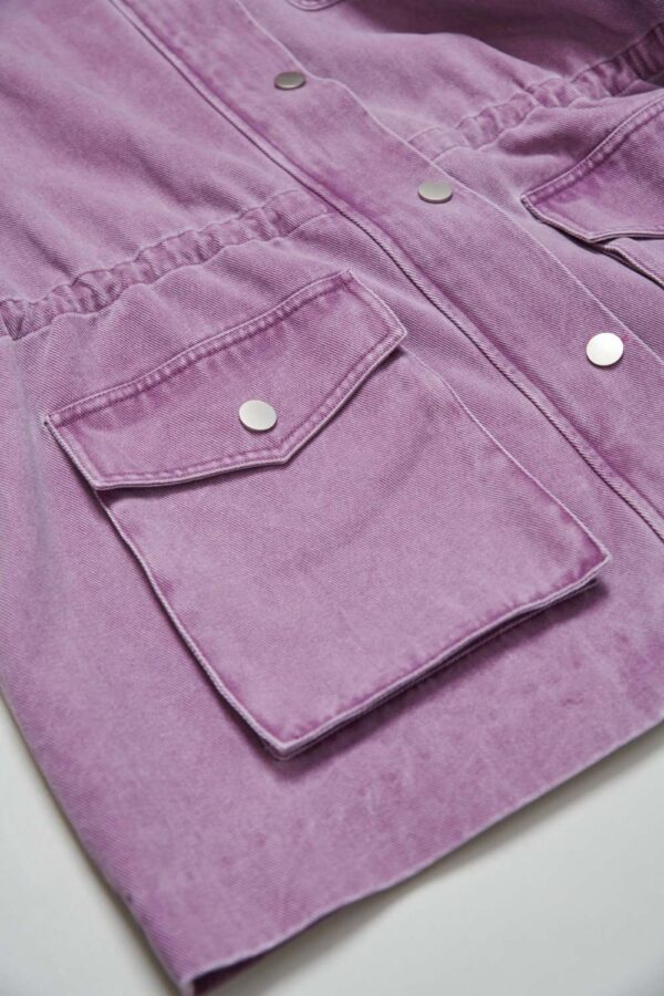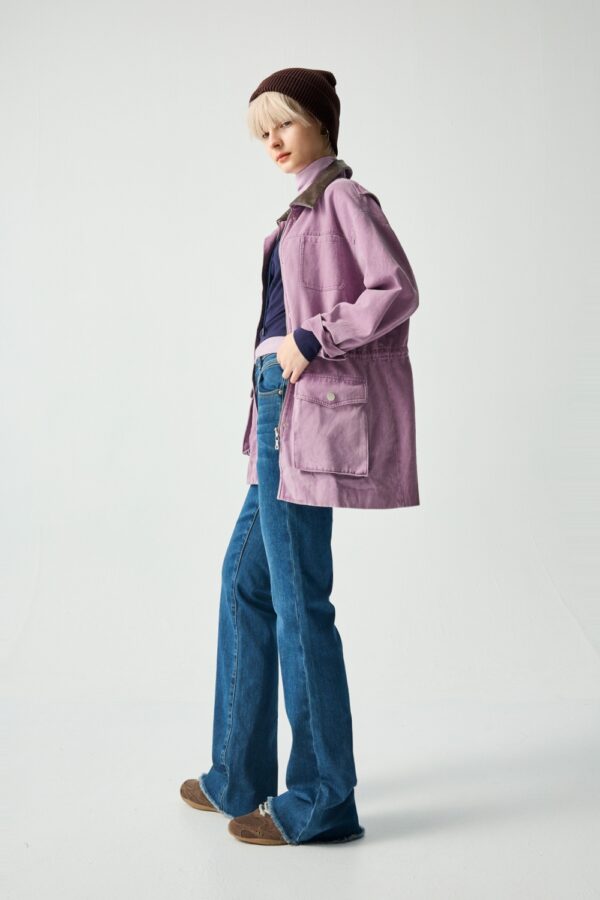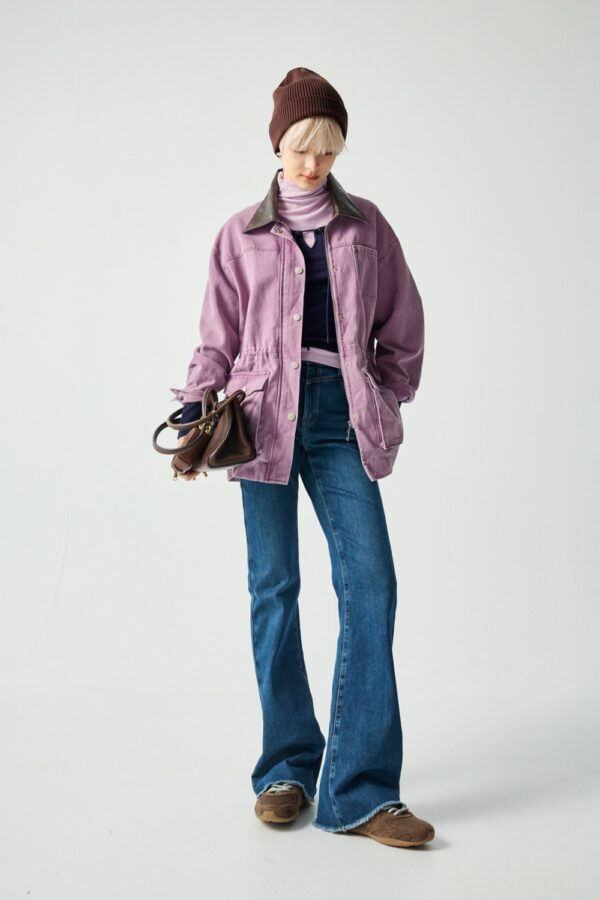紫芙蝶剪接抽繩長袖外套