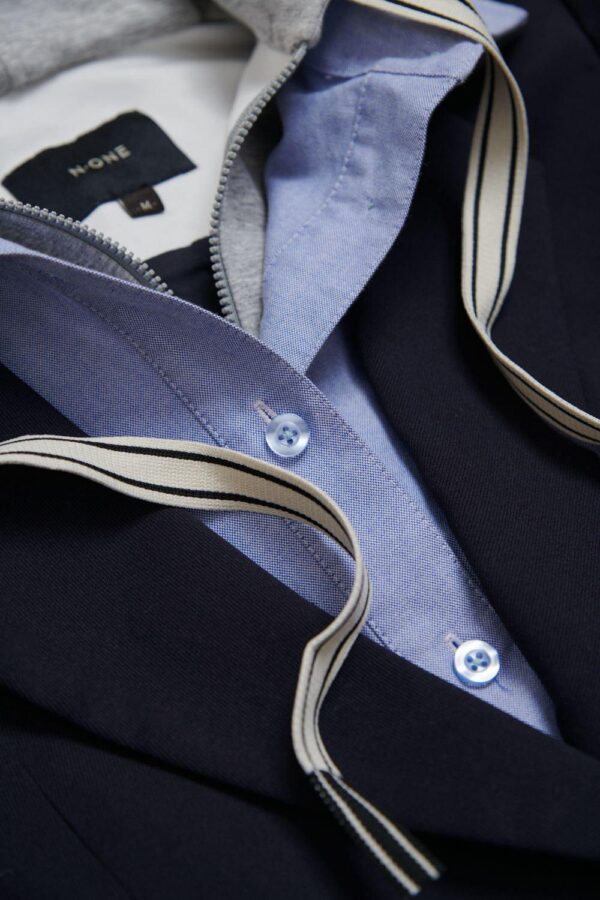穿衣低調多層次連帽西裝外套