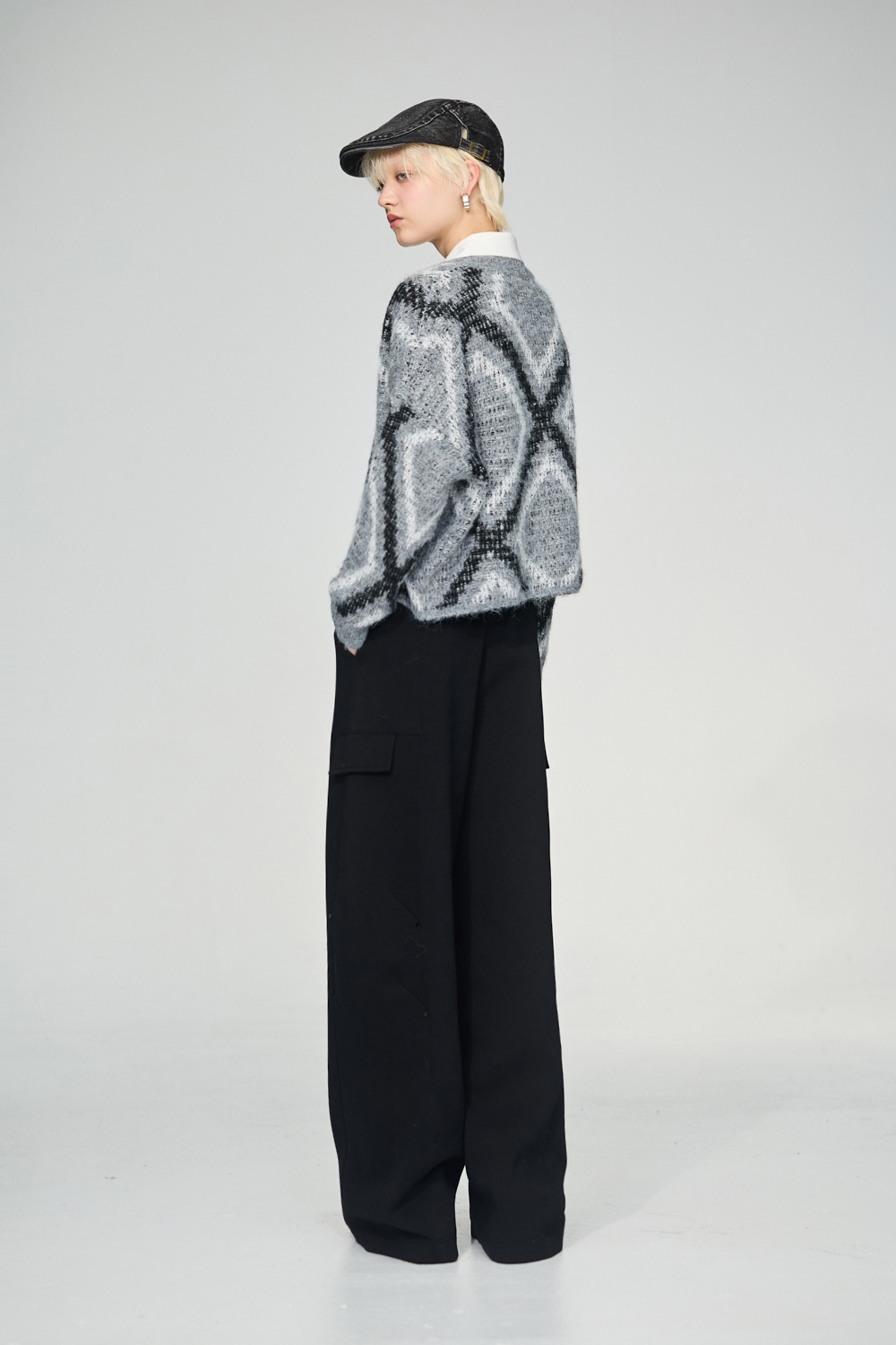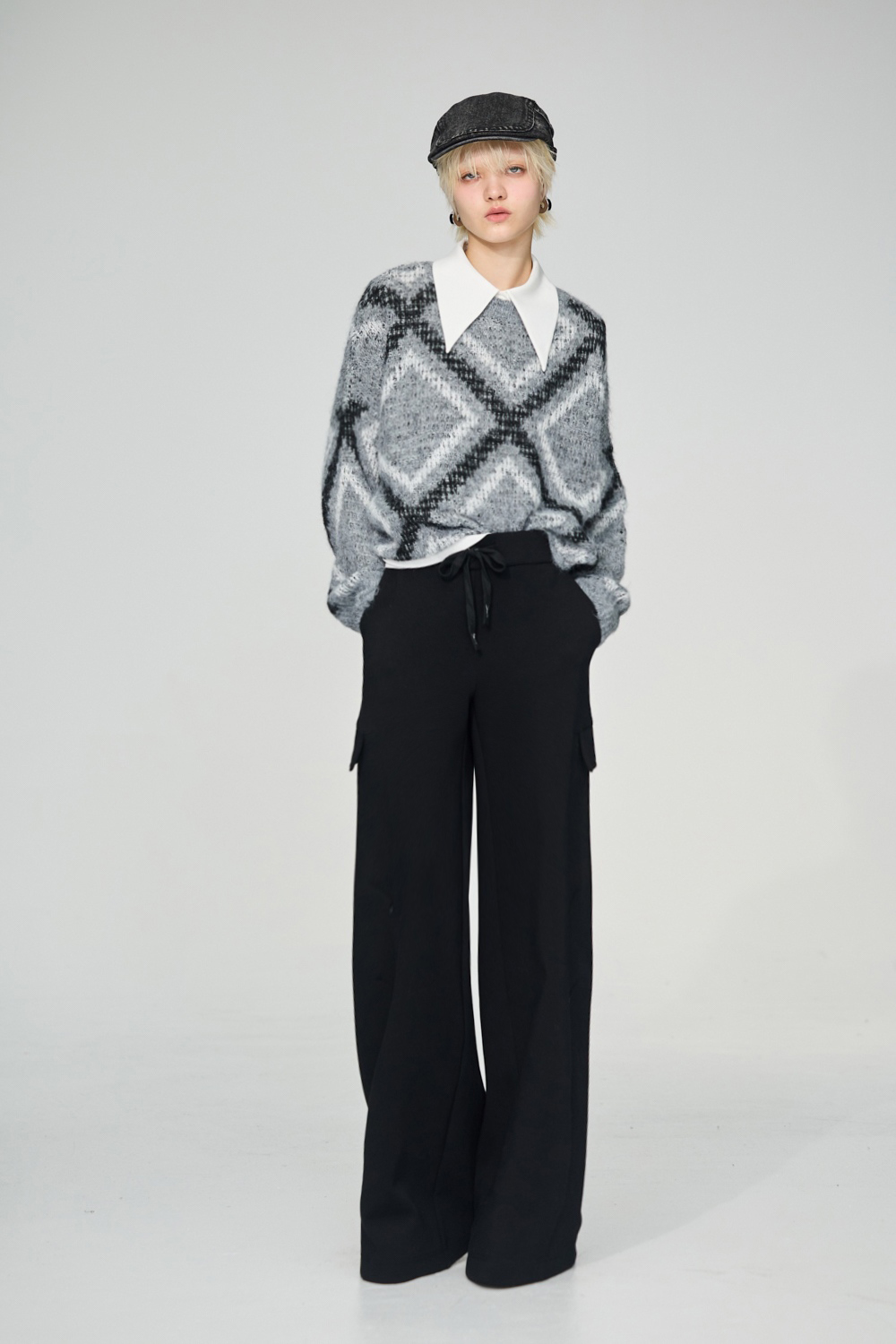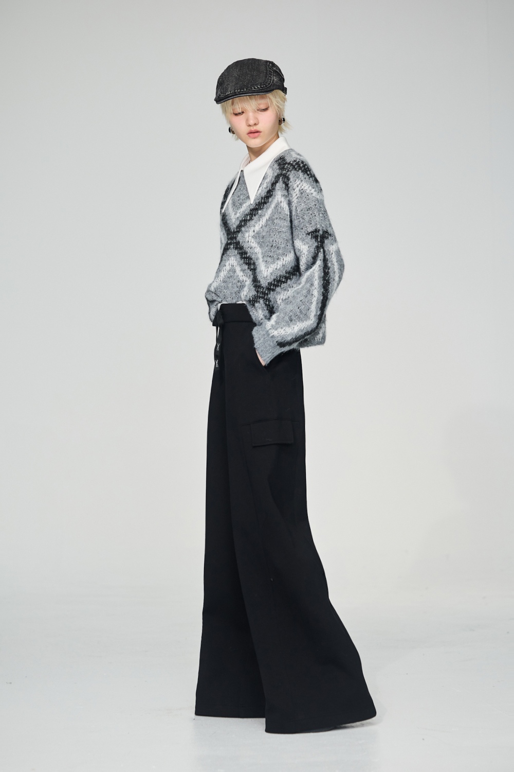 型格黑影素面剪接口袋寬褲 - 神祕純黑
