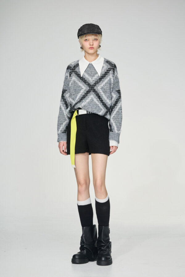 黑白之境復古落肩拼接皮背心 - 神祕純黑