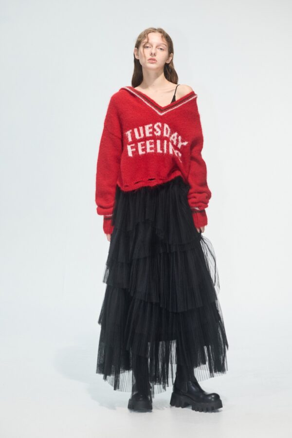顏色是很美的紅色,材質是很柔的毛衣,版型好美,非常喜歡~💕