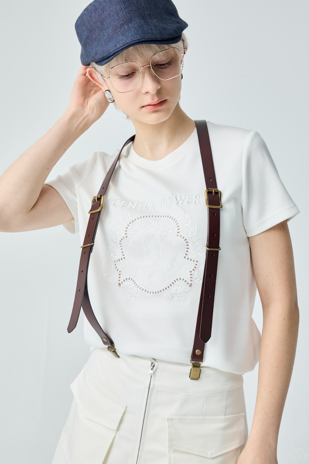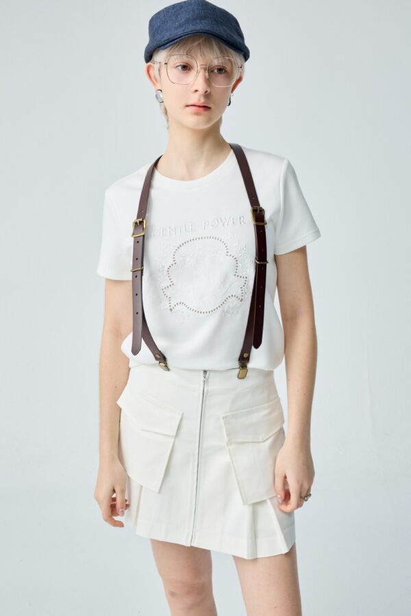 日常序曲繡花圓領短袖上衣