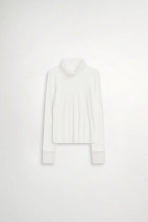 靜靜藍空配布網紗長袖上衣 - 無瑕純白, 36