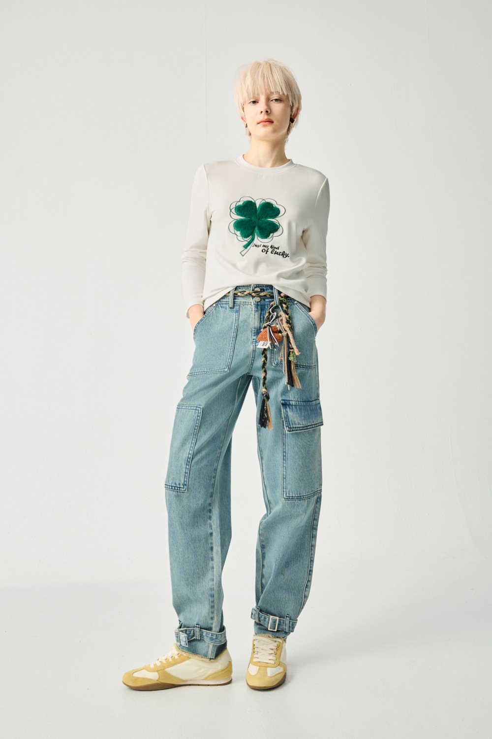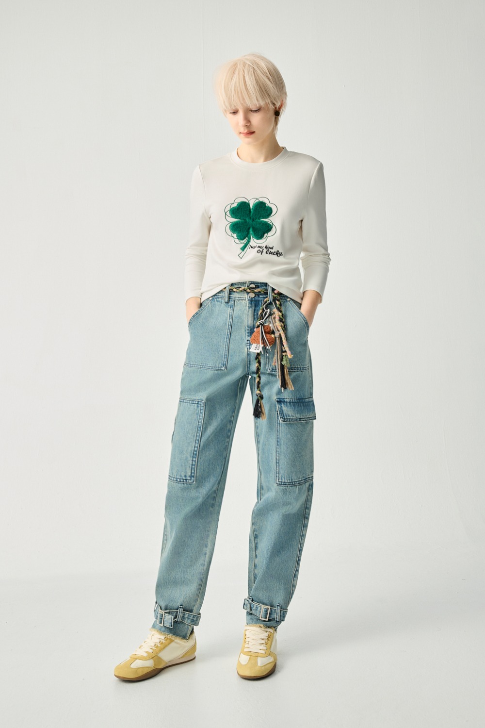 雲層邊緣絨毛刺繡長袖上衣