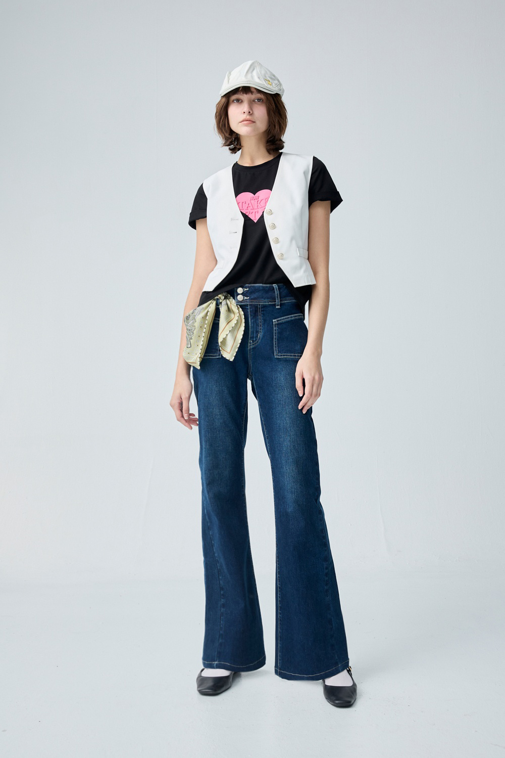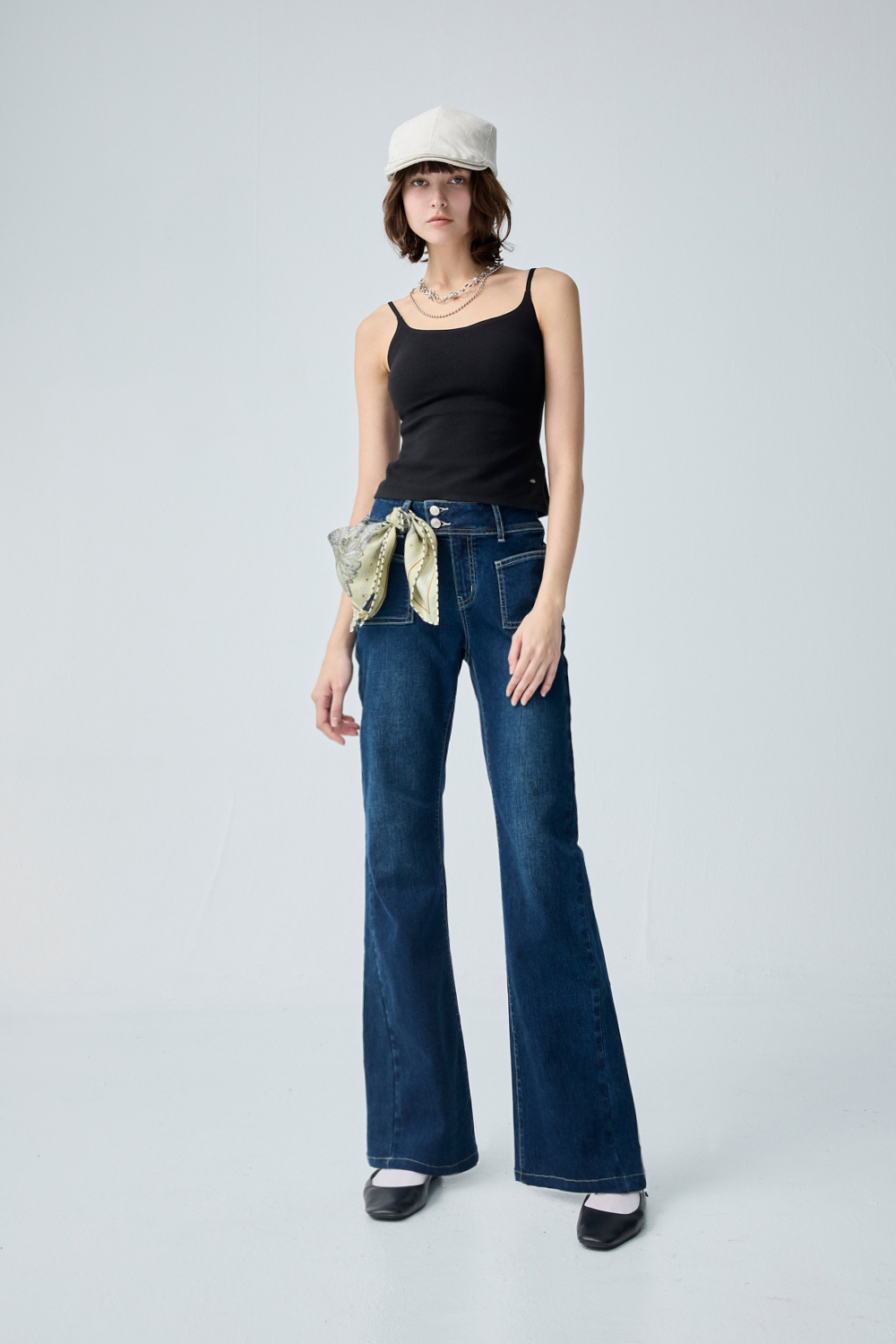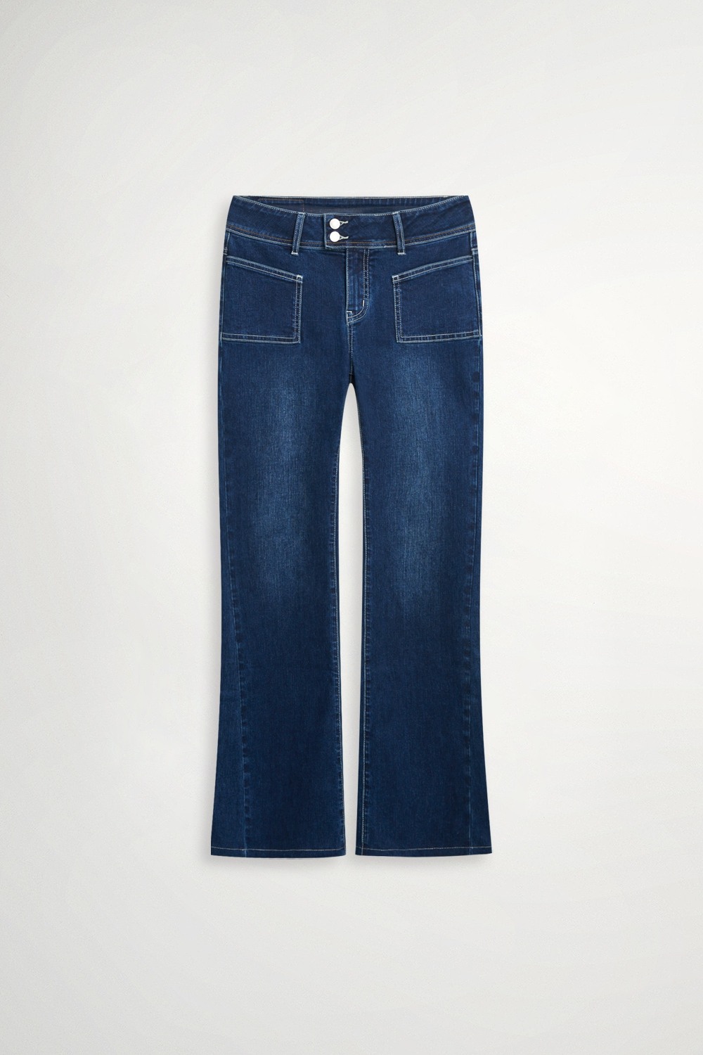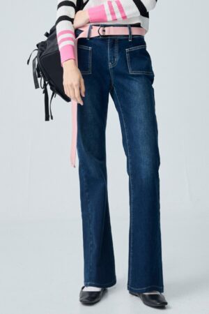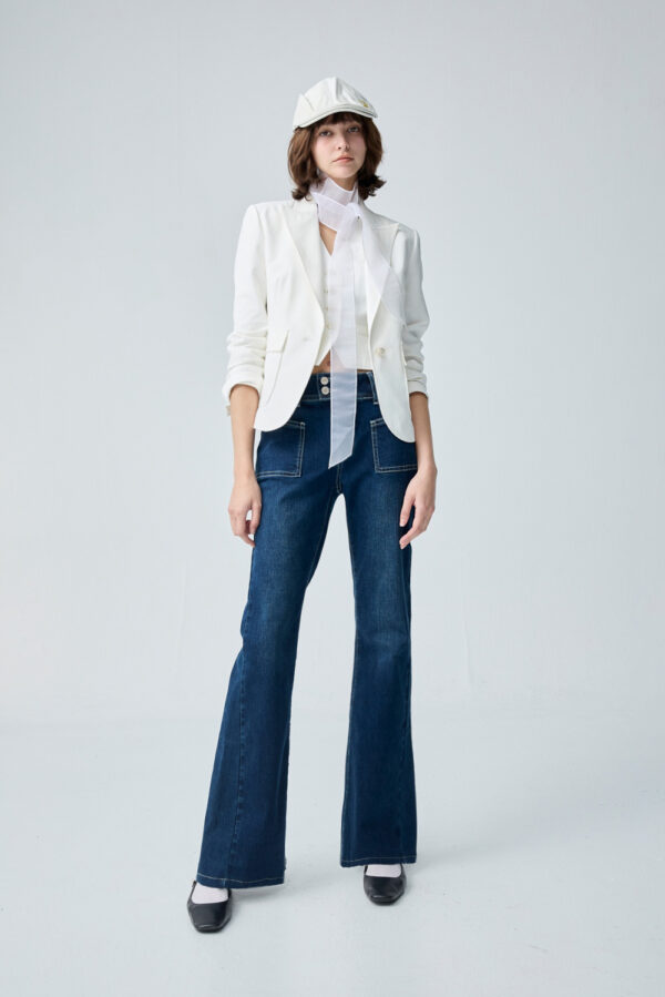 港風情懷貼口袋水洗喇叭褲