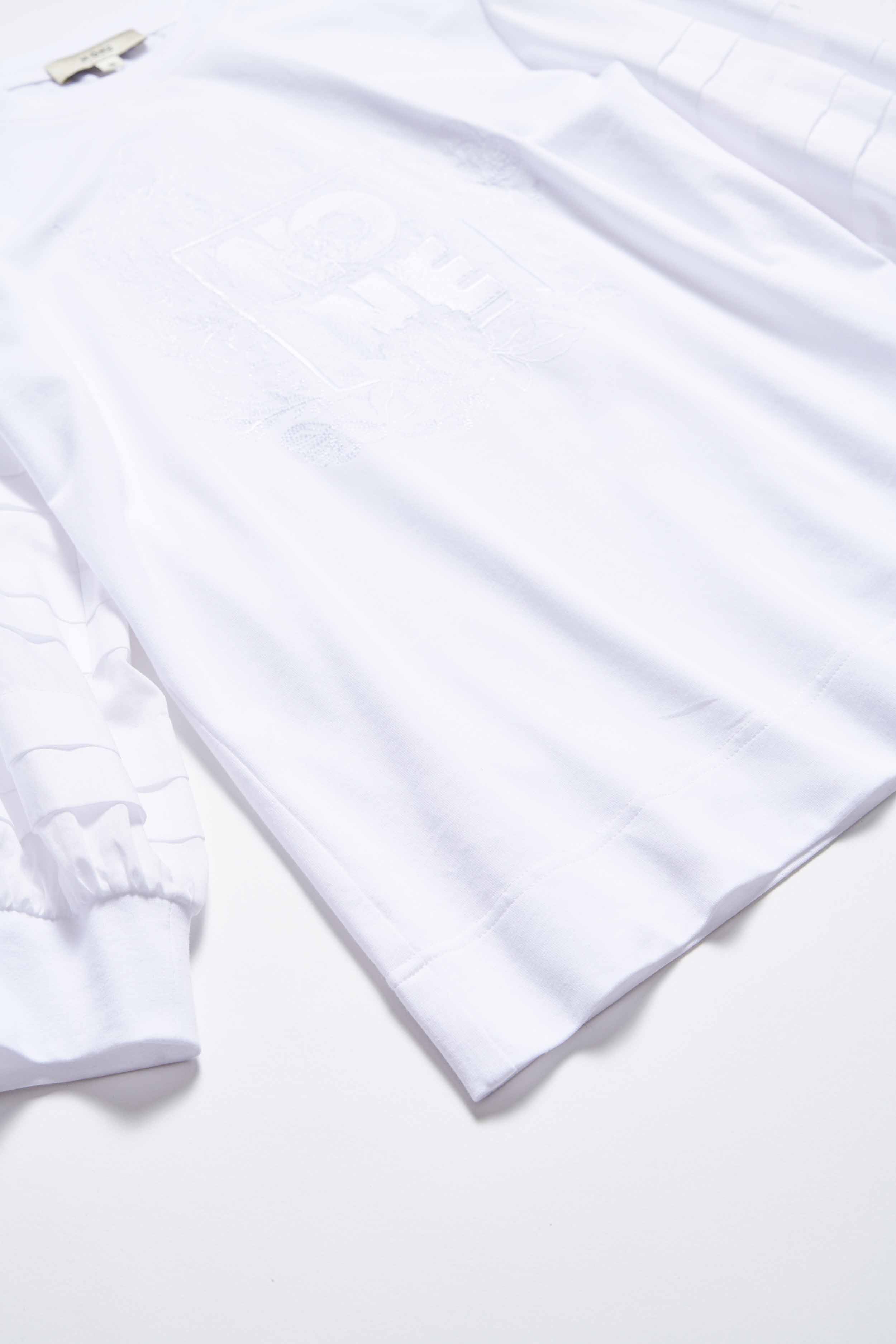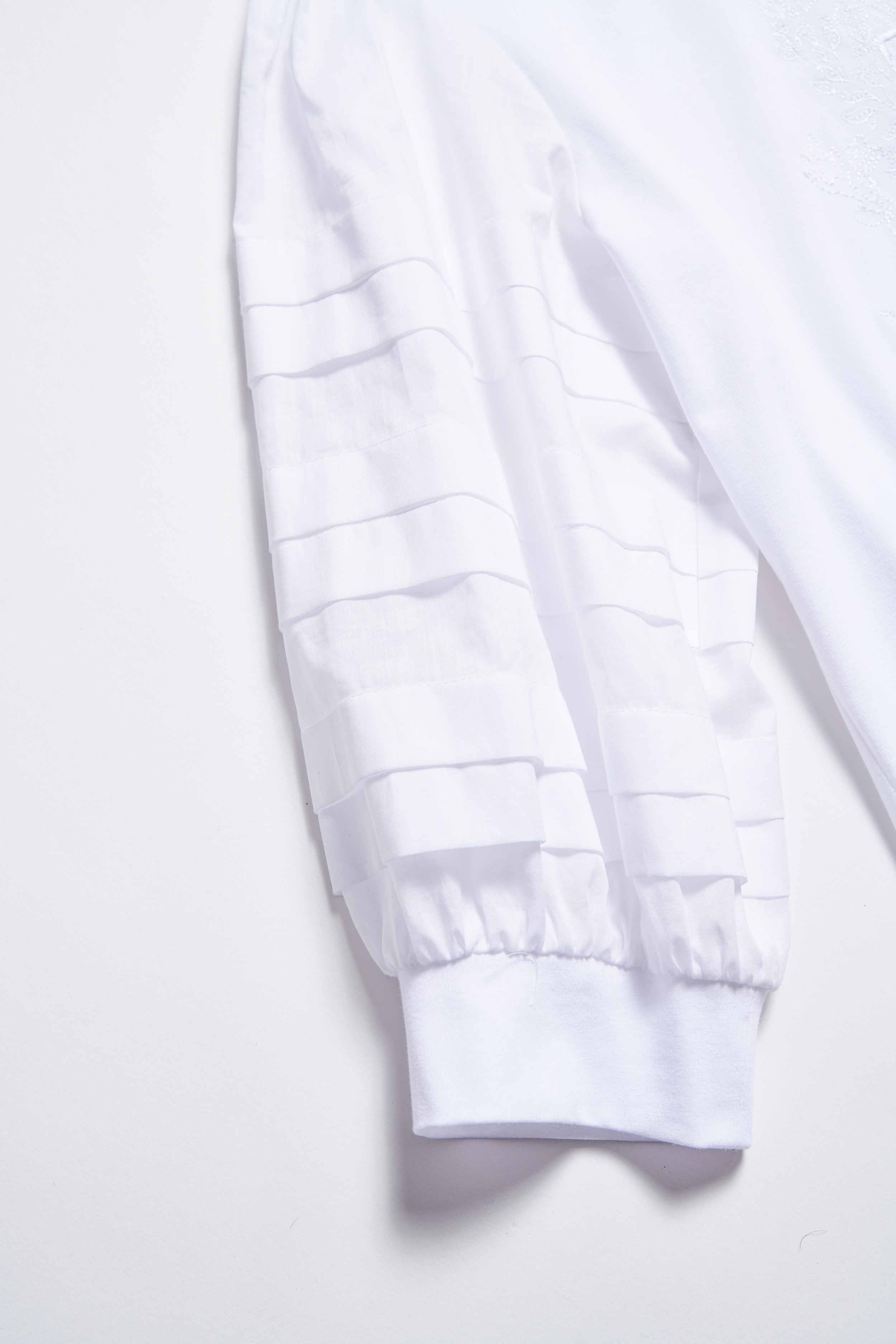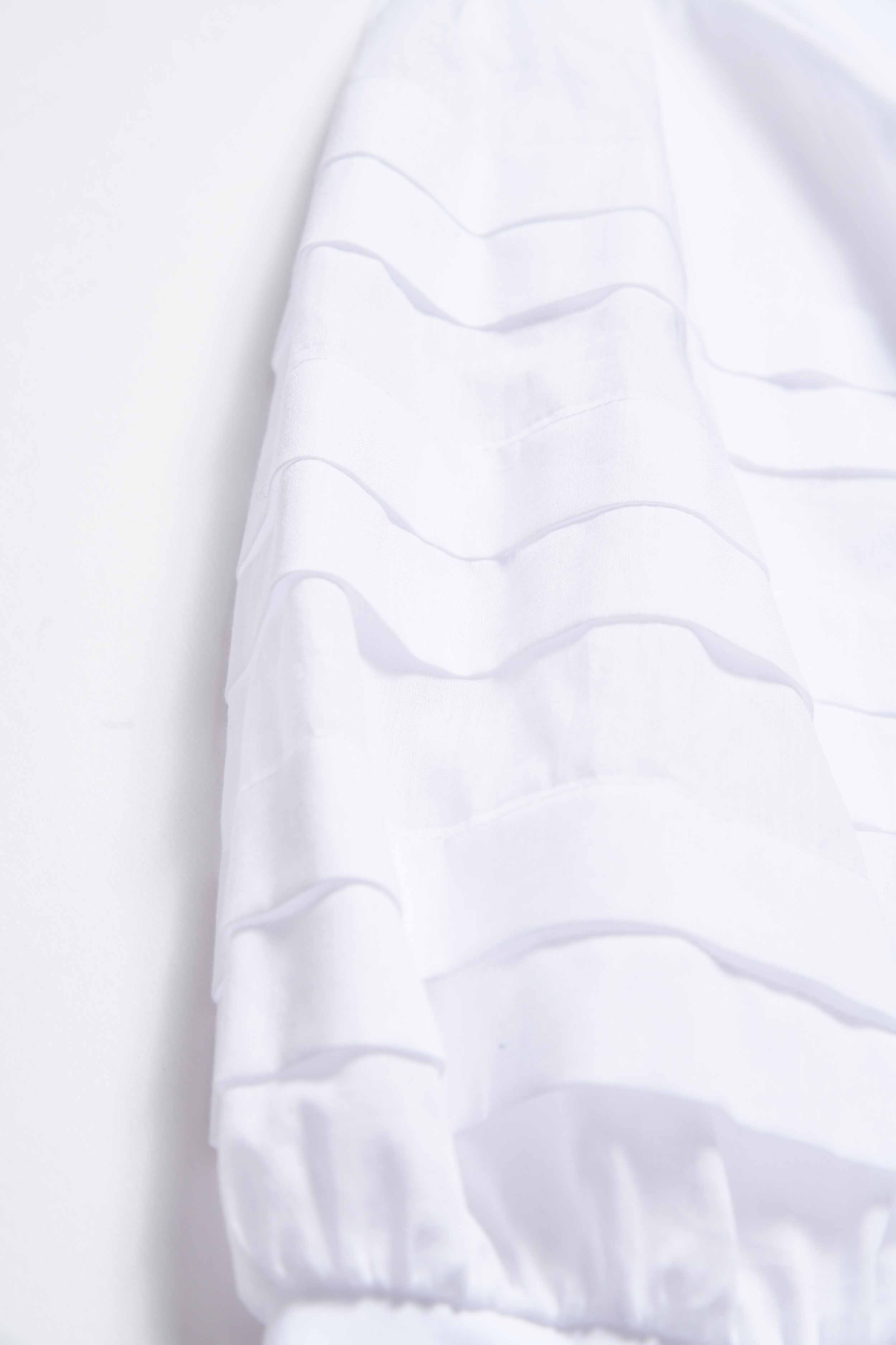 ◈套上充滿份量感的服裝廓形鋪陳出日常的嶄新力量,袖長在充滿蓬感裡有著異材質拼接,都在純白色下顯得格外清新脫俗。