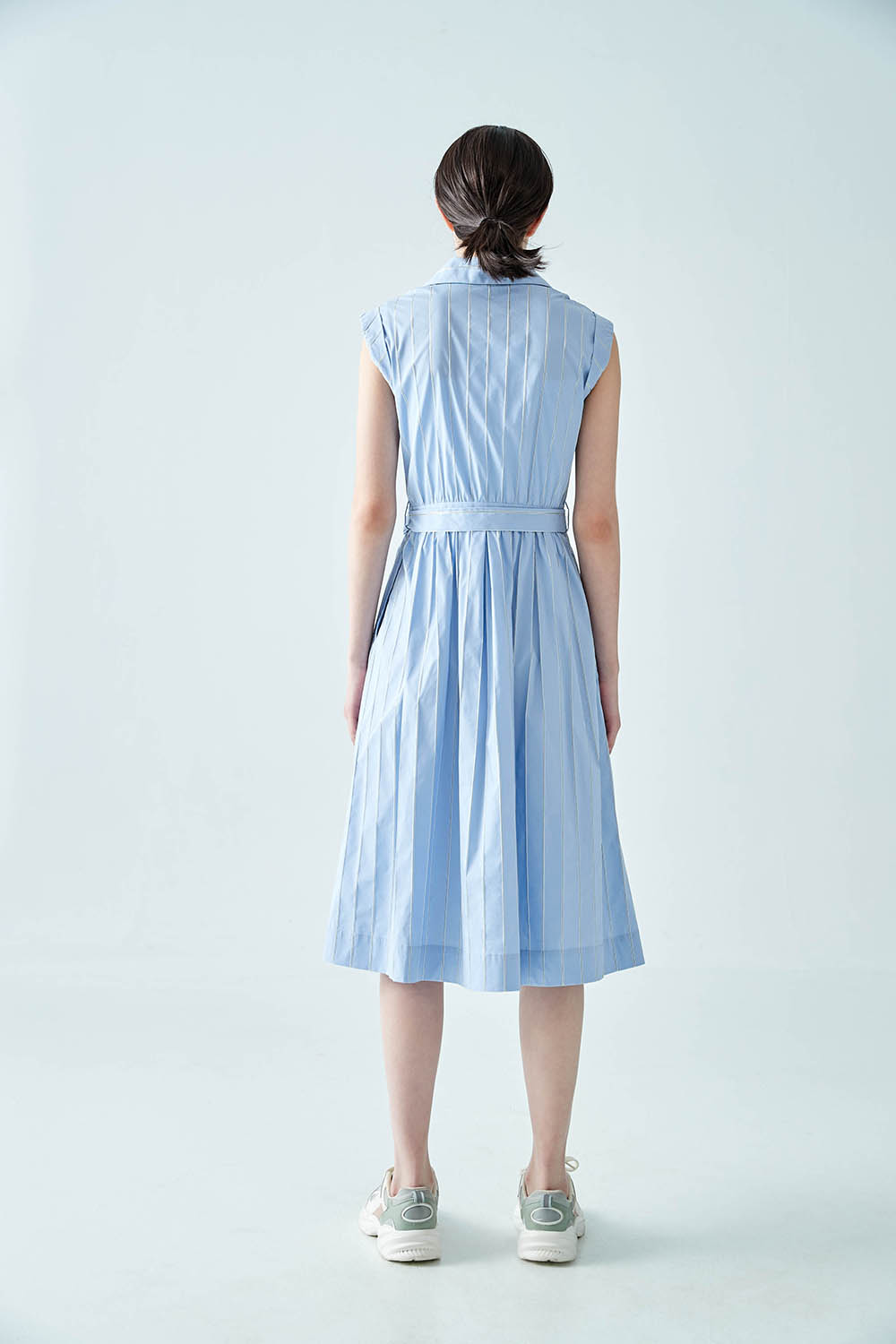 ◈看著一身藍色賦予妳的清澈狀態,靜靜地乘載著對夏日的想像,身上的細褶彷彿也循著海洋的溫柔軌跡揚起藍色的波長,隨之將線條的俐落感呈現出來,賦予洋裝立體的廓形。