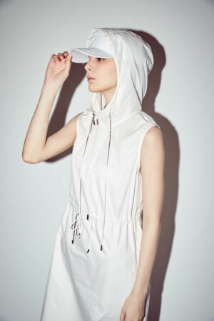 輕悠無拘拉鏈開襟連帽無袖綁帶洋裝 - 無瑕純白, S